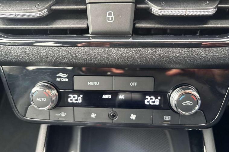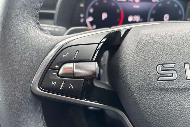 Advanced driver attention and drowsiness monitor, Bluetooth, e-Call (emergency call), Front assist system, PAS, Rear parking sensors, Rear view camera, Speed limiter, Tailgate, Traffic sign recognition, Virtual Cockpit - 10.25" digital display, Voice control system, Wireless smartlink, 4 USB C ports, 8 Speakers, 9.2" Skoda navigation display, DAB radio, Auto dimming rear view mirror, Automatic headlamp activation with Coming home and Leaving home feature, Automatic high/low beam, Body colour bumpers, Body colour door mirrors and handles, Chrome moulding around grille, Front and rear electric windows, Full LED headlights, Heated rear window, LED 3rd brake light, LED brake lights, LED daytime running lights, LED front turning lights, LED high beam, LED low beam, LED taillights, Rear LED fog light, Rear side wing doors, Rear wiper, Tinted windows, Unique dark chrome design logo on alloy wheels, 12V socket in luggage compartment, 3 seat bench in 2nd row, Black / Grey armrest stitching, Black hotstamping, Cargo elements, Chrome inner door handles, Door inserts in satin black, Driver and passenger sun visors with vanity mirror, Dual zone climate control, Front and rear roof lights, Front centre armrest, Front head restraints, Glasses storage in roof liner, Height adjustable driver seat, Height adjustable passenger seat, Ice scraper, Illuminated glove compartment, Inner circulation control with pollen filter, ISOFIX for front passenger seat, Isofix preparation for back seats, Leather gearknob and handbrake lever, Loft cloth upholstery, Luggage net under rear parcel shelf, Manual lumbar support for front seats, Net package and top tether hooks in boot space, Pearl grey ceiling, Pocket on the back of both front seats, incl. mobile phone pockets, Single front passenger seat, Skoda lettering on steering wheel, Textile floor mats, Third rear headrest, Ticket holder, Top tether for front passenger seat, Umbrella in driver's door, 3x3 point rear seatbelts, ABS, Child locks, Curtain airbags and front side airbags, Disc brakes, Driver and front passenger airbags, ESP, Hill hold control, Manual leather parking brake, One tone horn, Passenger airbag switch off function, Seatbelt reminder for driver and front passenger, Tyre pressure monitoring system, Anti theft alarm system with interior monitoring, backup horn and towing protection, Anti-theft wheel bolts, Remote central locking with 2 remote folding keys, SAFE function for remote central locking, Decord pad, door inserts Kota uni,