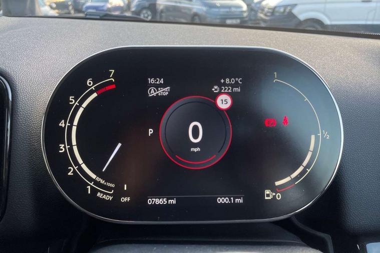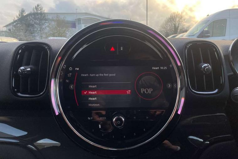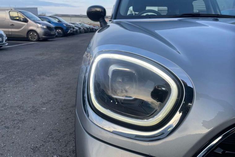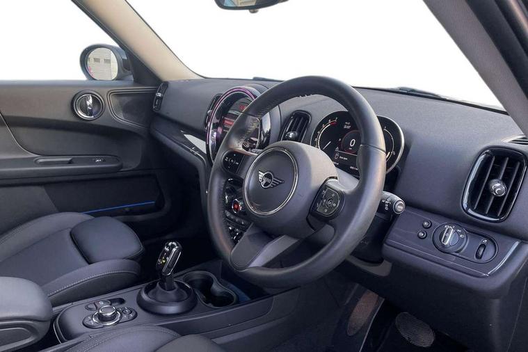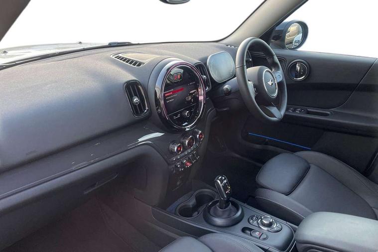 Active Guard incl speed limiting and lane departure functions with auto steering, and front collision warning with brake intervention, Automatic start/stop function with brake energy recuperation, Compatible mobile phone bluetooth with audio streaming, Cruise control with brake assist, Electro-mechanical speed dependant steering assistance, Instrument cluster, Mini E-call, On board computer, Rear parking distance control, 51 Litre fuel tank, Double Vanos system, Fully variable valve control, High precision injection, Performance Control, Steptronic transmission with double clutch, FM tuner and DAB digital radio, 3rd brake light, Body colour fuel filler cap, Day time driving lights, Door sill strips, Dynamic brake lights, Electric windows, Heated rear window, Heated windscreen washer jets, LED fog lights, LED Headlights, Left exhaust tailpipe with chrome finisher, Model logo, Model logo on Tailgate, Radiator grille, Rain sensor with auto headlights, Rear fog lights, Rear side wing doors, Rear window wiper, Side scuttle panel with integrated indicator, Split rear doors, Sun/heat protection glass, White indicator lenses, 12V socket in centre console, 3 seat bench in 2nd row, 3 spoke sport leather steering wheel + limiter function and audio controls, 360L luggage compartment capacity, 4 lashing eyes in luggage compartment, 40:20:40 split folding rear seats, Chrome interior highlights, Colour line - Carbon black, Cupholders, English handbook, Floor mats, Front headrests, Glove compartment, Headliner with grab handles and clothes hooks, Height and length steering column adjustment, Interior lighting with 12 basic colours selectable via toggle switch in roof, Isofix rear child seat preparation, Leather gearshift lever and handbrake gaiters, LED reading lights, vanity mirror lights, front foot well light and spotlight on front seats, Manual air conditioning, Mechanical seat adjustment, driver seat height adjust, forward/back and front seats backrest, Multifunction steering wheel, Passenger seat height adjuster, Rear headrests, Single front passenger seat, Storage compartments in doors, Sunvisors with vanity mirrors, Excitement pack - Countryman, Navigation pack - Countryman, 2 tone horn, 3 point seatbelts on all seats, 6 Airbags - front, side, head and seat belt tensioners, Anti-lock braking system (ABS), DSC - Dynamic Stability Control, Electronic handbrake, Front and rear disc brakes, Hill start assist, Manual rear child locks, Tyre pressure monitoring system, Alarm system with tilt sensor, monitoring doors, bonnet interior and tailgate, Auto drive away locking, Deadlocking function, Electronic vehicle immobiliser, Locking wheel bolts, Start/stop toggle with keyless go, Tool kit,