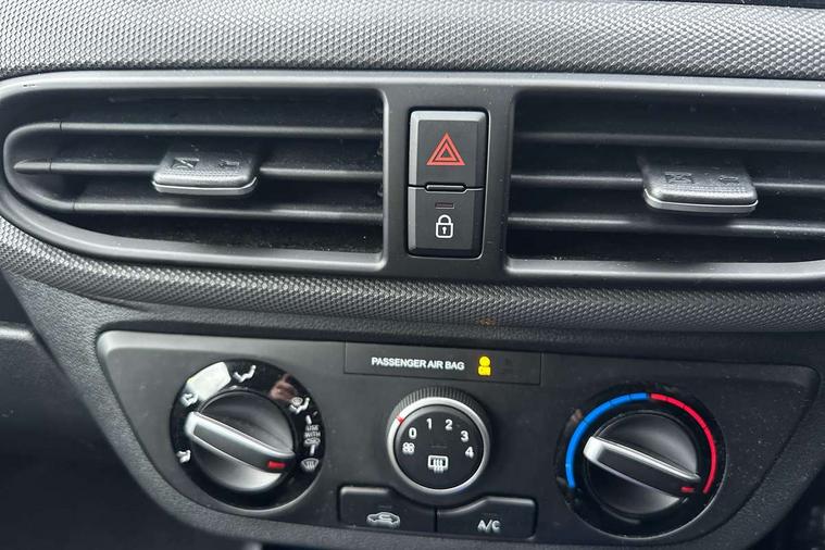 Apple car play/Android Auto, Bluelink mobile remote connectivity, Bluetooth connectivity with voice recognition, Cruise control, Driver attention alert system, eCall emergency call system, Forward Collision-Avoidance Assist (FCA) - Pedestrian/Cyclist, Front USB-C charging and USB-A data, Full-width 4.2" LCD instrument cluster, Intelligent speed limit assist, Lane departure warning system with lane keep assist - LKAS, Lane follow assist, PAS, Rear parking sensors, Rear view camera with guidelines, Roadside assistance, Start/Stop function, Tailgate, Trip computer, 2 front/2 rear speakers, Rear USB-C device charger, Steering wheel audio, phone and cruise controls, 1 speed non intermittent rear windscreen wiper, Black finish on B pillars, Body colour door handles, Body coloured bumpers, Body coloured door mirrors, Electric front windows, Electric rear windows, Electrically adjustable and heated door mirrors, Flat metal emblem, Front grille in matte black, Front intermittent wipers, Halogen daytime running lights, Halogen headlights, Headlights inner with Black Blade design, Heated rear window, High beam assist, Indicator light on door mirrors, Rear roof spoiler with integrated LED brake light, Rear side wing doors, 12v power outlet - front, 3 seat bench in 2nd row, 60/40 split folding flat to floor rear seats, Air conditioning, Auto light control, Bottle holders in front/rear doors + front centre console, Cabin and luggage compartment interior lighting, Cloth upholstery, Driver + passenger vanity mirrors, Driver's seat height adjustment, Driver/passenger sunvisors with ticket holders, Floor mats, Front door pockets, Front Head Restraints - Vertical and Horizontal Adjustment, Glove compartment, Height adjustable steering column, Isofix child seat preparation, Leather multifunction steering wheel, Rear door pockets, Single front passenger seat, Vertical adjustment rear head restraints, 3x3 point rear seatbelts, Airbags - front, front side and curtain airbags, Anti-lock brake system (ABS), Autonomous emergency braking (AEB) with forward collision warning system, Brake assist function, Childproof rear door locks, Electronic stability control, Front and rear seatbelt reminder, Front seatbelt pretensioners, Hill start assist control (HAC), Passenger airbag deactivate switch, Traction control, Tyre pressure monitoring system, Immobiliser, Perimeter alarm, Rear occupant alert, Remote central locking, Second remote key, Speed sensitive auto door locking, 15" Alloy wheels, Tyre repair kit,