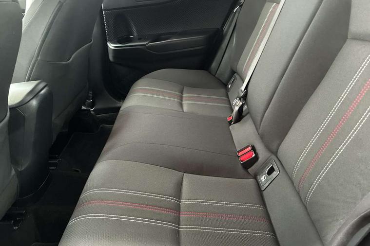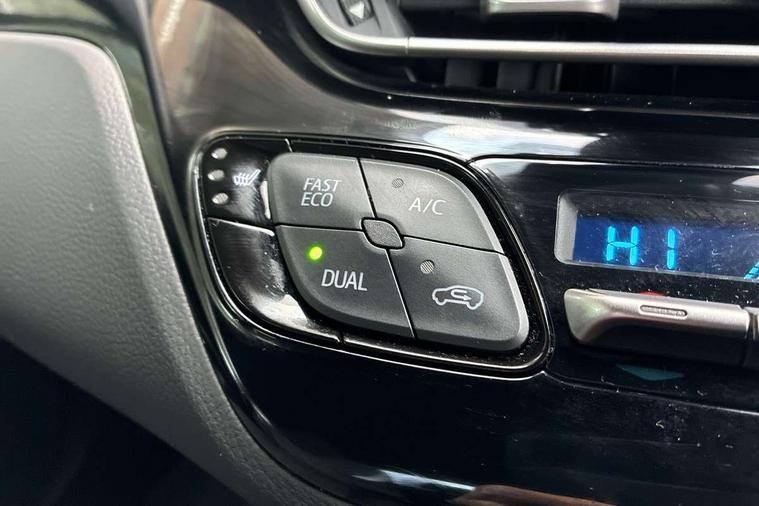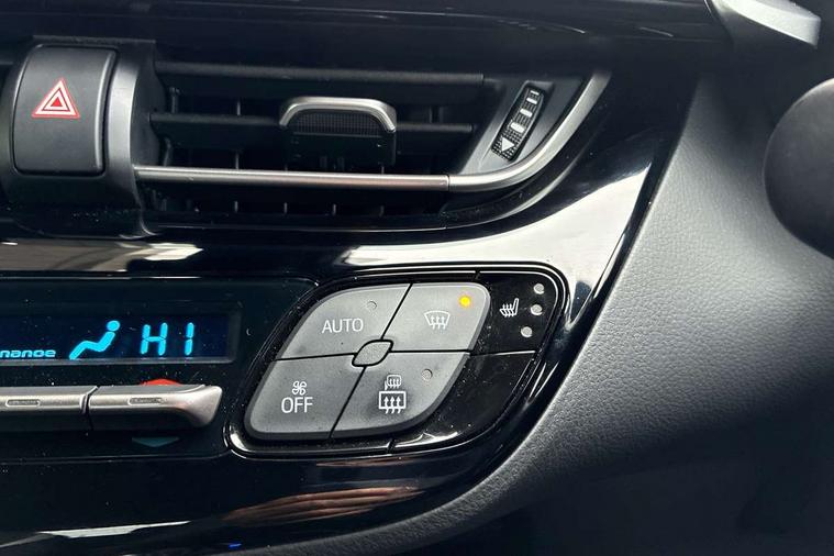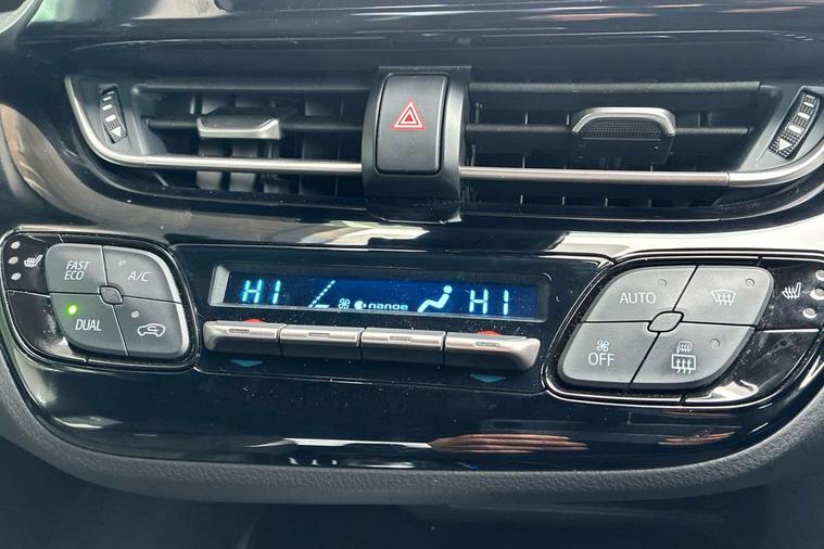 4.2" coloured TFT screen for multi-information display, Adaptive cruise control, Bluetooth connectivity, E-call, Electric power steering, Hybrid system indicator, Lane departure alert with steering control, Lane trace assist, Push button tailgate release, Remote boot door release in cabin, Remote boot door release in key, Reversing camera, Road sign assist - RSA, Simple Intelligent parking assist, Smart voice assist, Touch 2 Go navigation system, Trip computer, Voice recognition, Wireless smartphone integration, Vehicle Stability Control (VSC), 6 speakers, AM/FM radio, DAB Radio (Digital Audio Broadcasting), Toyota touch 2 multimedia system with 8" display, USB connector, Wi-fi connectivity, Adaptive front light system, Adaptive LED Headlights, Anti-jam protection on power windows, Auto high beam, Auto up and down function on all power windows, Automatic headlight levelling, Automatic headlights, Automatic headlights cut-off, Black and body coloured rear bumper, Black upper front grille, Body colour door handles, Body colour door mirrors, Body coloured front bumper, Boot door release with push button, Chrome front lower bumper, Electric heated door mirrors, Follow me home headlights, Front and rear power windows, Front spoiler lip in black, Headlight cut off reminder, Honeycomb lower front grille, LED daytime running lights, LED fog lights, LED front light guide, LED High mounted stop light, LED rear brake lights, LED rear combination lights, Noise reduction layer on front windows and windscreen, Power adjustable door mirrors, Privacy glass, Rain sensor, Rear sequential indicators, Rear side wing doors, Rear spoiler, Rear tailgate, Rear window defogger, Rear window wiper, Shark fin antenna, UV-filter on driver and passenger windows, UV-filter on rear windows, 12v power outlet - front, 3 rear headrests, 3 seat bench in 2nd row, 3 spoke perforated leather steering wheel, 60/40 split folding rear seat, Adjustable rear headrests, Adjustable speed limiter switch on steering wheel, Assist grips front and centre pillar, Audio and telephone switches on steering wheel, Black front door assist grips, Blue ambient lighting on front cup holders, Blue ambient lighting on front doors, Boot light, Chrome interior door handles, Cloth upholstery, Driver and front passenger personal light, Driver and front passenger Whiplash Injury Lessening seats, Driver and passenger seatback pockets, Dual zone automatic air conditioning, Floor mats, Front cupholders, Front head restraints, Front sports seats, Glovebox with internal light, Hard tonneau cover, Heated driver and front passenger seats, Hooks for luggage holding net, Humidifying Nanoe air purifier, Illuminated entry system, Isofix attachments on outer rear seats, Leather gearshift, Light on driver sun visor, Light on passenger sun visor, Manual telescopic steering wheel, Manual tilt steering wheel, Manually height adjustable driver seat, Manually height adjustable front passenger seat, Manually reclining driver seat, Manually reclining front passenger seat, Manually sliding driver seat, Manually sliding front passenger seat, Microphone on front personal light, Mirror on driver sun visor, Mirror on passenger sun visor, Multimedia switches on steering wheel, Pollen filter, Power adjustable lumbar support on driver seat, Shopping bag hooks, Single front passenger seat, Slow opening on lower glovebox, Voice recognition switch on steering wheel, Tech with parking sensor pack - C-HR, 16 Disk front wheel brake, 3x3 point rear seatbelts, ABS+EBD+Brake assist, Electronic parking brake, Front and rear seatbelt reminder, Front passenger airbag on/off switch, Hill start assist control (HAC), Pre collision system with pedestrian detection, Pre-tensioners and force limiters, Rear door child safety locks, SRS Airbags - Driver + Front passenger, front side, front and rear curtain and driver's knee airbags, Toyota safety sense, Tyre pressure monitoring system, Tyre pressure warning system, Acoustic vehicle alert system (AVAS), Glass-breaking alarm sensors, Immobiliser, Intrusion alarm, Intrusion sensor, Motion sensor alarm, Power door locks, Power passenger window lock, Remote central locking, Black lower dashboard, Black upper dashboard, Piano black console, Silver deco line on upper dashboard, 19" Black machined alloy wheels, Tyre repair kit,