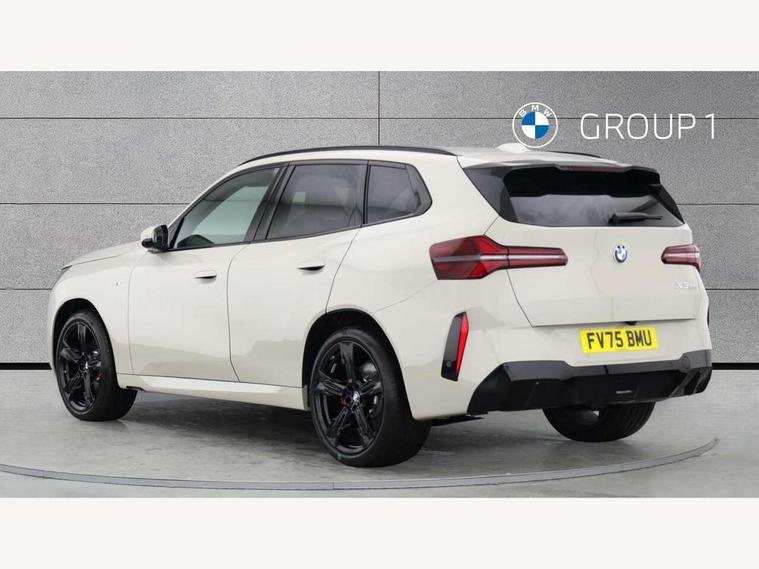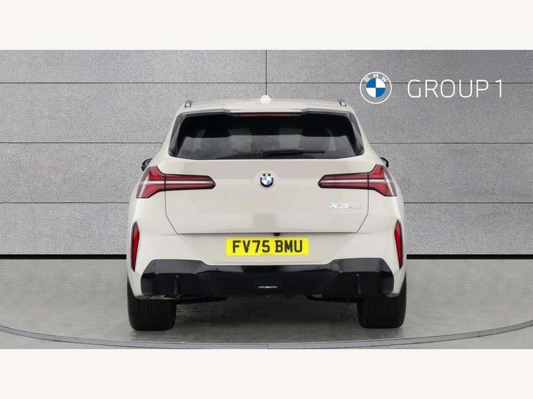 Active guard professional, Attentiveness assist, Automatic operation of tailgate, BMW ConnectedDrive online services, BMW iDrive, BMW Live cockpit plus, BMW Online services, BMW Teleservices, Brake pad wear indicator, Condition based service, Drive off assistant, Flat tyre monitor, Language version English, My Mode - Personal, Efficient, Sport, Relax, Expressive, Parking assistant, Reversing assist camera, Servotronic system, Variable sport steering, Dynamic stability control, Multiple control arm rear axle, Steptronic transmission with gearshift paddles, Two-joint strut-type front axle with tension strut, DAB tuner, Personal eSim, 4 tailpipe tips, B-pillar trim panel in black high-gloss, BMW badge on front and rear, BMW M-specific front/rear bumpers and side sills, BMW M-specific radiator grille with horizontal bars in Dark Silver and M logo, Body colour mirror caps, Daytime running lights, Door handles flush to the surface with lock barrel on driver's side is illuminated and in vehicle colour, Dynamic brake lights, Electric adjustable and heated door mirrors, Electric window trap release and convenient opening/closing feature, Headlight beam throw control, Heated rear window, Heated windscreen washer jets, High beam assistant, LED 3rd brake light, LED rear lights, LED tail lights, LED turning indicators, Locking of the doors, M high-gloss shadowline, M-specific Exterior mirrors, Mirror base and mirror blade in satinised aluminium, Mirror triangle in black high-gloss, Rain sensor with automatic headlight activation, Rear side wing doors, Rear wiper, Reversing light, Side window frame in black high-gloss, Windscreen wipers, 12v power socket in front centre console and luggage compartment, 2 x USB Type C ports for charging and data transmission (front centre console) and 2 x USB Type C ports for charging (rear centre console), 3 rear headrests, 3 seat bench in 2nd row, 3 zone automatic air conditioning, 40:20:40 split folding rear seat with loading system, Ambient lighting, Anthracite headlining, Electric adjustable seats with memory function, Floor mats in velour, Footrest and pedals in black plastic, Four grab handles integrated in roof lining, Front armrest with integrated control panel, Front centre console trim in black high-gloss, Front head restraints, Front passenger seat, Front sports seats, Glove compartment, i-Size / ISOFIX attachment points on both outer rear seats, with covers in black, Interior door handles in dark chrome, Luggage compartment separating net, M sport leather steering wheel, Multifunction steering wheel, Rear side armrests integrated into door trim, Selector lever with toggle operation, Steering column adjustment, Sun visors with illuminated vanity mirrors, Three upper retaining strap clips integrated into the rear panels of the seat backrests, Through loading system, Two front cupholders and two in the rear center armrest, Wireless charging tray, Connected pro package - X3, Driving assistant package - X3, Driving assistant plus pack - X3, Interior and exterior mirror package - X3, 3 point seatbelts, Airbag deployment is controlled with respect to the intensity and scope, Anti-lock braking system (ABS), Automatic hold function, BMW emergency call, Brake assist, Brake drying, Brake energy regeneration, Braking readiness, Central airbag, Child locks on rear doors, Cornering brake control (CBC), Crash Sensor - activation of central locking release, hazard warning light and interior lighting, Driver and front passenger front and side airbags, Dynamic brake control, Electromechanical parking brake, Front and rear disc brakes, Head airbags, Integrated braking system, Post Crash Collision Warning with braking function, Trailer stability control, Tyre pressure sensor, Warning triangle, Alarm system, Closing system with central locking, Comfort access system with BMW digital key plus, Locking wheel bolts, Start/stop button with keyless motor start with acoustic drive, Tyre repair kit plus,