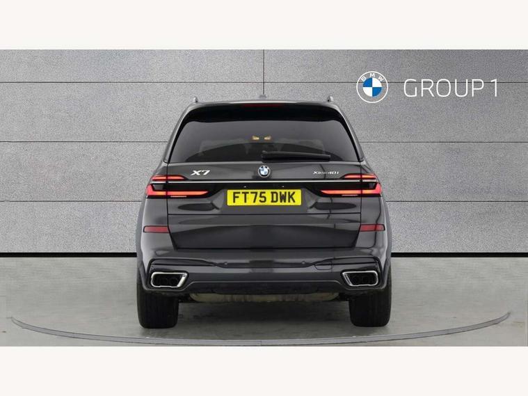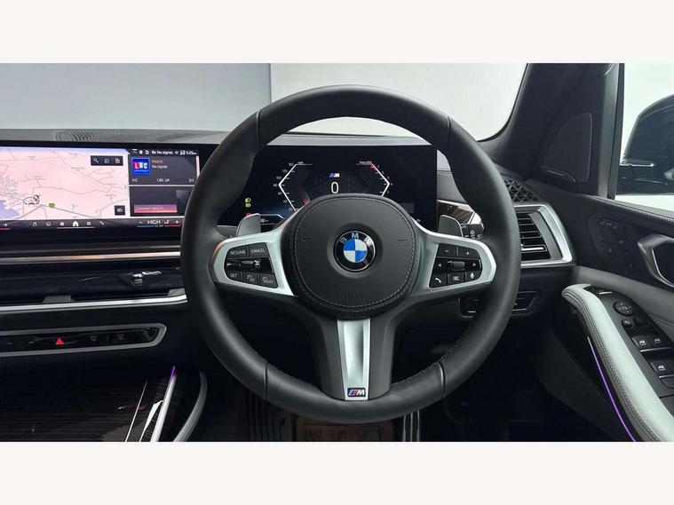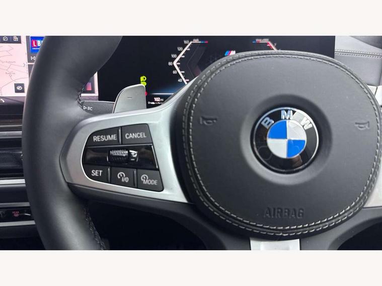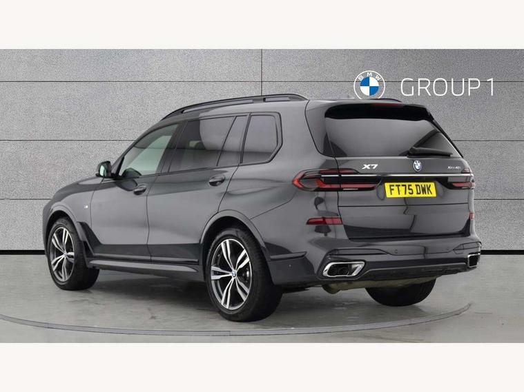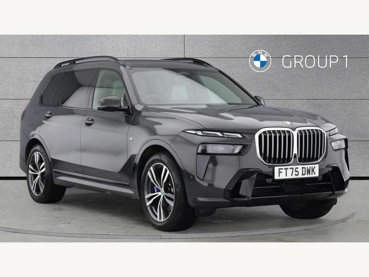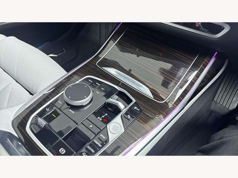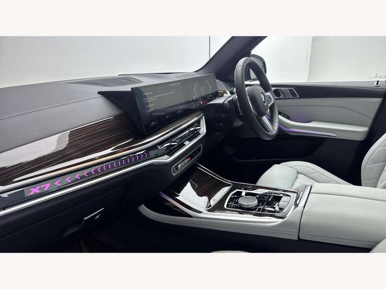 2 rear USB-C ports, Attentiveness assist, Automatic start/stop function, Automatic tailgate operation, BMW ConnectedDrive online services, BMW Drive recorder, BMW gesture control, BMW Teleservices, Brake pad wear indicator in front and rear, Condition based service, Integrated owner's handbook, Live Cockpit Professional with head up display including 12.3" instrument cluster and 14.9" central display, Parking assistant pro including reversing assistant, PDC, lateral parking aid, reversing assist camera, parking drive off monitoring, 48V Mild hybrid technology, 8 speed automatic with steptronic transmission including automatic hold function and gearshift paddles on the steering wheel, Drive experience switch with comfort mode + ECO PRO + sport mode, Permanent all wheel drive, 2x Front USB (1x USB-C, 1x USB-A), DAB radio, Personal eSim, Acoustic glazing, Adaptive air flap control bars in high gloss black, Air breather and door claddings in high gloss chrome, Body coloured wheel arches, Dynamic brake lights with LED technology, Electrically adjustable and heated aspheric folding side mirrors with auto dimming, electric fold in function, automatic parking function, Exterior and central air inlets in front bumper painted pearl chrome, Follow me home headlight function, Frameless interior mirror, Front and rear electric windows, Heated windscreen washer nozzles, High beam assist, High gloss black shadow line roof rails, High gloss black shadowline trim in side/window frame, window recess cover, window guide, B and C pillar, mirror triangle, mirror base, mirror frame, Integrated turn indicators (door), LED daytime running lights, LED rear lights, LED third brake light in rear spoiler, Rain sensor with automatic headlight activation and windscreen wiper control, Rear side wing doors, Sump guard front and rear painted in silver, Trailer stabilisation logic, 12V - Power sockets with 2x centre console and 1x luggage compartment, 2 seat bench in 3rd row, 2x cupholders in front, rear centre armrest and two in third row seats, 3 seat bench in 2nd row, 3 spoke M leather multifunction steering wheel, 40:20:40 split folding rear seat backrests, Ambient lighting strip in the instrument panel with illuminated, Armrest in front centre console, Compartment in front of cupholder, Driver and front passenger sunvisors with illuminated vanity mirrors and ticket holder, Electrical steering column with adjustable height and length with activation and control on the steering column, Entry sills with illuminated M inscription, Fold down flush into floor of luggage compartment 50:50, Front and rear colour co-ordinated with all standard carpet colours, Front and rear door pockets, Front and rear side armrests integrated into door trim, Front seat back pockets, Grab handles, Height adjustable front headrests, Height adjustable rear headrests, Lockable glove compartment, Nano filter, Single front passenger seat, Soft close doors, Storage tray and compartment with lid in centre console, Wireless charging tray, Additional storage compartment pack - X7, Ambient light interior pack - X7, Connected Package Professional - X7, Interior lighting pack - X7, Luggage compartment pack - X7, M aerodynamics pack - X7, M Sport pack - X7, 3 point seatbelts on all seats, front pyrotechnic belt tensioners, stopper and belt force limiters, front and outer rear seats, Acoustic protection for pedestrians, Active protection, Airbag - Front driver and passenger, side airbags and Head airbags, Anti lock braking system (ABS) with cornering brake control, BMW emergency call, Child seat ISOFIX attachment rear outer seats in 2nd row and both seats in 3rd row includes top tether, Comfort access system with digital key plus, Comfort cushion seats for outer seats in 2nd row, Crash sensor inclu activation of airbags, interior light, safety battery terminal clamp, hazard warn flasher, unlock doors, deactivation of fuel pump, DSC - Dynamic Stability Control, Dynamic Traction Control - DTC, Electromechanical parking brake with automatic drive away release and auto hold function, Front and rear brake discs with interior ventilation, Hill descent control, Integrated braking system, Manual child lock in rear doors, PC iBrake PostCrash approach control warning with light braking function, Tyre pressure monitoring system, Tyre pressure sensors, Variable torque distribution, Warning triangle and first aid kit, Alarm, Central locking including 2 vehicle keys with integrated emergency key, Engine immobiliser, Locking wheel bolts, Galvanic embellisher for controls,