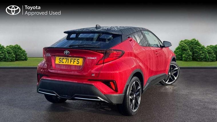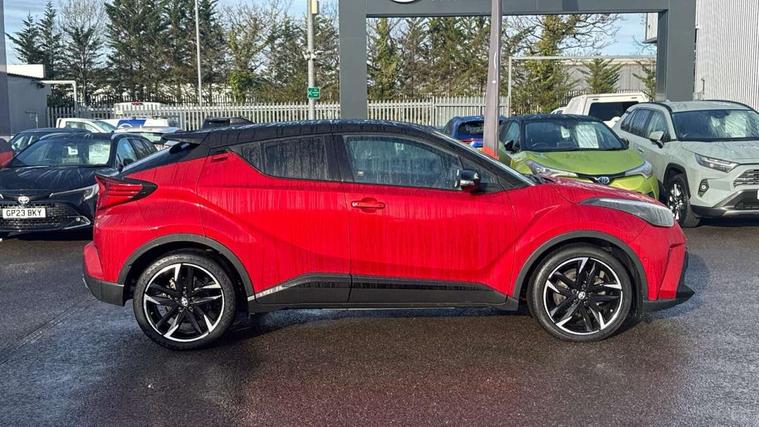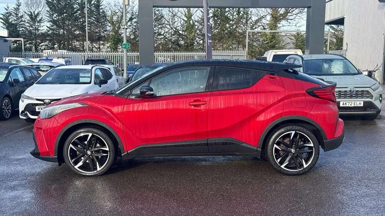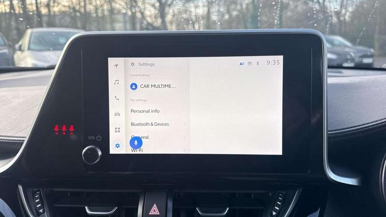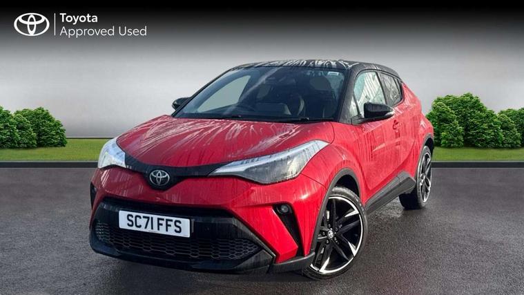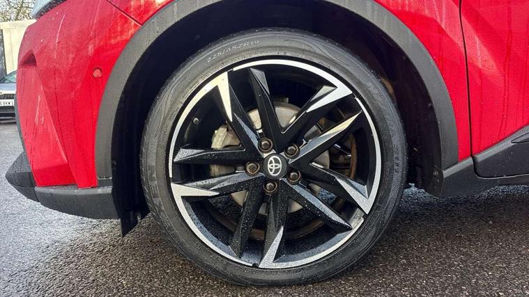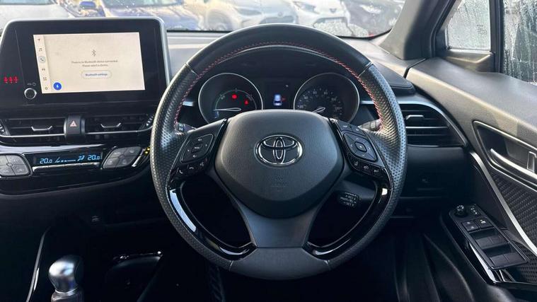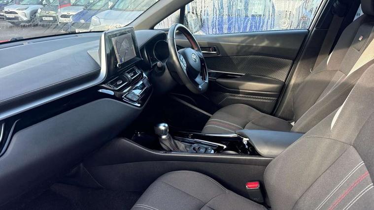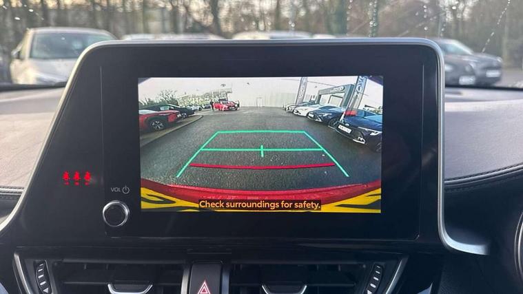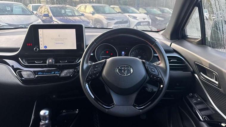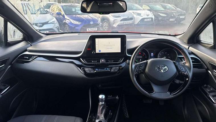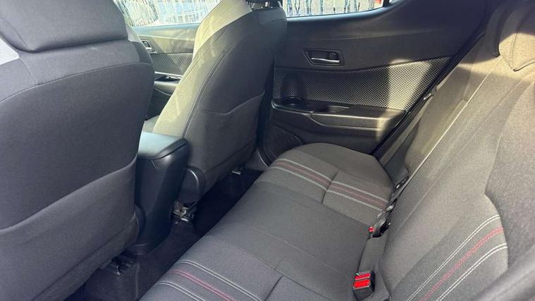 4.2" coloured TFT screen for multi-information display, Adaptive cruise control, Bluetooth connectivity, E-call, Electric power steering, Hybrid system indicator, Lane departure alert with steering control, Remote boot door release in cabin, Remote boot door release in key, Reversing camera, Road sign assist - RSA, Simple Intelligent parking assist, Touch 2 Go navigation system, Trip computer, Voice recognition, Vehicle Stability Control (VSC), 6 speakers, AM/FM radio, DAB Radio (Digital Audio Broadcasting), Toyota touch 2 multimedia system with 8" display, USB connector, Wi-fi connectivity, Adaptive front light system, Adaptive LED Headlights, Anti-jam protection on power windows, Auto high beam, Auto up and down function on all power windows, Automatic headlight levelling, Automatic headlights, Automatic headlights cut-off, Black and body coloured rear bumper, Black upper front grille, Body colour door handles, Body colour door mirrors, Body coloured front bumper, Boot door release with push button, Chrome front lower bumper, Electric heated door mirrors, Follow me home headlights, Front and rear power windows, Front spoiler lip in black, Hard tonneau cover, Honeycomb lower front grille, LED daytime running lights, LED fog lights, LED front light guide, LED High mounted stop light, LED rear brake lights, LED rear combination lights, Noise reduction layer on front windows and windscreen, Power adjustable door mirrors, Privacy glass, Rain sensor, Rear sequential indicators, Rear side wing doors, Rear spoiler, Rear tailgate, Rear window defogger, Rear window wiper, Shark fin antenna, UV-filter on driver and passenger windows, UV-filter on rear windows, 12v power outlet - front, 3 rear headrests, 3 seat bench in 2nd row, 3 spoke perforated leather steering wheel, 60/40 split folding rear seat, Adjustable rear headrests, Adjustable speed limiter switch on steering wheel, Assist grips front and centre pillar, Audio and telephone switches on steering wheel, Black front door assist grips, Blue ambient lighting on front cup holders, Blue ambient lighting on front doors, Boot light, Chrome interior door handles, Driver and front passenger personal light, Driver and front passenger Whiplash Injury Lessening seats, Driver and passenger seatback pockets, Dual zone automatic air conditioning, Fabric upholstery, Floor mats, Front cupholders, Front head restraints, Front sports seats, Glovebox with internal light, Heated driver and front passenger seats, Hooks for luggage holding net, Humidifying Nanoe air purifier, Illuminated entry system, Isofix attachments on rear seats, Leather gearshift, Light on driver sun visor, Light on passenger sun visor, Manual telescopic steering wheel, Manual tilt steering wheel, Manually height adjustable driver seat, Manually height adjustable front passenger seat, Manually reclining driver seat, Manually reclining front passenger seat, Manually sliding driver seat, Manually sliding front passenger seat, Microphone on front personal light, Mirror on driver sun visor, Mirror on passenger sun visor, Multimedia switches on steering wheel, Pollen filter, Power adjustable lumbar support on driver seat, Shopping bag hooks, Single front passenger seat, Slow opening on lower glovebox, Voice recognition switch on steering wheel, Tech with parking sensor pack - C-HR, 16 Disk front wheel brake, 3x3 point rear seatbelts, ABS+EBD+Brake assist, Electronic parking brake, Front and rear seatbelt reminder, Front passenger airbag on/off switch, Hill start assist control (HAC), Pre collision system with pedestrian detection, Pre-tensioners and force limiters, Rear door child safety locks, SRS Airbags - Driver + Front passenger, front side, front and rear curtain and driver's knee airbags, Toyota safety sense, Tyre pressure monitoring system, Acoustic vehicle alert system (AVAS), Glass-breaking alarm sensors, Immobiliser, Intrusion alarm, Intrusion sensor, Motion sensor alarm, Power passenger window lock, Remote central locking, Black lower dashboard, Black upper dashboard, Piano black console, Silver deco line on upper dashboard, 19" Black machined alloy wheels, Tyre repair kit,