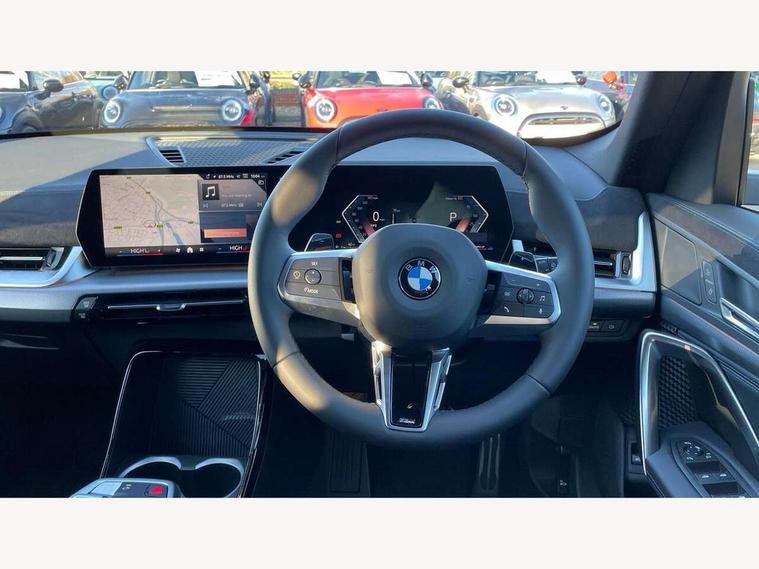 Attentiveness assist, Automatic start/stop function, BMW Live Cockpit Plus with 10.25" instrument cluster and 10.7" display, BMW Operating system 9 with BMW Maps, real-time traffic information, in-car experiences, remote services and smartphone integration, BMW Teleservices, Brake pad wear indicator, Condition based service, Connected eDrive Services, Drive off assistant, Electrically opening/closing tailgate with opening/closing with remote control and contactless opening and closing, iDrive controller, Language version English, My Modes, Parking Assistant with Reversing Assistant, active PDC, Lateral Parking Aid, Rear View Camera and Park Distance Control, Personal Profile - automatic lock when driving away selectable, Servotronic PAS, Tyre puncture warning system, Widescreen display, EU6 emissions management, Larger Fuel Tank, M Adaptive suspension, Performance Control, Petrol Particulate Filter, Steptronic transmission with double clutch and gear shift paddles, BMW Personal eSim, DAB Digital radio, Badge on engine compartment lid and tailgate, Body colour door mirrors, Dynamic brake lights, Electric adjustable heated door mirrors, Electric windows - front and rear, with open/close fingertip control, anti-trap facility and comfort closing, Folding door handles integrated flush with surface, Follow me home headlights, Front and rear bumper panel with M specific design, in body colour with inserts in black high gloss, Front door exit lights, Heated rear window, High gloss shadowline, Invisible exhaust tailpipe, Key with M identification, LED 3rd brake light integrated in rear spoiler, LED daytime running lights, LED number plate light, M identification on the sides, M roof rails high gloss shadow line, M specific radiator grille in satinated aluminium, Matt black roof strips, Model inscription on right tailgate, Rain sensor including auto headlights activation, Rear side wing doors, Rear wiper, Sill cover in body colour, Trailer stabilisation logic, Window washer nozzle for rear view camera, Windscreen wipers front with heated washer nozzles, 12V - Power sockets with front centre console and luggage compartment, 2 bag hooks in luggage compartment, 2 cup holders in front, 2 x USB Type C ports for charging in front centre console + 1 x USB Type C ports for charging in rear centre console, 3 rear headrests, 3 seat bench in 2nd row, 3 upper retaining strap clips integrated into rear panels of seat backrests, 4 grab handles, 40:20:40 split folding rear seats, Ambient interior lighting, Anthracite headlining, Anthracite Velour front and rear floormats, Bottle trays in all doors, Child seat ISOFIX attachment for two outer rear seats and front passenger seat with anchorage points, Clothes hook rear, Driver and front passenger heated seats, Dual zone automatic air conditioning, Front and rear door pockets, Front and rear footwell lighting, Front centre console storage compartment, Front/rear adjustable head restraints, Glove compartment, Interior door handle recess light on all doors, Light on right in luggage compartment, M sport leather steering wheel, Manual steering column height and depth adjustment, Middle centre console storage compartment, One piece parcel shelf opens together with tailgate and removable, Rear armrest in door trim panel, Single front passenger seat, Sport leather multifunction steering wheel with thumbrests and operation of instrument display, audio, telephone and driver assistance, Storage compartment net in left side trim panel, Storage compartment with folding cover under centre console armrest cushion, Storage tray in right side trim panel, Tilt adjustment incl. cargo function of 2nd row of seats, Vanity mirror lights, ABS/EBD, Automatic hold function, Automatic Stability Control (ASC), BMW emergency call, Braking readiness, Cornering brake control (CBC), Crash Sensor - activates hazard/interior lighting + unlocks doors, Driver/Front Passenger airbags, Driver/front passenger side airbags, Dry braking, Dynamic brake control, Dynamic stability control + (DSC+), Electromechanical parking brake, Energy recovery system, First aid kit, Front and rear brake discs, Front and rear head airbags, Front passenger airbag deactivation, Integrated brake system, PC iBrake PostCrash approach control warning with light braking function, Rear door child safety locks, Three point seat belts in all seats, Tyre pressure monitor, Warning triangle, Alarm system with tilt sensor, monitoring doors, bonnet interior and tailgate, Closing system with central locking, Locking wheel bolts, Luxury instrument panel, Tyre repair kit plus,