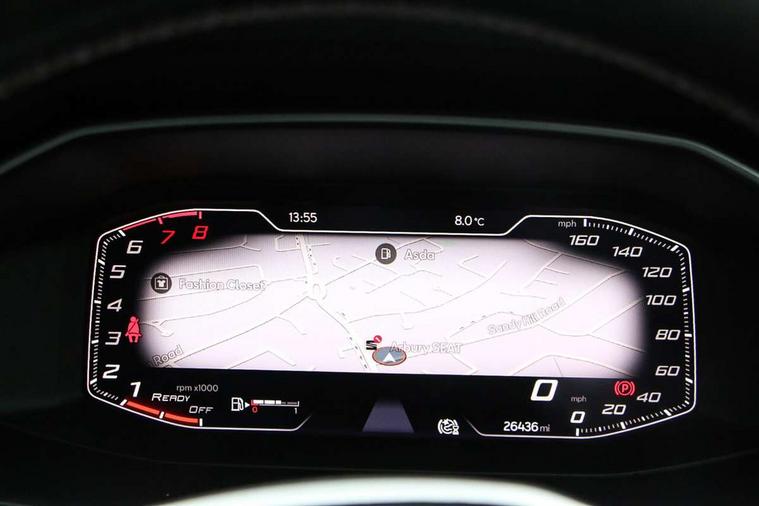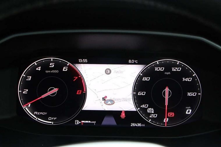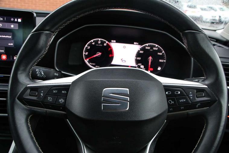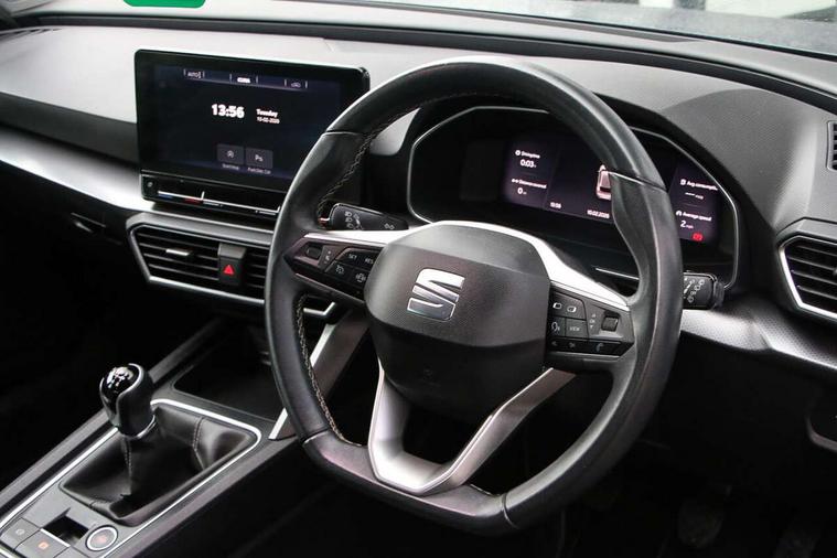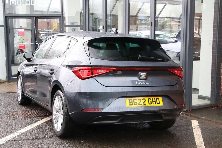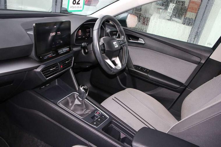 Cruise control with speed limiter, Digital cockpit, E-call, Front assist with forward collision warning braking reaction to vehicles, pedestrians and cyclists, Full link smartphone integration with Mirror Link, wireless Apple CarPlay and wired Google Android Auto, Lane assist, Lockable tailgate, Park assist (inc front/rear parking sensors), Power assisted speed sensitive electro-mechanical steering, RPM, trip computer, outside temp gauge, instrument light brightness, low fuel warning light, lights on reminder, gearshift indicator, Service interval indicator, Start/stop system with regenerative braking, Standard suspension, XDS electronic differential lock and dynamic traction support, 7 speakers, Auxiliary input socket, Body colour door handles, Body coloured bumpers, Body coloured exterior mirrors with integrated LED indicators, Dark tinted rear windows, Electric front/rear windows, Electrically adjustable and heated door mirrors, LED front fog lamps with cornering function, LED headlights and LED tail lights, LED rear fog lamp, Manual dimming rear view mirror, Rain sensor, Rear side wing doors, Rear wash/wipe, Separate daytime running light with automatic headlight control, Third brake light, 12v power point in centre console, 3 seat bench in 2nd row, 60/40 split rear bench seat, Cloth upholstery, Driver seat lumbar adjustment, Driver/passenger manual seat height adjustment, Dust/pollen filter, Folding boot cover, Four x USB Type C ports, Front and rear height adjustable headrests, Front and rear reading lights X 4, Front centre armrest, Front seatback storage pockets, Grey headlining, Height/reach adjust steering wheel, Illuminated glove box interior lighting, ISOFIX points in outer rear seats with top tether anchorage points, Leather flat bottomed, perforated steering wheel and leather gearstick, Luggage tie-down hooks, Single front passenger seat, Sunvisors with mirror, Three zone climate control, Media system plus with navigation - Leon SE, 3 point seatbelts on all rear seats, ABS, Brake control system - ESC and brake booster, Child proof door locks, Driver and front passenger airbags with front passenger airbag de-activation, front side and curtain airbags, Electronic parking brake, Extended safety system - seat belt tensioner, window closure and hazard lights, Hill hold control, Rear disc brakes, Seat belt reminder for front and rear seats, Tiredness recognition system, driver alert system, Tyre pressure monitoring system, Anti theft alarm system with interior monitoring in cab, backup horn and towing protection, KESSY Go (Keyless start), Locking wheel bolts, Chrome interior detailing, 17" Dynamic tri-spoke alloy wheels with 91W tyres, Tool kit,