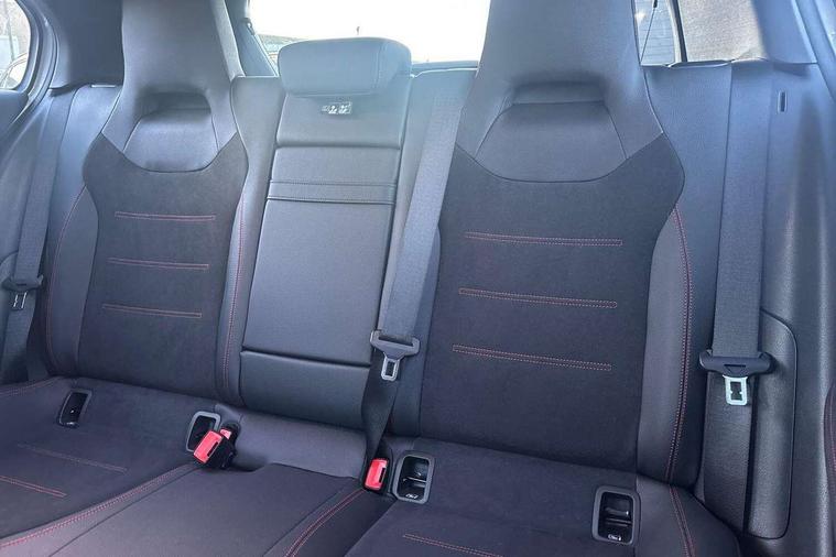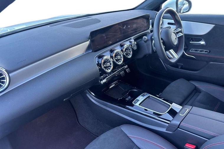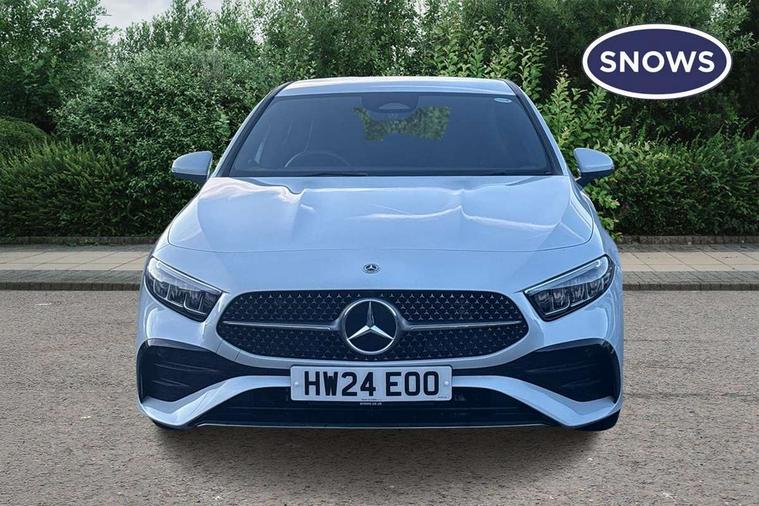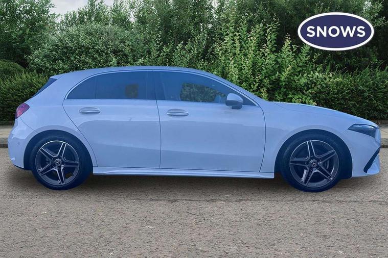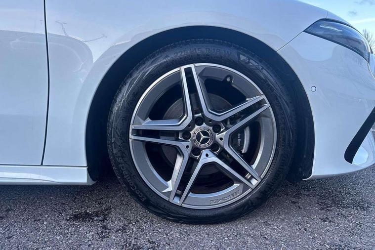 10.25 inch touchscreen central media display, 10.25" Digital instrument cluster display screen, Attention assist, Brake pad wear indicator warning light, Car wash mode, Cruise control + speed limiter, Direct steering, Direction indicators with lane change function, Dual bluetooth interfaces, DYNAMIC SELECT with a choice of driving modes (ECO, Comfort, Sport and Individual), Easy pack tailgate hands-free access, ECO start/stop function, Engine start/stop button, Fluid level warning indicator for fuel, oil, coolant and washer fluid, Fluorescent jacket for driver, Hard-disk navigation, Hey Mercedes Voice activation, Lamp failure indicator, Lane keeping system, Mercedes me connect including emergency call system, accident recovery, breakdown and maintenance management, Mercedes me remote services, Outside temperature gauge, Owners manual in English, Pre-installation of private car share, Preinstallation for Mercedes Benz link, Remote boot closing, Service indicator (ASSYST), Smartphone integration with Apple CarPlay and Android auto, Speed limit assist, Speed sensitive power steering, Tailgate, Trip computer in multifunction display with current consumption indicator, Wireless charging, Lowered comfort suspension, DAB Digital radio, MBUX multimedia system, Mercedes Benz sound system (100 W) with 6 speakers, 4 Electric Front and Rear windows, Adaptive brake lights, AMG body styling - AMG front apron with front splitter and AMG rear apron and visible exhaust tailpipe trim elements, Body colour bumpers, Body colour door handles with chrome inserts, Body colour side skirt, Body coloured door mirrors, Chrome beltline strips, Diamond radiator grille with pins in fine star pattern, Electric adjustable and heated door mirrors with integrated LED side indicators, Exhaust system with 2 visible tailpipe trim elements and rear apron, Headlamp assist automatic headlamp activation, Heat insulating dark tinted rear and rear side windows, Heated glass rear windscreen + timer control, LED High level third brake light, LED High Performance headlamps including integral LED daytime running lamps and adaptive highbeam assist, LED tail lamp, Privacy glass, Radio aerial, Rain sensing windscreen wipers with two sensitivity settings, Rear fog lights, Rear side wing doors, Rear windscreen wiper, Window line trim strip in chrome, 3 seat bench in 2nd row, 3 Spoke flat bottom leather multi function steering wheel with perforated leather in grip area, 4 way lumbar support, 40:20:40 split folding rear seats, Air conditioning - One zone THERMATIC automatic climate control with automatically controlled air distribution, AMG floor mats, Automatic child seat recognition sensor, Black air vents with surround in silver chrome, Black roof lining, Brushed stainless steel sports pedals with rubber studs, Front centre armrest with stowage, Front door sills with Mercedes Benz lettering, Front seat backs luggage nets, Galvanished gear shift paddles on steering wheel, Heated front seats, Height/reach adjustable steering column, Interior lighting - 64 colour Ambient lighting, Interior mirror with reading lamps in black and frameless, Rear armrest with 2 cupholders, Seat occupancy sensor for front passenger seat, Single front passenger seat, Sports seats with integrated headrests, Stowage compartment in centre console with retractable cover, Sunvisors with illuminated vanity mirrors, Twin front cupholders, Light and sight pack - A Class, Mirror package - A Class, Parking pack - A Class, Seat comfort pack - A Class, USB pack plus - A Class, 3 rear 3 point seatbelts, ABS with Brake Assist, Active bonnet, Active brake assist includes forward collision warning system with autonomous braking, Adaptive brake assist with hold function and hill start assist, Black seatbelts, Bonnet with power domes, Childproof locks manually operated for rear doors and electrically operated for rear power windows, Crash responsive emergency lighting, Driver and passenger head and side airbags, Drivers knee airbag, Dual stage driver/passenger airbags, Electronic parking brake, ESP curve dynamic assist, ESP with ASR, Front and rear seatbelt reminder, ISOFIX and top tether child seat fixing points in two outer rear seats, Tyre pressure monitoring system, Warning triangle and first aid kit, Window airbags, Alarm system/interior protection/immobiliser, Guard 360 degree vehicle protection, Keyless entry lock/unlock, Keyless Go, Remote central locking and crash sensor with emergency opening function, Light longitudinal grain aluminium trim, 18" AMG 5 twin spoke light alloy wheels, aerodynamically optimised, painted in termolite grey with high sheen finish, Summer tyres, Tirefit sealant kit,