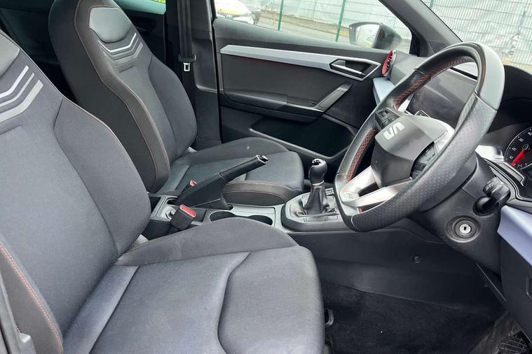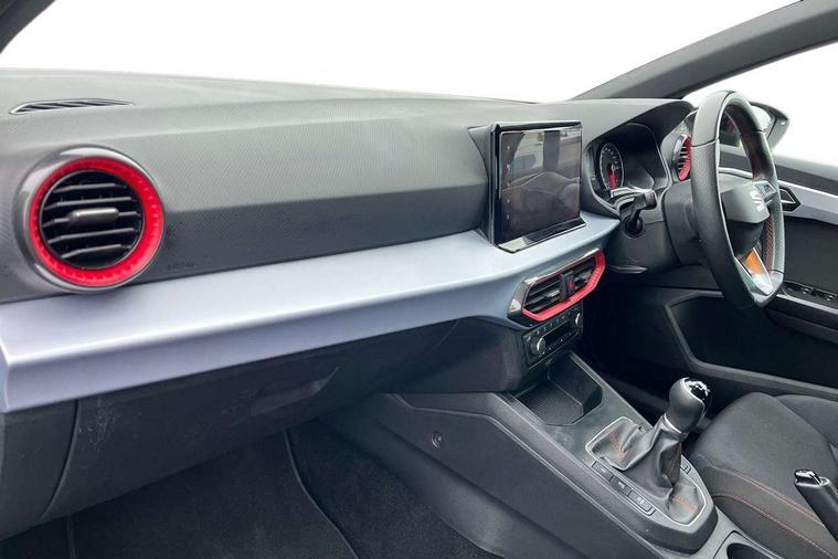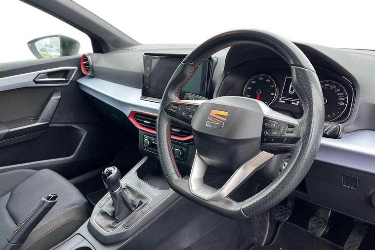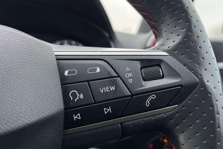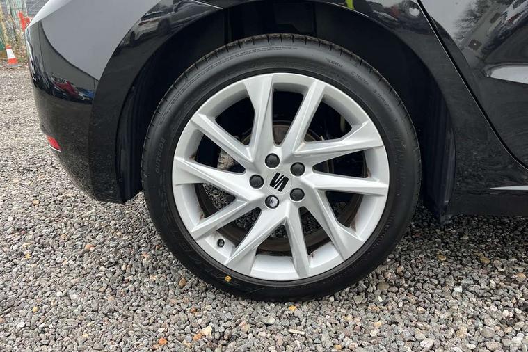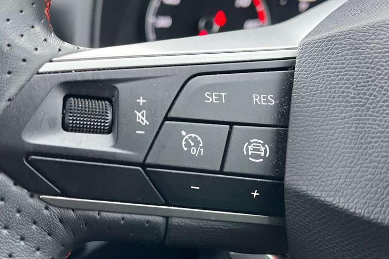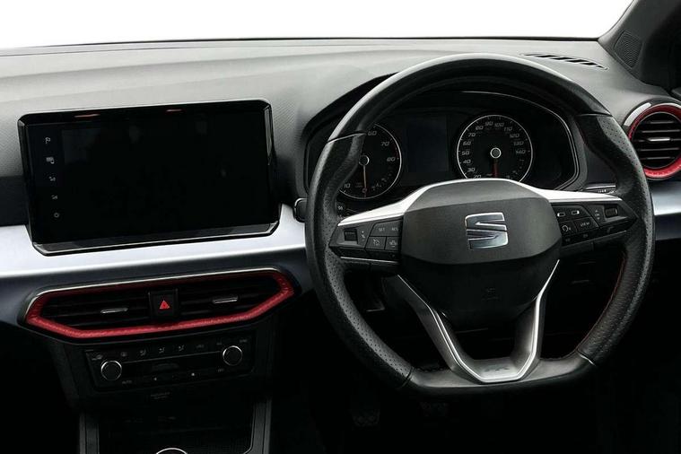 'Lights On' Reminder warning buzzer, 8" Digital cockpit, 9.2" touchscreen navigation system with type C USB socket, Voice control and DAB/AM/FM radio, Auto start and stop system, Bluetooth audio streaming with handsfree system, Digital clock, E-call, Full link smartphone integration with mirror link, wireless apple carplay, Google android auto + USB Type C cable for apple and android devices, Lane assist, Low fuel warning light, Outside temperature gauge, Power Steering, Seat connect with safety, service, remote and online, SEAT drive profiles and ECO function, SEAT logo boot release, Speed limiter, Trip computer, Sports suspension, Auxiliary input socket, Radio/MP3 player, SD card slot, Steering wheel mounted controls, Anti theft roof antenna, Auto dimming rear view mirror, Automatic rain sensing wipers, Black door mirrors, Body colour bumpers, Body colour door handles, Brilliant black window surrounds, Dark tinted rear windows, Electric adjustable/heated/folding door mirrors, Electric front windows, Electric headlight adjustment, Electric rear windows, Front/rear fog lights, FULL LED automatic headlights with dynamic headlight range control, coming and leaving home, LED daytime running lights, LED tail lights, Rear roof spoiler with FR twin exhausts, Rear side wing doors, Rear wiper, Third brake light, 3 seat bench in 2nd row, 60/40 split folding rear seat, Ambient interior lighting, Chrome detailing and black headlining, Cloth upholstery, Dual zone climate control with combination filter, Front courtesy lights, Front cupholders x 2, Front reading lights, Gear shift indicator, Glovebox, Height adjustable front and rear headrests (five), Height adjustable front seats, Height/reach adjust steering wheel, Illuminated air vent surrounds, Illuminated boot, Instrument lighting with brightness control, Isofix, Leather multifunction flat bottomed sports steering wheel, Passenger sunvisor, Single front passenger seat, Sports seats, Sunvisors with mirror and driver side card holder, 3 point seatbelts on all 3 rear seats, ABS, Active front headrests, Child locks on rear doors, Electronic stability control, Energy recovery system, Front assist forward collision warning and autonomous emergency braking, Front driver and passenger side airbags with curtain airbag and front passenger airbag deactivation, Hill hold control, Multi-Collision braking, Seat belt reminder for front and rear seats, Tiredness recognition system, Tyre pressure monitoring system, Electronic engine immobiliser, Locking wheel bolts, Perimeter alarm and interior monitoring with backup horn and tow away protection, Remote central locking + deadlocks, 17" Alloy wheels in Brilliant silver,