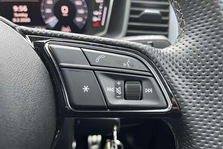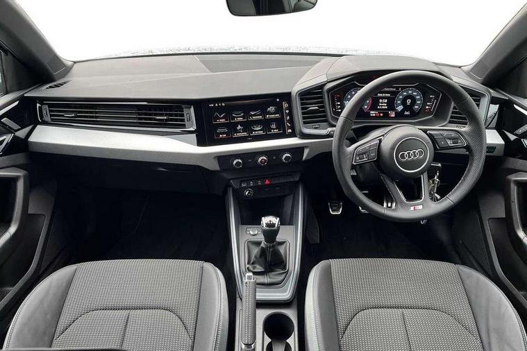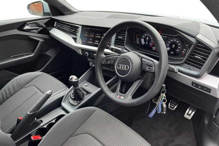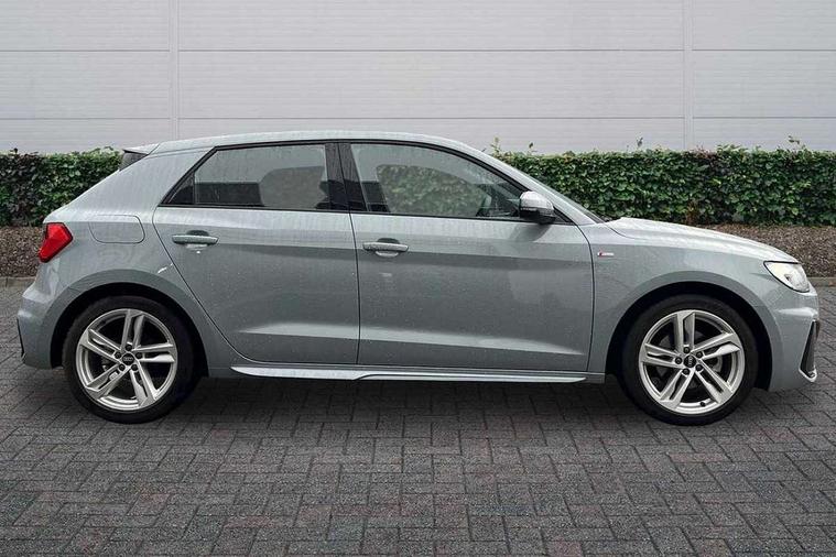 10.25" Digital instrument cluster display classis style instrument dials + speed, odometer, time, outside temperature, telephone menu + fuel level warning, Audi drive select - power steering assistance + engine, Audi smartphone interface with connect compatible smartphone via USB directly MMI display + Nav, music, third party apps controlled via MMI controller, Automatic start/stop system, Bluetooth interface, Cruise control, Driver's information system, Electromechanical power steering, Emergency e-call, Emergency services call system, Lane departure warning system, Service interval indicator, Speed limiter, Voice control system, Washer fluid level indicator, Sports suspension, 1 x SDXC card reader, 2 x USB type C connection points, DAB Digital radio, MMI radio plus with 8.8" colour MMI display screen and MMI touch, Auto dimming rear view mirror, Body coloured door mirrors, Door sills with aluminium inlays and S Line logo, Electric front and rear windows, Electrically adjustable, heated, folding door mirrors with integrated LED side indicator, Front side air inlets in grained matt black and C frame in anthracite black, Heat insulating glass windscreen and side windows, Heated rear windscreen, High level LED brake light, LED headlights with LED rear lights + dynamic rear indicators + headlight adjustment and high beam, turning light + LED daytime running lights, Radiator grille and rear diffuser in matt anthracite black, Radiator protective grille frame in matt aluminium silver, Rain and light sensors, Rear fog lights, Rear side wing doors, Rear wing door, Rear wiper, S line badges on front wings, Side front spoiler lips in grained matt black, 12V socket in centre console with two cup holders, 3 rear seats with headrests, 3 seat bench in 2nd row, 3 spoke leather multi-function plus steering wheel features S badging and grips in perforated leather with contrast stitching, 40:60 Split folding rear seat or folded fully, Black cloth headlining, Driver and passenger seat with manual height adjust with forward and backwards adjustment, Front and rear black floor mats with contrast stitching in fine silver, Front head restraints, Front passenger seat, Height and reach adjustable steering wheel, ISOFIX child seat mounting for front passenger and outer rear seats including top tether attachment point of outer rear seats, Leather gear knob with aluminium trim, Luggage compartment light with front and rear reading lights, Manually adjustable lumbar support in front seats, Stainless steel pedals, LED interior lighting pack - A1, Luggage compartment pack - A1, S line exterior styling pack - A1 Sportback, 3x3 point rear seatbelts, Audi pre-sense front with pedestrain and cyclist recognition, Brake assist function, Driver and front passenger airbag with front side and head airbags, Electronic Stability Control including ABS, EBD, ASR and EDL, Front passenger airbag deactivation switch, Hill hold assist, Manual rear child locks, Seatbelt height adjustment for front seats, Seatbelt monitoring, Tyre pressure warning light, Warning triangle and first aid kit, Anti theft alarm, Anti theft wheel bolts and loose wheel warning, Immobiliser, Remote central locking with 2 foldaway keys, Aluminium trim for control switches, air vents and digital instrument cluster, Silver grey inlays polygon structure in diamond paint finish, Structured grey accent areas including air vents, door handle recesses and centre console in quartz paint finish,