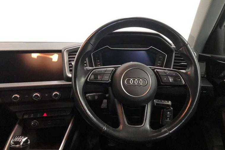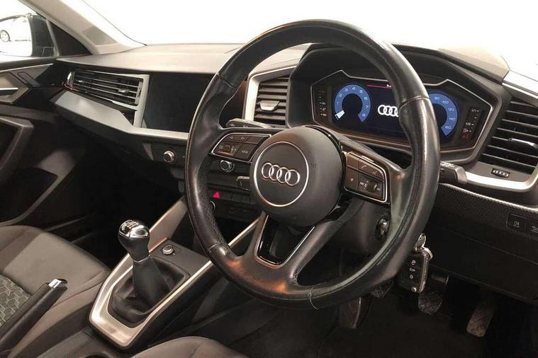 10.25" Digital instrument cluster display classis style instrument dials + speed, odometer, time, outside temperature, telephone menu + fuel level warning, Audi connect safety emergency and service including E-call, Audi drive select - power steering assistance + engine, Audi smartphone interface with connect compatible smartphone via USB directly MMI display + Nav, music, third party apps controlled via MMI controller, Automatic start/stop system, Bluetooth interface, Cruise control, Driver's information system, Electromechanical power steering, Lane departure warning system, Service interval indicator, Speed limiter, Voice control system, Washer fluid level indicator, Dynamic suspension, 1 x SDXC card reader, 2 x USB type C connection points, DAB Digital radio, MMI radio plus with 8.8" colour MMI display screen and MMI touch, Auto dimming rear view mirror, Body coloured bumpers, Body coloured door mirrors, Electric front and rear windows, Electrically adjustable, heated, folding door mirrors with integrated LED side indicator, Front side air inlets in grained matt black and C frame in titanium black, Heat insulating glass windscreen and side windows, Heated rear windscreen, LED headlights with LED rear lights + dynamic rear indicators + headlight adjustment and high beam, turning light + LED daytime running lights, Radiator grille and rear diffuser in matt titanium black, Radiator protective grille frame in matt aluminium silver, Rain and light sensors, Rear fog lights, Rear wiper, Scandium grey tailpipe trim, Side front spoiler lips in grained matt black, 12V socket in centre console with two cup holders, 3 rear seats with headrests, 40:60 Split folding rear seat or folded fully, Door sill trims with aluminium inlay, Driver and passenger seat with manual height adjust with forward and backwards adjustment, Front head restraints, Front/rear floor mats, Height and reach adjustable steering wheel, ISOFIX child seat mounting for front passenger and outer rear seats including top tether attachment point of outer rear seats, Leather gear knob with aluminium trim, Leatherette handbrake grip, Luggage compartment light with front and rear reading lights, Manually adjustable lumbar support in front seats, Novum cloth upholstery with front sport seats, Titanium grey cloth headlining, Luggage compartment pack - A1, 3x3 point rear seatbelts, Audi pre-sense front with pedestrain and cyclist recognition, Brake assist function, Driver and front passenger airbag with front side and head airbags, Electronic Stability Control including ABS, EBD, ASR and EDL, Front and rear seatbelt reminder, Front passenger airbag deactivation switch, Hill hold assist, Seatbelt height adjustment for front seats, Seatbelt monitoring, Tyre pressure warning light, Warning triangle and first aid kit, Anti theft alarm, Anti theft wheel bolts and loose wheel warning, Immobiliser, Remote central locking with 2 foldaway keys, Aluminium trim for control switches, air vents and digital instrument cluster, Silver grey accent areas including air vents, door handle recesses and centre console in diamond paint finish, Slate grey inlays polygon structure in fine paint finish,