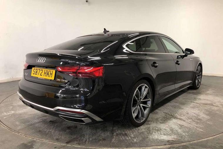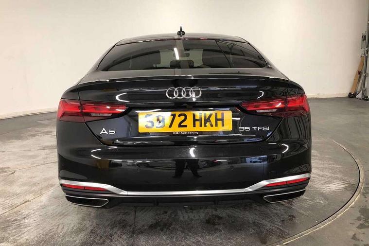 Audi connect safety and service (e-call), Audi connect with Amazon Alexa Integration, Audi drive select (Auto, Comfort, Dynamic and Individual), Audi parking system plus with front and rear sensors, Audi smartphone interface, Audi virtual cockpit - 12.3" full colour digital instrument cluster, vehicle/engine speed, Radio/media information+Driver assistance systems, Automatic start-stop system with coasting functionality and efficiency programme, Bluetooth interface, Electro-mechanical power steering, Email, calendar and text messages displayed via MMI, MMI nav+ with MMI touch - 10.1" high resolution MMI display, touch sensitive, 3D map, route/country info, dynamic route guide, personal route assist, Power operated tailgate, Rear view camera, Service interval indicator, Voice control system, Sports suspension lowered by 23mm, 8 passive loudspeakers, CD player, DAB digital radio reception, Two additional USB ports for rear passenger in rear centre console, Two SDXC card slots, Audi matrix LED headlights with LED rear lights + dynamic front and rear indicators, Auto dimming door mirrors, Auto dimming rear view mirror, Body colour bumpers, Body colour door handles, Body colour front spoiler lip, Body colour side sill trim, Body coloured door mirrors, Electric adjustable heated door mirrors, Electric folding door mirrors, Electric front windows, Front fog lights, Honeycomb structure radiator grille in grained matt black, Kerb-view function for passenger side, LED daytime running lights, LED side indicator lights integrated into door mirrors, LED third brake light, Matt aluminium silver tailpipe trim, Privacy glass, Rain and light sensors, Rear side wing doors, S line badges on front wings, S line front and rear bumpers with side skirts, S Line rear diffuser in matt titanium black with trim strip in matt aluminium silver, Side air inlets in grained matt black with matt aluminium silver inlay, Variable front intermittent wipers, Windscreen with acoustic glazing, 3 seat bench in 2nd row, 4 way electric lumbar support for driver and front passenger, 40/20/40 split folding 3 seater rear bench seat, Adjustable steering column, Black cloth headlining, Black perforated leather gearknob, Contrast stitching on seats, steering wheel and gear lever gaiter, Deluxe 3 zone electronic climate control, Front centre armrest, Front head restraints, Front/rear floor mats, Heated front seats, Illuminated door sill trim with S logo, ISOFIX child seat mounting and top tether, Luggage compartment mat, Manual seat adjustment, Rear centre armrest, Rear headrests, Single front passenger seat, Stainless steel pedals, Sunvisors with vanity mirrors, LED interior light pack - A5/RS5, 3x3 point rear seatbelts, 6 airbags - Driver, front passenger, curtain and side airbags, Electromechanical parking brake, Electronic Stabilisation Control (ESC) including ABS, ASR and EDL, Front passenger airbag deactivation, Height adjustable front seatbelts, Hill hold assist, Manual child lock in rear doors, Multi collision brake assist, Pop-up bonnet for pedestrian protection, Pre sense city, Seatbelt monitoring, Tyre pressure warning, Variable restraint system, Warning triangle and first aid kit, Anti theft alarm system, Anti theft wheel bolts, Immobiliser, Keyless Go, Remote central locking, Matt brushed aluminium inlays, Tool kit, Tyre repair kit,