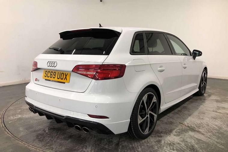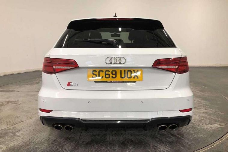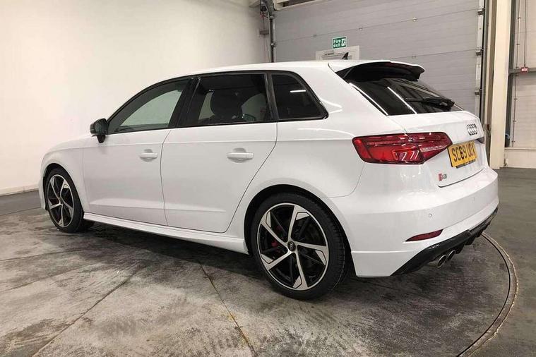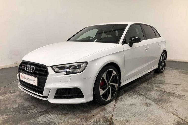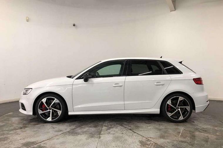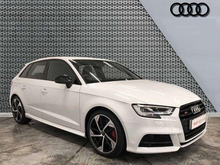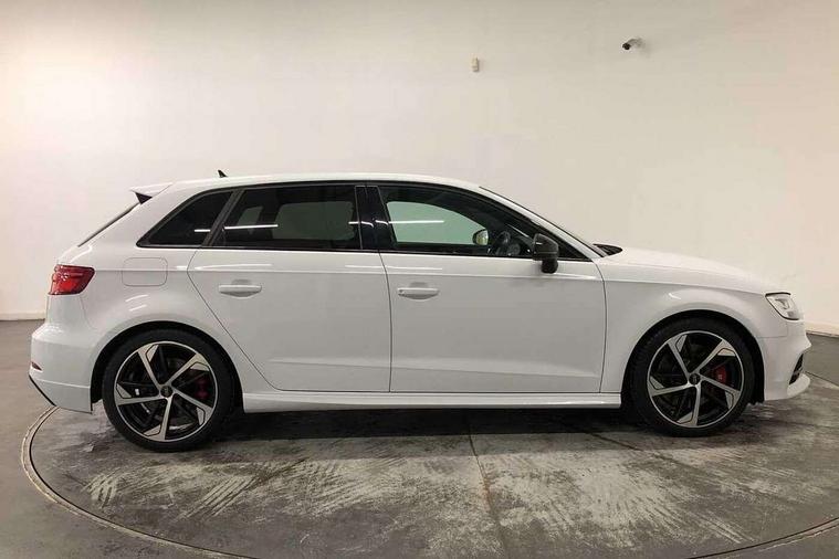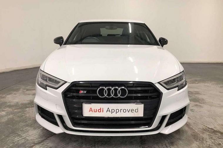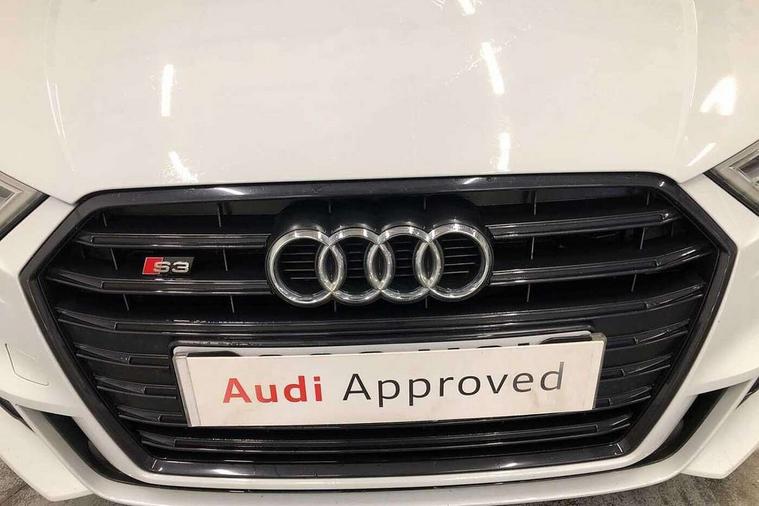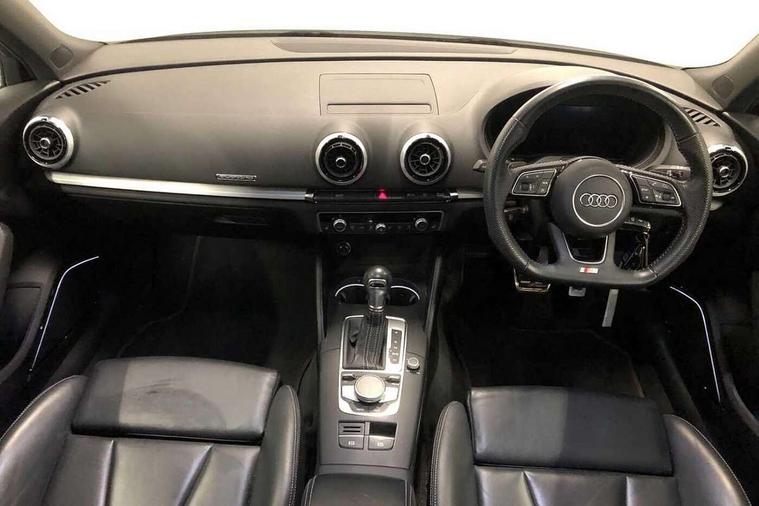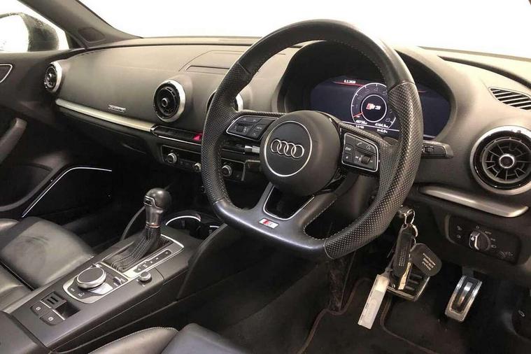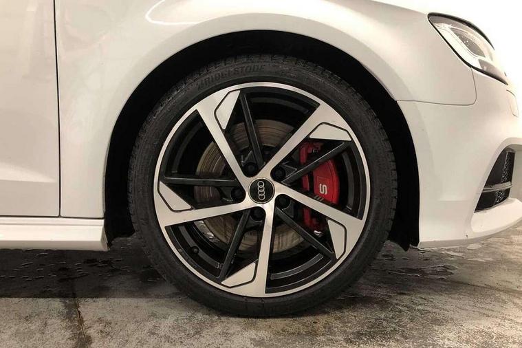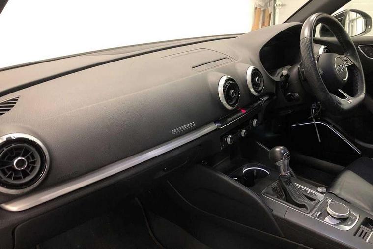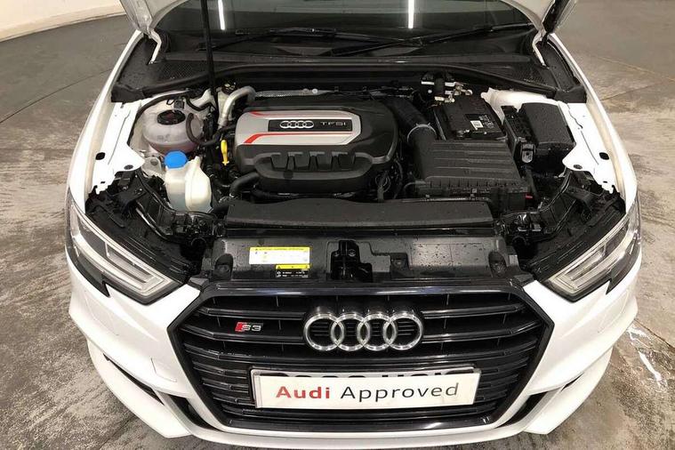 Audi drive select, Audi smartphone interface, Automatic start/stop system, Colour driver's information system display, Instrument dials with S3 logo, Mobile telephone preparation - bluetooth interface, Progressive power assisted steering, SD card based MMI navigation, Service interval indicator, Speed limit display, Voice control system, Voice recognition for navigation system, S sports suspension, 2 USB interfaces and Aux-In jack, Audi music interface, Bang and Olufsen sound system, CD player, DAB Digital radio, MMI radio plus with 7" colour MMI screen and MMI controller, Online entertainment, Audi Beam uses LEDs to project the Audi Sport logo, Auto dimming interior rear view mirror, Body colour roof spoiler with aerodynamic inserts in high gloss black, Electric front windows, Electric rear windows, Electrically adjustable and heated door mirrors with integrated LED side indicators, Headlight washers, Heated windscreen washer jets, LED daytime running lights, Light and rain sensors, Privacy glass - dark tinted rear and rear side windows from B-pillar backwards, Rear wiper, Sport specific side air inlet grille and diffuser insert, Twin oval chrome trimmed exhaust tailpipes, 3 adjustable rear headrests, 3 spoke leather multifunction sports steering wheel with paddle shift gear change controls, 60/40 split folding rear seat, Adjustable front centre armrest, Black cloth headlining, Dual zone electronic climate control, Front and rear interior lights with delay, Front/rear floor mats, Heated front seats, Height and reach adjustable steering wheel, Illuminated door sill trims with S logo, Isofix child seat preparation for front passenger/outer rear seats inc passenger airbag deactivation including top tether, Lashing point in luggage compartment, Manual height adjustable front seats, Stainless steel pedals, Storage compartments in doors side trims, centre console and under front drivers seat, Black styling pack - A3/S3, LED interior light pack - A3/RS3, Non smoking pack - A3, Storage and luggage pack - A3/RS3, 3 point seatbelts on all seats, ABS/EBD, Active bonnet, Active front headrests, Airbags - front driver/passenger, front & rear side, curtain, drivers knee, ASR, EDL, Electromechanical parking brake, ESC - Electronic Stability Control + traction control, Front passenger airbag deactivation, Hill hold assist, Manual rear child locks, Multi-Collision braking, Seatbelt warning, Tyre pressure warning, Warning triangle and first aid kit, Anti theft alarm, Anti-theft wheel bolts, Remote control central locking, Thatcham category 1 alarm + immobiliser, Aluminium air vent surrounds, Aluminium trim elements, Matt brushed aluminium inlays, Tool kit, Tyre repair kit,