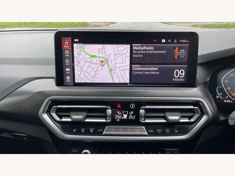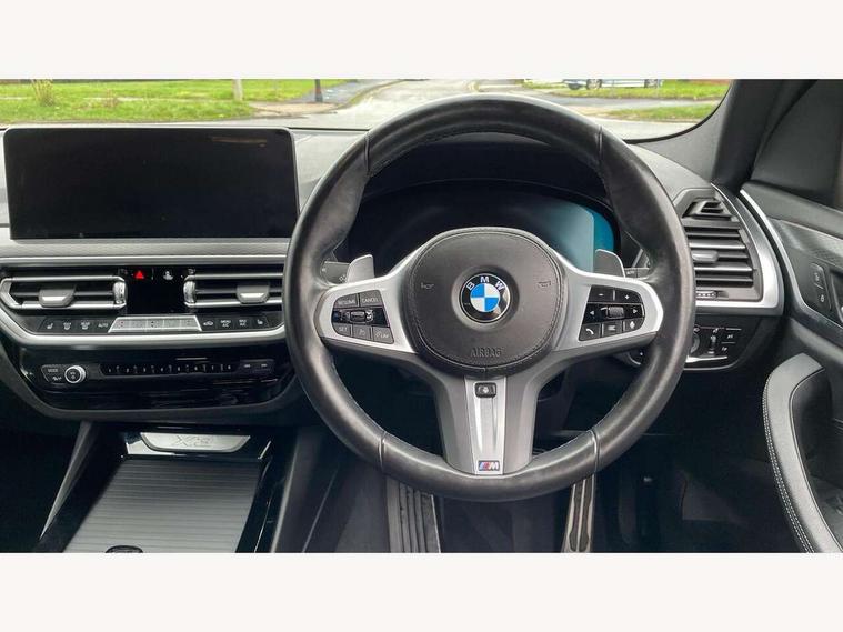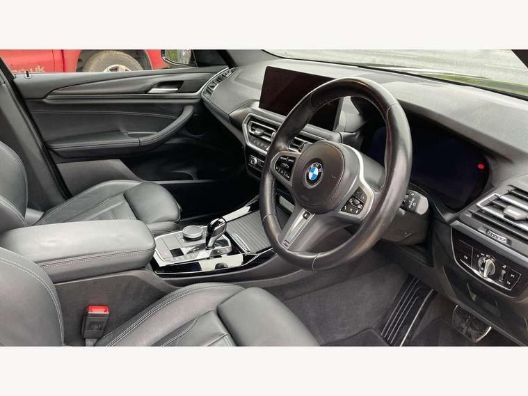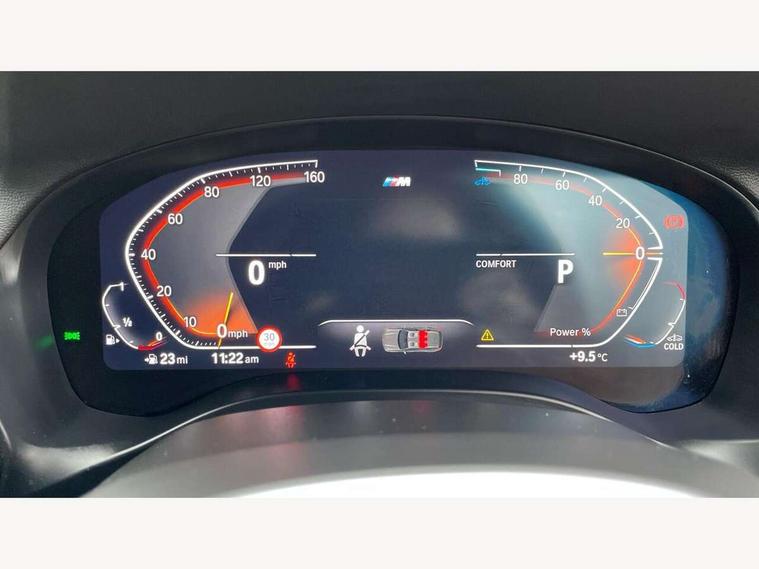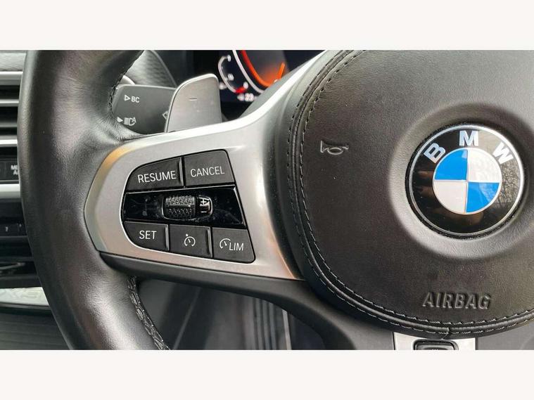 Active Guard, Attentiveness assist, BMW Live Cockpit Professional nav system including 12.3" instrument display + 12.3 high resolution control display, BMW Online services, BMW Teleservices, Brake pad wear indicator in front and rear, Check Control warning system for monitoring of lights and door/luggage compartment open warning, Condition based service - BMW service history, electronic service booklet, integrated owner's handbook, Connected drive services, Cruise control with brake function + speed limiter, Electric boot lid, Front/rear Parking distance control, iDrive touch controller with 8 favourite buttons, Instrument cluster with speedometer with mph readout, tachometer, fuel gauge and oil temperature gauge, Lights on warning by audio warning signal when ignition is switched off, Oil sensor for level and grade, warning by check control system, On board computer - average speed+fuel consumption, service interval, clock/date, odometer/trip meter, outside temperature display and ice warning, Optimum shift indicator, Personal Profile - automatic lock when driving away selectable, Run flat indicator, Stop/start system, Variable sports power steering with drive performance control Sport+ mode, Automatic transmission with gearshift paddles, Incorrect fuelling protection, M sport suspension, Multi-link rear suspension, BMW professional radio/CD/MP3, DAB tuner, Acoustic glazing, Automatic windscreen wipers and automatic headlight, Black finish on B pillars, Body colour door handles, Body colour electric adjust heated aspherical door mirrors, Body colour roof mouldings, Body coloured bumpers, Direction indicator, side repeaters, integrated in exterior mirrors, Dynamic brake lights, Exhaust tailpipes - dual, round, split left and right with chrome finisher, Fingertip control / anti-trap function on electric window, Folding wing mirrors with auto dimming, Follow me home headlights, Front and rear bumper system with replaceable deformation elements, Front and rear electric windows, Gloss chrome tailpipes finishers, Green tinted heat insulating glass, Heated windscreen washer jets, High beam assistant, High gloss black shadow line roof rails, High gloss shadowline exterior trim in decorative moulding side frame/recess cover/guide rail/B, C pillars/mirror frame and triangle with mirror base, High level 3rd brake light incorporating LED Technology, Interior rear view electrochromatic mirror with automatic anti dazzle function, LED tail lights, Lightweight engineering, M aerodynamic bodystyling, M Sport entry door sill strips, Model designation, Rain sensor, Rear side wing doors, Rear wing door, Rear wiper, Shark fin antenna, Side exterior M designation badges, Visible VIN plate, Welcome lighting, Windscreen wipers with adjustable interval, 12V power point in luggage area, 12V power socket in front centre console, 2 x USB Type C ports for charging and data transmission (front centre console) and 2 x USB Type C ports for charging (rear centre console), 3 rear headrests, 3 seat bench in 2nd row, 3 zone automatic air conditioning, 4 lashing points to secure luggage, 40:20:40 split folding rear seat with loading system, Ambient lighting, Anthracite headlining, Automatic interior light when door is opened/ignition switched off or via remote key, Floor mats in velour, Foldable storage floor with compartment, Four grab handles integrated in roof lining, Front and rear bottle holders integrated into door trim storage compartments, Front and rear side armrests integrated into door trim, Front centre armrest with storage compartment, Front footwell lights, Front head restraints, Front passenger seat, Front sports seats, Front/rear courtesy lights with soft on/off dimming, Front/rear reading lights, Heated front seats, Isofix rear child seat preparation, Leather gear knob, Lockable glove compartment, Luggage area underfloor compartment, Luggage compartment lighting, M sport leather steering wheel, Multifunction steering wheel, Parcel shelf removeable and storable under boot floor, Reach and rake adjustable steering column, Rear centre armrest with 2 cupholders, Removable / retractable luggage cover, Slope adjustable rear seats, Storage compartment in rear centre console and front/rear door trims, Sun visors with vanity mirrors and ticket pocket, Toolkit located in luggage compartment, Two front cupholders with removable oddments tray/lid, Connected pro pack - X3, Driving assistant pack - X3, ADB - Automatic Differential Brake, Anti-lock braking system (ABS) with brake assist, Automatic Stability Control (ASC), Battery safety cut-off, BMW emergency call, Brake drying, Brake energy regeneration, Braking pre-tensioning, Child locks on rear doors, Cornering brake control (CBC), Crash Sensor - activation of central locking release, hazard warning light and interior lighting, Deactivation of fuel pump in the event of a crash, Driver and front passenger front and side airbags with passenger deactivation and ITS front and rear head airbags, Driver and front passenger knee airbag, DSC+, Dynamic brake control, Dynamic Traction Control - DTC, Electromechanical parking brake, Hill descent control, Hill start assist, Seatbelt security check for front seats, Side impact protection, Three point seatbelts to all seats with front and outer rear pyrotechnic belt tensioners and seat belt force limiters, Two tone horn, Tyre pressure sensor, Ventilated front and rear disc brakes, Warning triangle and first aid kit, Central locking switch for all doors, fuel filler cap and luggage compartment, Electronic engine immobiliser, Locking wheel nuts, Remote control including two integrated key - one button for open/close all lockable content, windows and separate button for open luggage compartment, Remote control Thatcham category 1 alarm, Start/stop button with Comfort Go keyless engine start and auto Start/stop deactivation button, Low rolling resistance tyres,