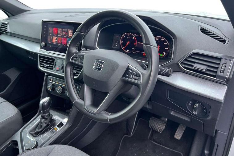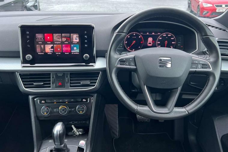 Chrome interior detailing - door and dashboard decorative inserts, 18" Performance machined alloy wheels 37/1, Alarm, Central locking, Keyless entry and go, Locking wheel bolts, Power locking and remote control with two foldable keys and opening boot selector, Navigation system with 8" colour touchscreen with proximity sensor, 3D Map display, DAB, AM/FM Radio, 3 USB, Aux-in, 8 speakers, SD card, Steering wheel mounted audio/telephone controls, ABS, Active front head restraints, Driver/front passenger airbag, Drivers knee airbag, Electronic parking brake with auto hold, Electronic stability control, Front passenger airbag deactivation, Front side airbags, Hill hold control, Seatbelt reminders for all seats, Tiredness recognition system, Traction control, Two curtain airbags, Tyre pressure monitoring system, Auto dimming rear view mirror, Auto headlights with automatic coming and leaving home function, Automatic headlight adjustment, Black bumpers, Black roof rails, Black window trims, Body colour door mirrors and handles, Chrome front grille frame, Dark tinted rear windows, Electric front/rear windows, Electrically adjustable and folding door mirrors, Exterior black mouldings, Front halogen fog lights with cornering function, Fuel door linked to central locking, Full LED headlights with LED rear lights, Hidden exhaust pipe, LED daytime running lights, LED licence plate lighting, Rain sensing wipers, Rear fog lights, Rear wash/wipe, 3 zone climate control, Ambient spot lighting and front footwell illumination, Black interior roof, Centre armrest in front with air outlet in rear, Comfort front seats, Driver and passenger sunvisor with covered and illuminated mirror, Driver/passenger lumbar adjustment, Easy fold rear seat system - second and third row, Folding table on front seat backrests, Forward and backward adjustable seats 2nd row, Four cargo rings in the boot, Front cupholders, Front seat back storage pockets, Gear shift indicator, Height adjustable driver's seat, Height adjustable front headrests, Height adjustable passenger seat, Illuminated boot, Illuminated glovebox, Instrument lighting with brightness control, ISOFIX points in outer 2nd row seats and front passenger seat with top tether anchorage points, Leather gear knob, Leather steering wheel, Leather wrapped multifunction steering wheel, Luggage compartment floor with split function, Olot cloth upholstery, Rear armrest and easy back seat release mechanism from boot, Sliding boot cover, Storage draw under front passenger seat, Three 12V sockets, Tool kit, 'Lights On' Reminder warning buzzer, 10.25" digital cockpit, Bluetooth audio streaming with handsfree system, Cruise control with speed limiter, Digital clock, Digital cockpit, e-Call (emergency call), Front assist city emergency braking and pedestrian protection, Full Link Smartphone Integration with Mirror Link, Apple Car Play, Google Android Auto, Lane assist, Low fuel warning light, Outside temperature gauge, Rear parking sensor, RPM counter, SEAT Drive profile - 4 different modes, progressive steering, 4Drive versions with off-road/snow, steering response, throttle response, gear shifts, Trip computer, Wash water level indicator, Comfort suspension, XDS electronic differential lock,