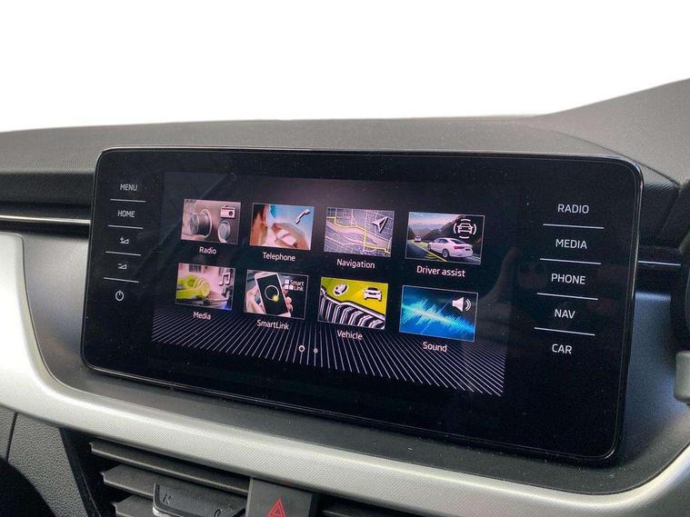 Amundsen satellite navigation with 9.2" glass colour touchscreen display, web radio, voice control and traffic sign recognition, Bluetooth system, E-call, Front assist system, Gesture control, PAS, Service indicator, Speed limiter, Wireless Smartlink for Apple CarPlay (wired for Android Auto), 8 Speakers, Auxiliary input socket, DAB Digital radio, Body colour bumpers, Body colour door mirrors and handles, Chrome grille surround, Dimming rear view mirror with black surround, Electrically adjustable and heated door mirrors, Front and rear electric windows, Headlight range control, Heated rear window, LED rear lights - low functionality, LED third brake light, Light sensors, Privacy glass, Rain sensor, Rear fog lights, Rear side wing doors, Rear wiper, 12V Accessory socket in centre console, 3 seat bench in 2nd row, Chrome inner door handles, Cloth upholstery, Front head restraints, Glove compartment with illumination, Height adjustable driver and front passenger seats - manual, Ice scraper, Isofix child seat fittings on outer rear seats, ISOFIX on front passenger seat, Manual lumbar support for front seats, Rake/reach adjustable steering wheel, Reading lights, Single front passenger seat, Sun visors with illumination on front passenger, Textile floor mats, Third rear headrest, Top tether for front passenger seat, Umbrella in driver's door, 3x3 point rear seatbelts, Airbags - driver and front passenger, ESP, Front passenger airbag deactivation switch, Front side airbags with curtain airbags, Hill hold control, Manual parking brake, Manual rear child locks, One tone horn, Rear disc brakes, Seatbelt reminder for driver an co-driver, Traction control, Tyre pressure monitor, Anti-theft alarm system with interior monitoring, backup horn, towing protection and remote central locking with SAFE system, Anti-theft wheel bolts, Electronic engine immobilizer, Silver haptic decorative insert on the dashboard with hot stamping in glossy black,