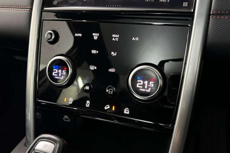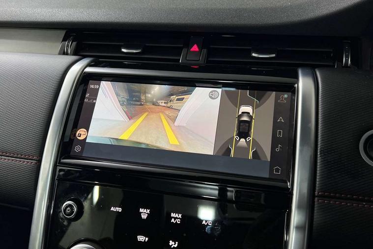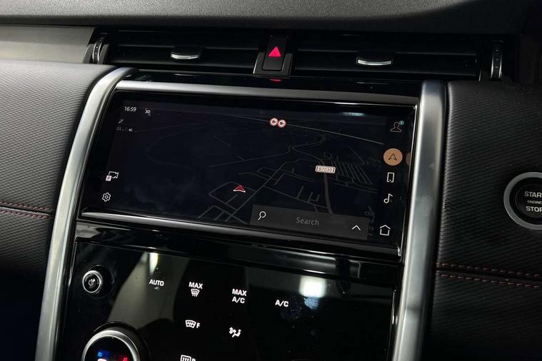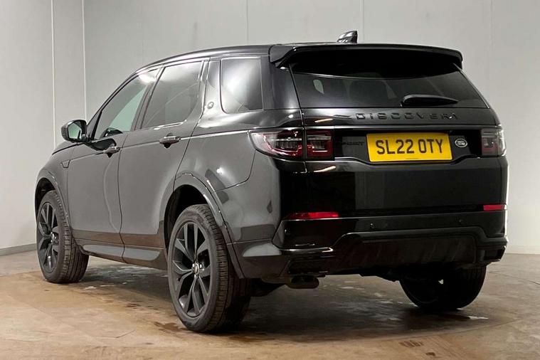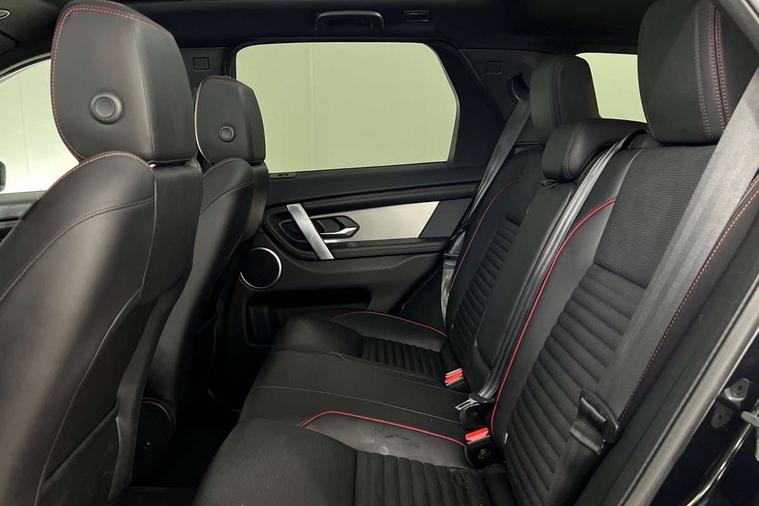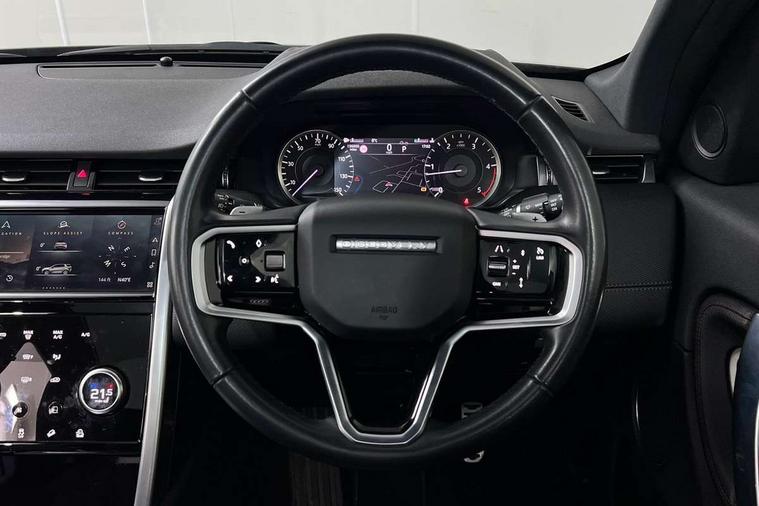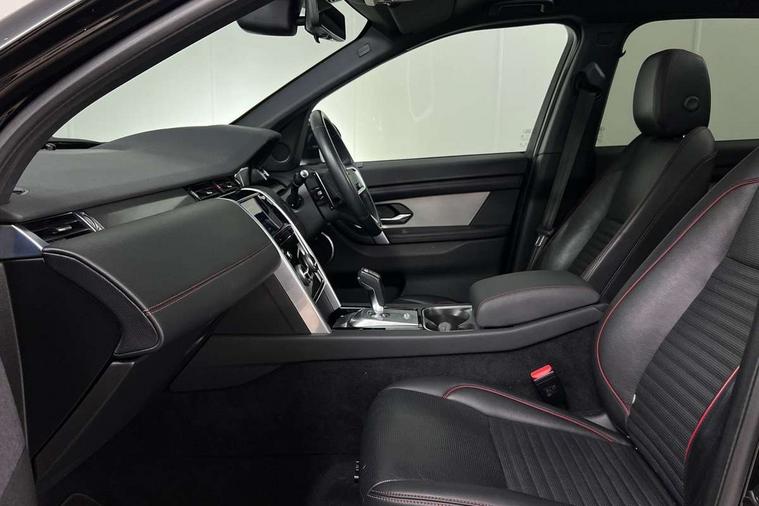10" touch screen, Adaptive cruise control, Android Auto, Apple CarPlay, Driver condition monitor, eCall emergency call system, Front and rear parking aid, InControl remote premium, Lane keep assist, Locking fuel flap, PAS, Pivi Pro connected navigation system with upgraded Infotainment, Powered tailgate/boot lid, Push button start, Rear collision monitor, Service interval indicator, Traffic sign recognition with adaptive speed limiter, Trip computer, Wade Sensing, All terrain progress control, Coil suspension system, Diesel particulate filter, Dynamic stability control, Terrain Response 2, Bluetooth connectivity including audio streaming, Digital Audio Broadcast radio-DAB, Steering wheel mounted audio controls, 3rd brake light, Automatic headlights, ClearSight interior rear view mirror, Electric front/rear windows, Electric heated/power fold door mirrors with approach lights and auto dimming driver side, Fixed panoramic sunroof with powered sunblind, Front and rear recovery eyes, Heated rear window, Heated windscreen including heated washer jets, No badges, R Dynamic badge, Rain sensing windscreen wipers, Rear fog lights, Rear side wing doors, Rear wing door, Rear wiper, 5 seats, Bright metal pedals, Centre console with armrest, Footwell lights, Front and rear grab handles, Front passenger isofix child seat attachment, Loadspace cover, Loadspace light, Overhead lighting console, Overhead stowage for sunglasses, Rear headrests, Satin chrome gearshift paddles, Sunvisors with illuminated vanity mirrors, Tilt/reach adjustable steering wheel, Black exterior pack - Discovery sport, Online pack with data plan - Discovery, 3 point seatbelts on all seats, ABS, Brake hold function, Child locks on rear doors, Collision mitigation braking system, Cornering brake control (CBC), Driver/Front Passenger airbags, Drivers knee airbag, Electronic brake force distribution, Electronic parking brake, Emergency brake assist, ESP + traction control, Hill descent control, Hill launch assist, Pedestrian airbag system, Rear seat ISOFIX, Roll stability control, Side and curtain airbags for front and 2nd row seats, Trailer stability control, Tyre pressure monitoring system, Battery Back Up System (BBUS) with tilt sensor, Global lock and unlock switch on driver door, Intrusion sensor, Keyless entry, Locking wheel nuts, Centre stack rails in noble chrome,