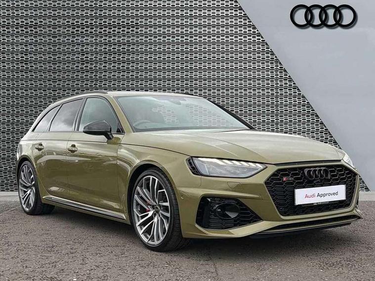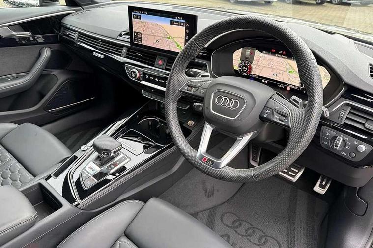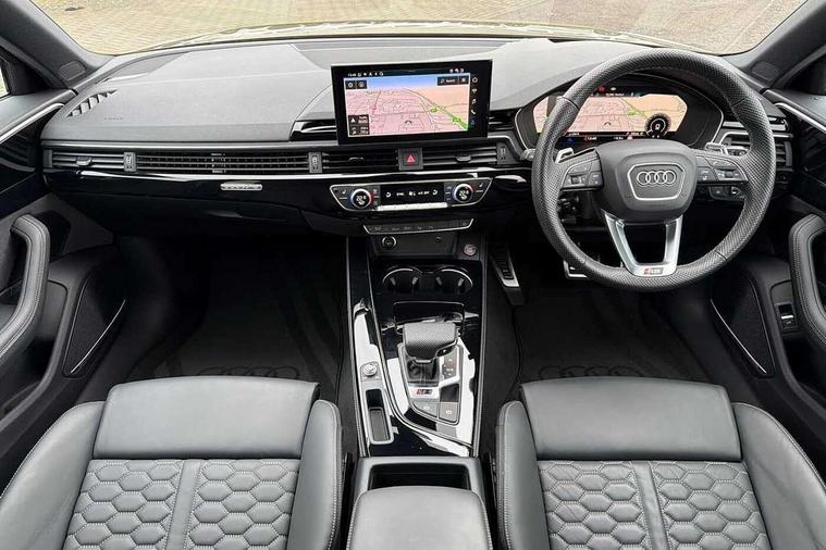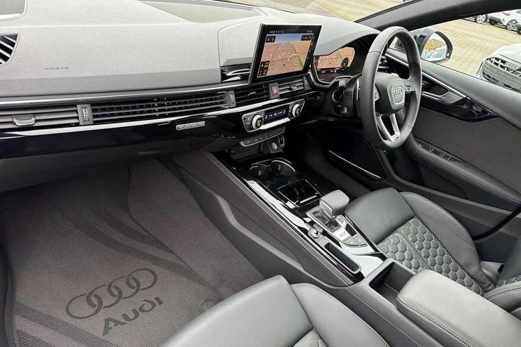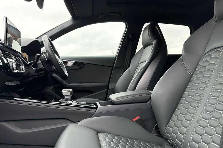 7" Colour driver information system, Advanced key with electric hands free boot opening system, Audi connect safety and service (e-call), Audi smartphone interface, Audi virtual cockpit with RS specific display, Automatic start-stop system with coasting functionality and efficiency programme, Bluetooth interface, Camera based traffic sign recognition, Email, calendar and text messages displayed via MMI, Head up Display, Lane departure warning, MMI Navigation plus with MMI touch includes 10.1" high resolution colour MMI display, 3D map, Power opening/closing tailgate, Progressive steering, RS Audi drive select, Service interval indicator, Voice control system, 58 Litre fuel tank, Increased top speed to 174mph, Quattro sports differential, RS sport suspension plus with dynamic ride control, 2 USB charging ports, Bang + Olufsen 3D sound system, DAB digital radio module, Two additional USB ports for rear passenger in rear centre console, 3rd brake light, Audi Beam uses LEDs to project the RS logo onto ground as you exit your RS4, Audi matrix LED headlights with LED rear lights + dynamic front and rear indicators, Audi rings and lettering glossy black, Auto dimming rear view mirror, Automatic headlights + automatic windscreen wipers, Black roof rails, Blue tinted glass, Body colour door handles, Electric front windows, Electric rear windows, Electrically folding auto dimming/adjustable/heated door mirrors with memory function, LED side indicators and kerb view function for passenger side, Flared front and rear wheel arches, Front bumper with enlarged air inlets, Headlight range control, High beam assistant, High gloss black door mirror housing, High gloss black triangular aperture at rear door, Honeycomb design grille with quattro logo, Lateral air inlets next to front headlights, LED daytime running lights, LED indicators in door mirrors, Panoramic glass sunroof, Privacy glass with rear acoustic glazing, Rain and light sensors, Rear side wing doors, Rear wiper, Roof spoiler, RS 4 badges on grille and rear, RS sport exhaust system, RS4 dual branch chrome tailpipes with left and right oval pipes, Side sill extensions in body colour with high gloss black inserts, Towbar preparation, Windscreen with heat insulating and acoustic glazing, 3 seat bench in 2nd row, 40/20/40 split folding rear seats with rear centre armrest, Black cloth headlining, Deluxe 3 zone electronic climate control, Door armrests and knee pad in leatherette, Electric load area cover, Electrically adjustable front seats, Front centre armrest, Front headrests, Heated front and outer rear seats, Heated steering wheel, Height and reach adjustable steering wheel with full size airbag, Illuminated door sill trims with RS4 logo, ISOFIX child seat mounting and top tether, Luggage compartment carpet, Rear headrests, Retractable load area cover, Single front passenger seat, Stainless steel pedals, Sunvisors with vanity mirrors, Black styling pack - RS4, City pack - RS4, Extended LED Interior multi-coloured lighting pack - RS4, LED Interior light pack - RS4, Non Smokers pack, Tour pack - RS4, 3 point seatbelts on all rear seats, Adaptive driver and front passenger airbags, Attention and drowsiness assist, Electromechanical parking brake, Electronic stabilisation control including ABS, ASR and EDL, Enhanced braking system, First aid kit with warning triangle and high visibility vests, Front head airbags, Front seatbelt pretensioners + load limiters, Front side airbags, Hill hold assist, Manual child lock in rear doors, Multi-Collision braking, Pop-up bonnet for pedestrian protection, Pre sense city, Rear side airbags, Seatbelt monitoring, Traction control, Tyre pressure warning, Variable restraint system, Warning triangle and first aid kit, Anti theft alarm, Anti-theft wheel bolts, Immobiliser, Keyless Go, Remote central locking, Remote control key with RS emblem, Piano black finish inlay, 20" 5 segment spoke evo design matt grey sport alloy wheels with high sheen finish, Tool kit, Tyre repair kit,