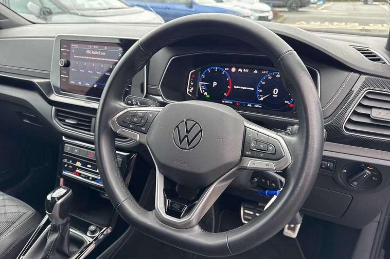 'Lights On' Reminder warning buzzer, 10.25" Digital cockpit pro, Adaptive cruise control including front assist, forward collision warning, autonomous emergency braking, speed limiter, Advanced driver attention and drowsiness monitor, Blind spot monitoring, Car information display, Driver profile selection including ECO function, Dynamic road sign display, E-Sim card for online connectivity, eCall emergency call system, Front and rear parking sensors, Low washer fluid warning light, Multifunction computer with visual gear change recommendation for fuel consumption, Multifunction front facing camera for distance control, Operating permit alteration, Power assisted steering, Preparation for navigation system with media and internet package, Preparation for We connect and We connect plus, Semi-automated driving assistance, travel assist including lane keeping system Lane Assist and emergency assisst, Speedo, rev counter, electronic odometer, trip, service interval display, exterior temperature and fuel gauge, Warning sound and light for doors and tailgate open, Warning sound and light for front seatbelts unfastened, Wireless Car net app connect with Apple CarPlay, combined functionality of Apple CarPlay/Android Auto and MirrorLink, Misfuel prevention device, Start-stop system with battery regeneration (recuperation - energy recovery during braking), 2 USB C ports in front, 2 USB charging sockets on the centre console in the rear charging capacity upto 45W, Diversity antenna for FM reception, Music playback - MP3, WMA and AAC files, Radio, Automatic dimming interior rear view mirror, Automatic hazard lights activation under emergency braking, Automatic headlight control with LED separate daytime running light and coming home and leaving home feature, Black roof rails, Body colour door handles, Body colour door mirrors, Body coloured bumpers, Dynamic headlight range control with self adjusting whilst driving, Electric folding door mirror, adjustable, heated with front passenger exterior mirror lowering function, Exterior mirrors convex on the left and aspherical on the right, Front and rear electric windows, Front door sill protectors with R-Line logo, Galvanised body, Heat insulating and laminated safety glass windshield, Heat insulating darkened glass in side and rear windows, High Beam Assist, automatic sensing for switching between dipped and main beam, LED rear combination lights, LED third brake light, Lower door sills and door pillars in black, Rain sensor, Rear fog light on one side, reversing light on both sides, Rear side wing doors, Rear tinted glass 65% approx light absorbing from B pillar backwards, Rear window aerial, Rear window wiper with intermittent control, Reflectors in all doors, Scuff plates, Tailgate with integrated roof spoiler, 12V Accessory socket in centre console, 2 Front and rear reading lights incorporating LED technology, 3 rear head restraints, 3 seat bench in 2nd row, 60/40 split folding rear seat backrest, Air care climatronic 2 zone air conditioning system, Ambient lighting, Brushed stainless steel pedals, Chrome plated radiator grille inserts, air vent surrounds and light switch surrounds, Cloth upholstery, Comfort front sport seats, Door and side trim panel, Drawer under drivers seat, Driver and front passenger sunvisor with vanity mirror, Dust and pollen filter, Front + rear carpet mats, Front centre armrest with storage compartment, Front footwell illumination, Front seat back storage pockets, Glove compartment door with light, Heated front seats, Heating and fresh air system with 4 stage blower, Height/reach adjust steering wheel, Instrument lighting white adjustable panel illumination, Interior light with switch off delay and dimmer, Isofix anchors for child seats on outer rear seats and front passenger seats, Leather gearshift handle, Leather wrapped multifunction steering wheel, Luggage compartment floor, Luggage compartment lighting, Manual front seats with height adjustment, Padded dashboard, Removable luggage compartment cover, Single front passenger seat, Storage compartment in drivers and front passengers door, Titanium black roof lining, Unsplit sliding rear seat bench, 3 point outer rear seat belts with ECE label, 3 Point seatbelt for centre rear seat, Anti-lock Braking System (ABS) with Hydraulic Brake Assist (HBA), Automatic post collision braking system, Disc brakes in front, Disc brakes in rear, Driver and front passenger safety-optimised head restraints, Drivers and Front Passengers airbags with front passengers airbag deactivation switch, ESC with EDL and ASR (traction control), Extended and predictive pedestrian/cyclist protection, Front and rear passenger curtain airbag system including front side airbags, Height adjustable front 3 point seatbelts + pretensioners, Hill start assist, Pre crash preventive occupant protection, Proactive passenger protection system in combination with front assist, Rear door child safety locks, Rigid safety cell with front and rear crumple zones, Single tone horn, Tyre pressure loss indicator, Volkswagen roadside assistance, Alarm with interior protection, Anti theft alarm system, Electronic engine immobiliser, Remote tailgate unlocking using key fob, Titanium Black Decorative inserts - R Line, Low rolling resistance tyres,