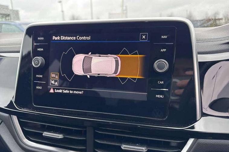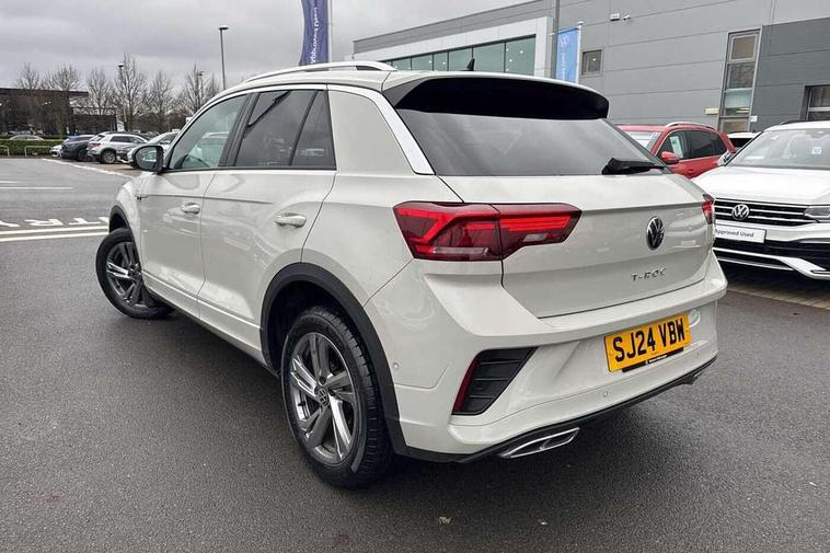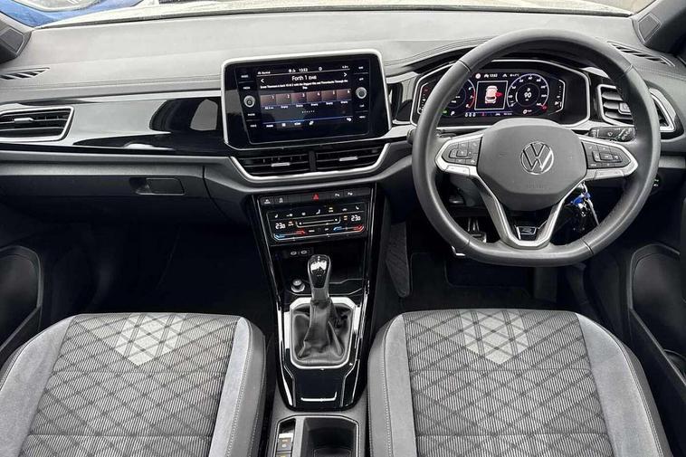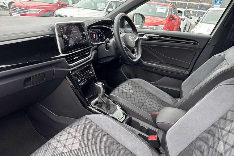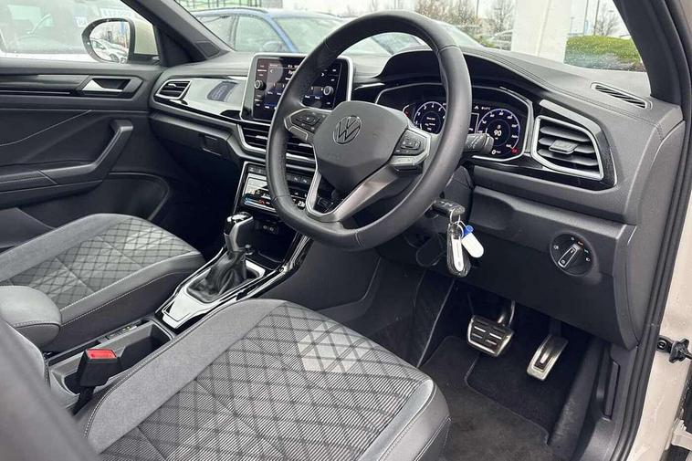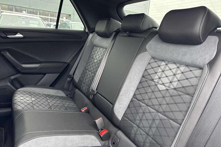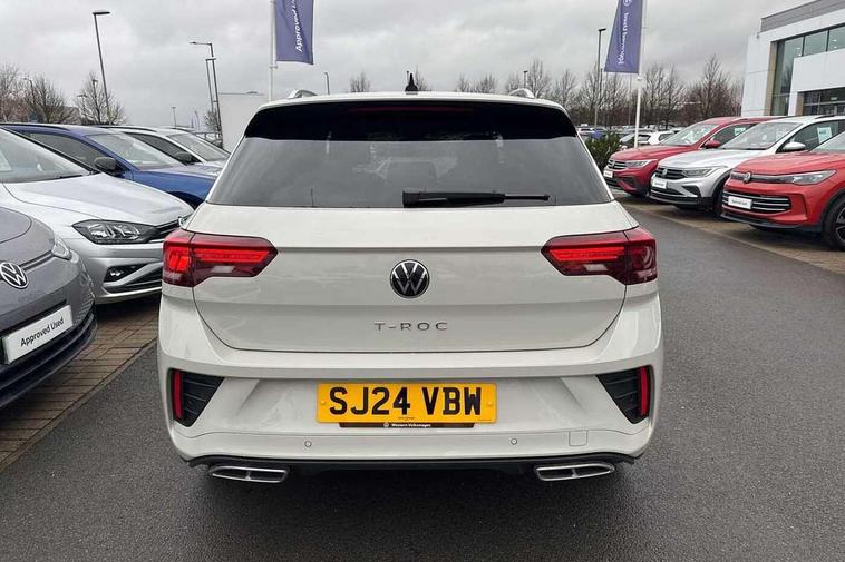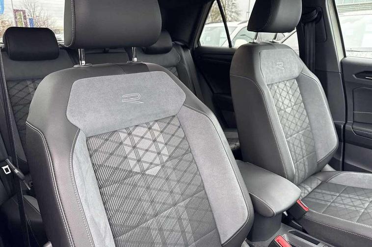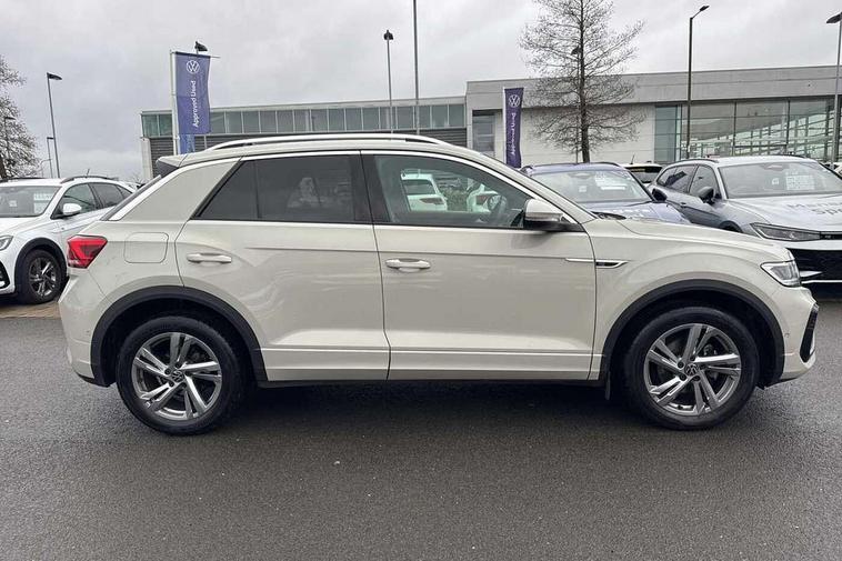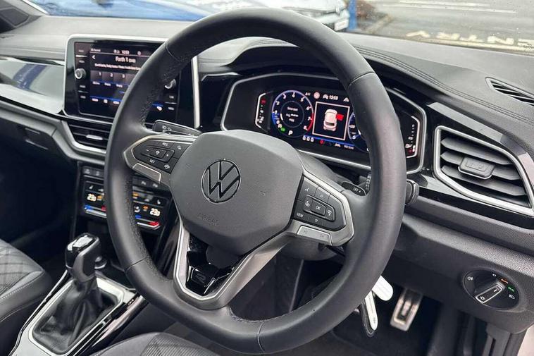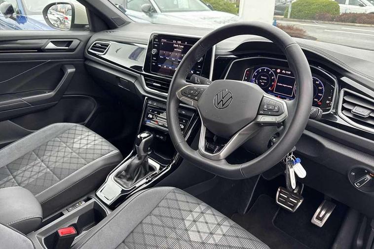 10.25" Digital cockpit pro, Advanced driver attention and drowsiness monitor, Bluetooth mobile phone interface, Emergency call service, Lane keeping system Lane Assist, Modified key software - reduce switch off time for key status change to Long no motion, Online services, Park assist including front and rear parking sensors, Service interval indicator, Tailgate/trunk lid release from outside, Think blue trainer driver tips and journey analysis, Warning sound and light for front seatbelts unfastened, Wireless app connect, Battery regeneration during braking, Start/stop function with battery regeneration, Diversity antenna for FM reception, Music playback - MP3, WMA and AAC files, Premium USB cable in choice of either Apple or Android smartphone compatibility, SD card slot, Simultaneous pairing of 2 compatible mobile devices, Title and cover art display, We Connect and We Connect Plus functionality, 3rd brake light, Auto dimming interior rear view mirror, Automatic hazard lights activation under emergency braking, Automatic headlight control with LED separate daytime running lights with coming/leaving home function, Electrically adjustable and heated door mirrors, Extended roof spoiler, Exterior mirrors aspherical on driver side, convex on front passenger side, External USB type C socket and charging sockets, Front windscreen wiper with intermittent wipe and 4 position delay, Heated rear window, LED rear combination lamps, LED rear number plate lights, Power windows with comfort operation and circuit breaker, R-Line design body coloured bumpers, Rain sensor, Rear exhaust tailpipe, Rear fog light on one side and reversing lights on both sides, Rear side wing doors, Rear wash/wipe with intermittent wipe setting, Remote electrically foldable door mirrors, puddle lights and reverse activated passenger's door mirror, 12V power socket in centre console, 3 rear head restraints, 3 seat bench in 2nd row, 4 load lashing points in luggage compartment, Air care climatronic air conditoning system with active combination filter and 2-zone temperature control, Black roof lining, Chrome plated radiator grille inserts, air vent surrounds and light switch surrounds, Door and side trim panel with leatherette insert, Front + rear carpet mats, Front centre armrest, Front cupholders x 2, Front footwell illumination, Front reading light, Front scuff plates with R Line logo, Front seat back storage pockets, Glove compartment door with light, Instrument lighting, white adjustable panel illumination, Interior ambient lighting and surround lighting, Interior light delay, Isofix child seat preparation, Leather gearshift handle, Load-through provision with cup holder when folded down ('Unsplit rear seat bench, split folding backrest, with centre armrest), Luggage compartment lighting, Single front passenger seat, Stainless steel pedals, Storage compartment in left and right luggage area, Storage compartment in rear doors, Storage compartments in driver and front passenger doors, Sunvisors with illuminated vanity mirrors, Variable boot floor, height adjustable and removable, Driver assistance pack without proactive passenger protection - T-Roc, 3 point height adj front seatbelts + pretensioners, 3 point seatbelts in outer rear with ECE label, ABS, Child locks on rear doors, City emergency braking and pedestrian monitoring, Driver and front passenger airbag with front passenger airbag deactivation, Driver and front passenger safety-optimised head restraints, Drivers seatbelt reminder, Electronic parking brake, Electronic Stability Control (ESC) inc EDL (Electronic Differential Lock) and ASR (Traction Control), Front and rear passengers curtain airbag system including front side airbags, Hill start assist, Predictive pedestrian protection, Rear disc brakes, Two tone horn, Tyre pressure loss indicator, Volkswagen roadside assistance, Anti-theft alarm system with interior monitoring, backup horn, and towing protection, Remote central locking with SAFELOCK, radio remote control with 2 remote control folding keys, Trims for alloy wheels,