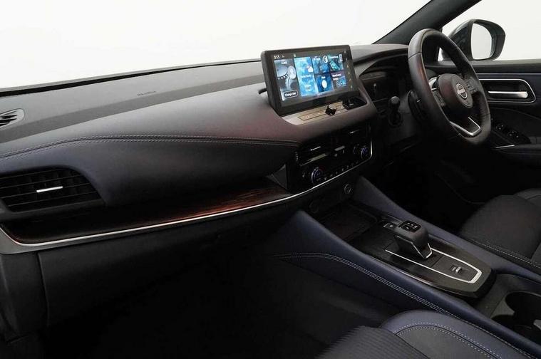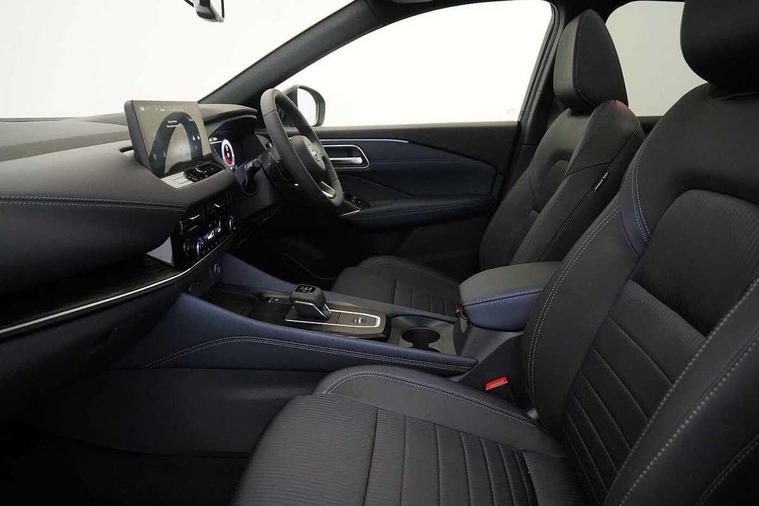 Advanced windscreen head up display, Android auto/Apple CarPlay (Wired), Blind spot warning, Drive modes (sport, normal, eco), Electric speed sensitive power steering, Emergency and breakdown call, Front and rear parking sensors, Full Digital 12.3" TFT Digital Combimeter, Google maps services - search, weather, 3D maps and Google street view, Hands free power tailgate, Idle stop/start system, Intelligent around view monitor, Intelligent Cruise control (ICC), Intelligent driver alert system, Intelligent forward collision warning, Intelligent lane intervention, Lane departure prevention, Lane departure warning system, Lane keep assist, Moving object detection, Nissan connect 12.3 inch touchscreen infotainment system, Nissan connect navigation, ProPilot, Push button starter, Rear cross traffic alert, Rear view camera, Remote control services - door locks, lights, horn and car locator, Telematics - notifications and connectivity services, TomTom live traffic services, Traffic jam pilot, Traffic sign recognition with legal speed adjustment, Trip computer, Virtual personal assistant and firmware over the air capability, Wireless apple carplay, Wireless charging pad, 6 speakers, AM/FM audio system with DAB, Bluetooth audio streaming, Front USB connections (Type-A and Type-C), Rear USB charging only ports (Type-A and Type-C), Auto dimming rear view mirror, Auto rear wiper when reversing, Automatic hazard signal with emergency stop signal, Body colour mirror caps, Body coloured door handles, Bodyside mouldings, Chrome side window finisher, Door handle with button, Electric auto folding door mirrors, Electrically adjustable and heated door mirrors with LED turn indicator, Follow me home headlights, Front and rear LED turning signals, Headlights auto levelling system, Intelligent auto headlights, LED daytime running lights, LED headlights with adaptive driving beam, LED rear lights, One touch front and rear electric windows with remote opening and closing, Partially body coloured bumpers, Privacy glass, Rear bumper with graphite insert, Rear reversing light (bulb lighting), Rear roof spoiler, Rear side wing doors, Rear styling plate, Shark fin antenna, Splash free rain sensing wipers, Super UV and infrared cut glass, Thermaclear heated windscreen, Three blink turn signal, 12v power socket in dashboard and luggage, 2x Rear coat hooks, 3 bench rear seats in 2nd row, 3 rear headrests, 4 folding assist grip, 6 Luggage hooks - 4 on floor, 2 on side, 60/40 split folding rear seat bench, Ambient lighting around centre console, Ambient lighting in front doors, Centre console storage tray, Chrome interior door handles, Cloth/syntech leather monoform upholstery, Dark black/blueish PVC wrapping, Dark headlining, Driver and front passenger sunvisors with illuminated vanity mirrors, Driver seat back pocket, Dual zone automatic climate control with pollen filter, Electrically adjustable driver seat, Electrically adjustable lumbar support for driver, Front and rear door storage, Front centre console and armrest, Front cupholders x 2, Front door with bottle holders, Glovebox with light, Hard trunk cover, Heated front seats, Heated steering wheel, Height adjustable driver's seat, Height adjustable front headrests, Height adjustable passenger seat, Leather steering wheel, Luggage board system, Luggage space lighting, Manual lumbar support on passenger seat, Manually adjustable passenger (slide recline + lifter), Multifunction steering wheel, Passenger seat back pocket, Rear armrest with 2 cupholders, Rear door bottle holders, Single front passenger seat, Soft PVC kneepad, Steering wheel gearshift paddles, Steering wheel switches, Tilt/telescopic adjustable steering wheel, Two rear isofix child seat anchorage points with top tether, Welcome light and doors with console tray ambient lighting, Glass roof pack with roof rails - Qashqai, 3x3 point rear seatbelt pretensioners + load limiters, ABS with EBD and brake assist, Active brake limited slip, Auto hold function, Child locks on rear doors, Curtain and front side, far side airbags, Driver and passenger airbags, Driver, passenger and 2nd row rear seat belt reminder, Electronic parking brake, Front seatbelt pretensioners + load limiters, Height adjustable front seatbelts, Hill start assist, Intelligent blind spot intervention, Intelligent front emergency braking with pedestrian, cyclist recognition and junction assist, Intelligent rear automatic braking, Tyre pressure monitoring system, Vehicle dynamic control, Capless fuel filler, Engine immobiliser, Intelligent Key, Remote central door locking with deadlocking, Thatcham Cat.1 alarm, Interior instrumental panel C finisher, 19" Alloy wheels, Tyre puncture repair kit,