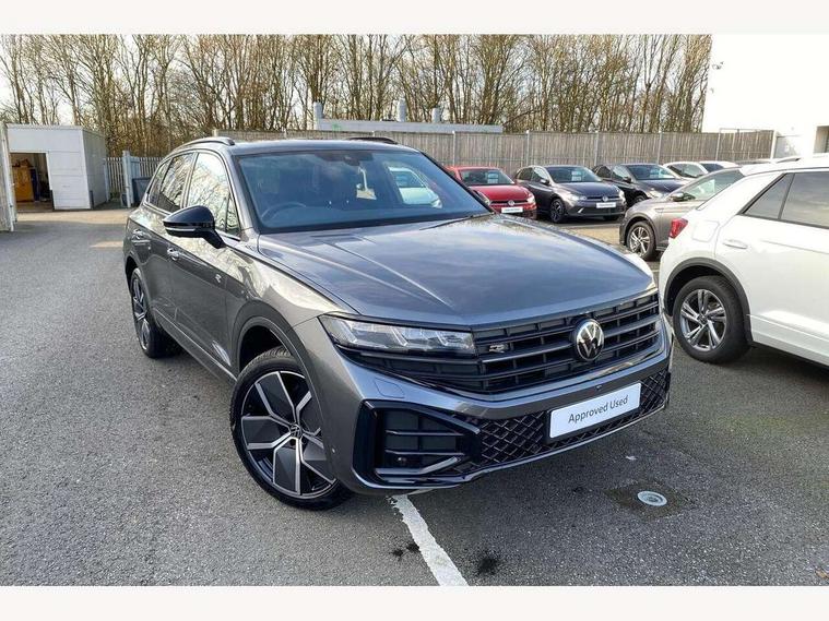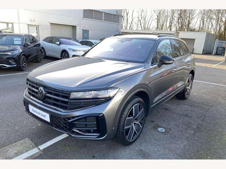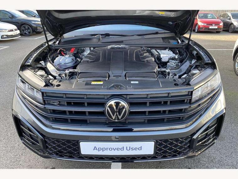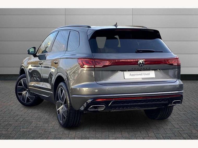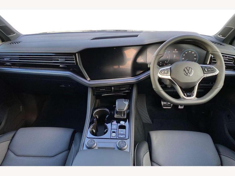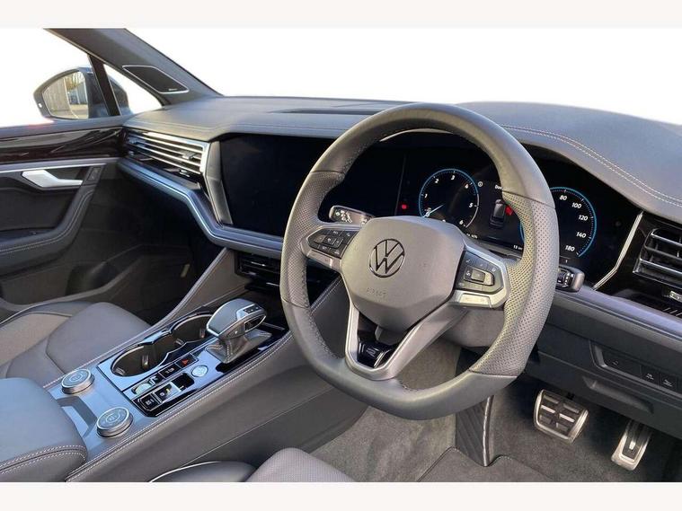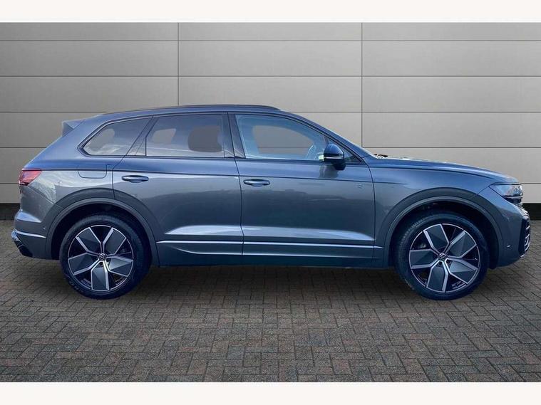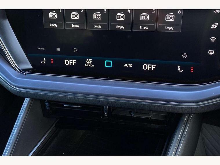 15" Screen Top infotainment system Premium (MIB3), Adaptive cruise control, Advanced driver attention and drowsiness monitor, Driver profile selection, Dynamic road sign display, E-Sim card for online connectivity, eCall emergency system, Innovision cockpit, Intelligent park assist, Mobile phone interface with inductive charging, Multi-colour Active Info display, Park Assist - Sensor controlled steering aid to assist parallel or bay parking, PAS, Warning signal and warning light for front and rear seatbelts not fastened, Wireless app connect, Adaptive chassis control, DAB Digital radio, Diversity antenna for AM/ FM reception, We Connect and We Connect Plus functionality, Automatic coming/leaving home lighting function, Automatic headlights, Black door mirrors, Black style comfort bumpers, Dynamic headlight range control with dynamic cornering light, Electric front tilt/slide panoramic sunroof and fixed rear sunroof, Electrically power adjustable, heated, folding, auto dimming, front passenger exterior door mirror lowering function, External USB type C socket and charging sockets, Gloss black roof rails, HD LED Matrix beam plus digital headlight projection with variable light distribution, Headlight washers, Heat insulating darkened glass in side and rear windows, Highway light, LED 3rd brake light, LED daytime running lights, LED rear combination lamp with variable lighting functions and special styling, Poor weather light, Privacy glass for rear side windows and rear window, tinted glass from B pillar backwards - 80%, Rain sensor, Rear exhaust tailpipe, Rear fog light with back up light on both sides, Rear light bar and illuminated logo, Rear side wing doors, Rear wiper, Stainless steel door sill protection, 12V socket in centre console, 3 rear headrests, 3 seat bench in 2nd row, 4 zone climate control, Airbag label on sun visor and B-pillar, Brushed stainless steel pedals, Double sun visors with illuminated vanity mirrors, Front + rear carpet mats, Front centre armrest, Leather wrapped multifunction sports steering wheel, heated, with touch control and shift paddles, Mechanical rear seat release, Power adjustable lumbar support in front, Power seats in front, right side with memory features and seat cushion depth adjustment, Rear seat backrest and split folding with center armrest, Single front passenger seat, Extra acoustics pack - Touareg, Memory pack plus - Touareg, 3 point seatbelts, outer rear with ECE lable, ABS, Child locks on rear doors, Curtain airbags, Driver and front passenger safety-optimised head restraints, Driver/Front Passenger airbags, Extended pedestrian protection measures, Front assist, Front seat side impact airbags, Generative braking with start and stop system, Height adjustable 3 point front seatbelts with pre tensioners, Passenger airbag deactivate switch, Three 3 point rear seatbelts, Two tone horn, Warning triangle and first aid kit, Alarm system with interior protection, Easy open and close sensor controlled luggage compartment opening and closing with remote unlocking, Keyless Access Keyless locking and starting system with SAFELOCK, Aluminium decorative inserts, Black decorative trims, Gloss black decorative inserts in centre console, Tool kit,