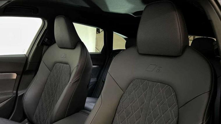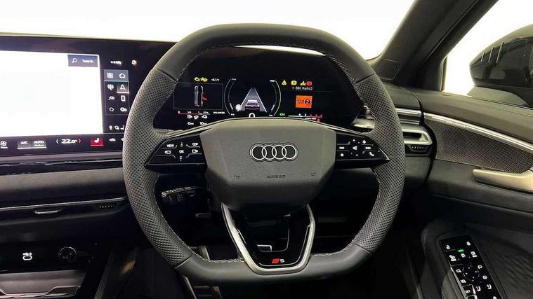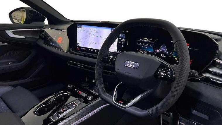 Adaptive cruise assist plus with steering intervention, Attention and drowsiness detection with driver observation, Audi application store, Audi assistant, Audi connect emergency call and service, Audi drive select, Audi virtual cockpit plus with 11.9" OLED colour display, Automatic start/stop system with coasting functionality, Camera based traffic sign recognition, Convenience key, Intersection assist, Lane change assistant with exit warning system, rear cross traffic alert and rear turn assist, Lane departure warning with emergency assist, MMI 10.9" front passenger touch display, MMI navigation plus with high resolution 14.5" OLED touchscreen colour display, Park assist plus, Parking system plus with 360 display, Progressive steering with servotronic, Side assist and exit warning, rear cross-traffic assist and rear turn assist, Smartphone interface, Swerve assist and turn assist, Top view camera, Traffic sign based speed limiter, Household plug type G, Hybrid propulsion system, Industrial connector CEE 32A, 230V, long and straight for the e-tron charging system, Mode 3 type 2 AC charging cable 22kW, Sports suspension lowered by 20mm, Audi sound system impressive sound with 8 loudspeakers including centre speaker and subwoofer, 6-channel amplifier with a total output of 180 watts, DAB digital radio reception, Smartphone compartment with wireless charging, Aluminium window trims, Auto dimming rear view mirror, Black door handles, Black roof rails, Dark chrome-plated tailpipe trims, Door mirrors - electrically adjustable, heated, folding and auto dimming on both sides, Front and rear electric windows, Front door sill trims with aluminium inlays, illuminated with 'S' logo, Headlight cleaning system, High beam assist, LED daytime running lights, LED rear lights pro incl. dynamic rear indicators and illuminated light strip with animated coming and leaving home function, LED third brake light, Matrix LED headlights with eight light signatures selectable via the MMI or the myAudi app, Privacy glass, Rear and side windows with heat insulating glass, Rear side wing doors, Rear wash/wipe, S Line badges on the front wings, S line bumpers, radiator grille and diffuser in phantom black and diffuser insert in matt anthracite, White rhombus logo projection light in exterior mirrors, Windscreen with acoustic glazing, 3 rear headrests, 3 seat rear bench, 3 spoke leather steering wheel with multi-function buttons with touch control, flattened on top and bottom, with S badging and contrast stitching, 3-zone automatic climate control, 40:20:40 split folding rear seat bench with centre armrest and cup holders, Auxiliary air conditioning, Comfort front centre armrest, Electrically adjustable front seats, Front and rear floor mats, Front sport seats with integrated headrest and S embossed logo, Headlining in black cloth, Heated front seats, i-Size child seat mounting on the front passenger side and outer rear seats, i-Size and top tether on the outer rear seats, Increased charging capacity for USB ports 2X100 Watts in rear, 2X60 Watts in front, Luggage compartment lid, electrically opening and closing, Manual steering column height and depth adjustment, Memory function for driver seat, Single front passenger seat, Stainless steel pedals and footrest, Steering wheel grips in perforated leather and shift paddles, Ambient lighting package plus - A5, Black styling pack plus - A5, 3x3 point rear seat belts, Acoustic vehicle alerting system, Driver airbag, Electric child safety locks, First aid kit with warning triangle and vests, Front emergency brake assist, Front passenger airbag, Front passenger airbag deactivation, Hill hold assist, Proactive passenger protection system for front, sides and rear, Red brake calipers, Seat belt monitoring with rear seat occupant reminder, Side airbags in front and rear with head airbag system and front interaction airbag, Tyre pressure loss indicator, Anti theft alarm, Anti-theft wheel bolts, Digital key, Keyless Go, Accent surfaces and control buttons in gloss black, Black dashboard with contrast stitching, Softwrap in Dinamica with contrast stitching, Upper and lower interior elements in dinamica microfiber, 20" 5 arm fold design Audi sport alloy wheels in silk matt grey and gloss turned finish, Tyre repair kit,