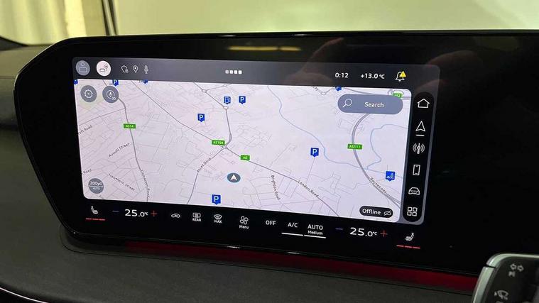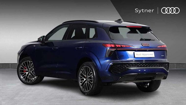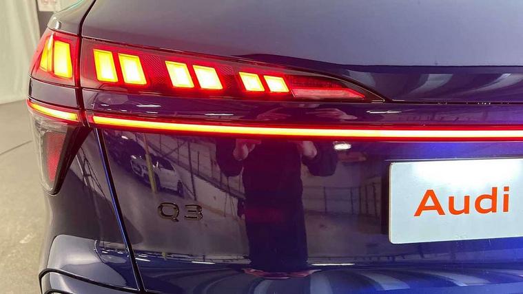 Adaptive cruise control, Audi connect emergency call and service, Audi connect remote and controls, Audi drive select (Balanced/individual, efficiency, comfort, dynamic and Offroad+), Audi virtual cockpit plus - 11.9" display, Bluetooth interface, Camera based traffic sign recognition, Driver attention and fatigue monitor with driver monitoring, Emergency assist, Front cross traffic assist, Panoramic curved display with 12.8" MMI navigation plus and MMI touch, Park assist plus with parking system and 360 display, Phonebox light with wireless charging, Projection of a black ice warning, Reversing camera, Smartphone interface includes wireless Apple carplay/Android Auto, Start/stop system, Swerve assist and turn assist, Traffic sign based speed limiter, Voice control system with natural language interaction, Petrol Particulate Filter, 2 USB-C ports with charge and data functions, Audi sound system with 10 loudspeakers, subwoofer, 8 channel amplifier with 260 watts, DAB digital radio module, Acoustic glass for front door windows, Acoustic windscreen, Advanced dynamic light scenario of the coming home/leaving home function, Aluminium window trim, Audi Q3 lettering on the B-pillars, Auto dimming door mirrors, Auto dimming rear view mirror, Automatic dynamic headlight range control, Contrasting finish in volcano grey, Cornering light, Digital daytime running lights with a choice of 4 digital light signatures, Digital matrix LED headlights, Dipped beam, Dynamic indicators, Electrically folding, adjustable and heated door mirrors with integrated LED side indicators and kerb view function for passenger side, Full paint finish, High resolution main beam, Illuminated door sills with aluminium inserts at the front with S logo, Intersection light, Lane light with side assist and direction indicator, LED third brake light, Loading sill protector in stainless steel, Manoeuvring light, Motorway light, Orientation light with lane departure warning, Position light, Privacy glass - dark tinted rear window, rear door and side windows, Projection light in the exterior mirrors - Projects a graphic element onto the ground, Q3 badging on the rear, Rain and light sensors, Rear side wing doors, Rear window, rear door windows and rear side windows in clear glass, Rear wiper, Sports bumpers, Turning light, 3 seat bench in 2nd row, 3 spoke heated flat top and bottomed leather multi function sport steering wheel with gear shift paddles and "S" badging, 3-zone deluxe automatic air conditioning, 4 way lumbar support for the front seats - electric with horizontal and vertical adjustment in four directions, Black cloth headlining, Front and rear floor mats, Front and rear headrests, Front centre armrest, Heated front seats, Height and reach adjustable steering wheel, Interior storage compartment, Luggage compartment lid, electrically opening and closing, Manual front seats with height adjustment, Rear seat bench plus with split folded 40:20:40, Single front passenger seat, Stainless steel pedals, Steering wheel operating unit, gloss black, Storage compartment in front centre console, Ambient lighting package pro - Q3, Black styling pack with black door mirrors - Q3, Driver assist pack - Q3, Dynamic pack - Q3, 3x3 point rear seatbelts, Convenience key with safelock, Driver and front passenger airbag with passenger airbag deactivation, Electromechanical parking brake, Electronic stabilisation control including ABS, ASR and EDL, First aid kit with warning triangle and high visibility vests, Front emergency brake assist, Hill hold assist, i - Size child seat mounting on the front passenger side and i - Size and top tether on the outer rear seats, Power operated child locks, Seatbelt monitoring, Tyre pressure loss indicator, Anti theft wheel bolts, Remote central locking, Thatcham approved category 1 anti theft alarm, Anthracite american whitewood natural inlay, Interior elements in dinamica microfibre, Interior trims in aluminium look, Tool kit and Jack,