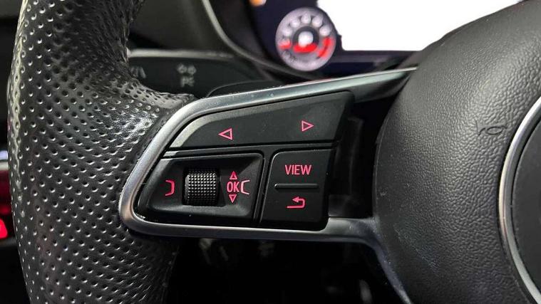 Audi drive select, Audi virtual cockpit - 12.3" high-resolution LCD display with fully customisable instrument cluster, Cruise control + speed limiter, MMI touch panel, Mobile phone preparation with bluetooth interface, Progressive power assisted steering, Service interval indicator, Audi music interface, Auxiliary input socket, Bang + Olufsen advanced sound system, Bluetooth audio streaming, DAB Digital radio, MMI Radio with CD player and SD/XC card slot, Auto headlight range control, Black door mirrors, Body colour bumpers, Electric front windows, Green tinted heat insulating glass, Headlight wash system, High gloss black front grille, LED daytime running lights, LED rear lights, Matt black radiator grille and number plate holder, Privacy glass, Rear diffuser, Retractable rear boot spoiler, S Line body styling, 3 spoke leather multi-function sport steering wheel including paddle shift, Aluminium door sill trims, Black headlining, Electric lumbar support, Extended aluminium look with stainless steel pedals, Front centre armrest, Front head restraints, Front passenger seat isofix location point, Height/reach adjust steering wheel, ISOFIX on outer rear seats, Split folding rear seat, Top tether anchor plate for isofix child seat, 3 point front seat belts, ABS, ASR traction control, Curtain airbags, Driver/Front Passenger airbags, EDL traction control, Electromechanical parking brake, ESP, First aid kit, Front passenger airbag deactivation, Front side airbags, Head airbags, Seatbelt warning, Tyre pressure warning, Warning triangle, Anti theft alarm, Immobiliser, Keyless start, Locking wheel bolts, Remote central locking, Matt brushed aluminium inlays, Tyre repair kit,