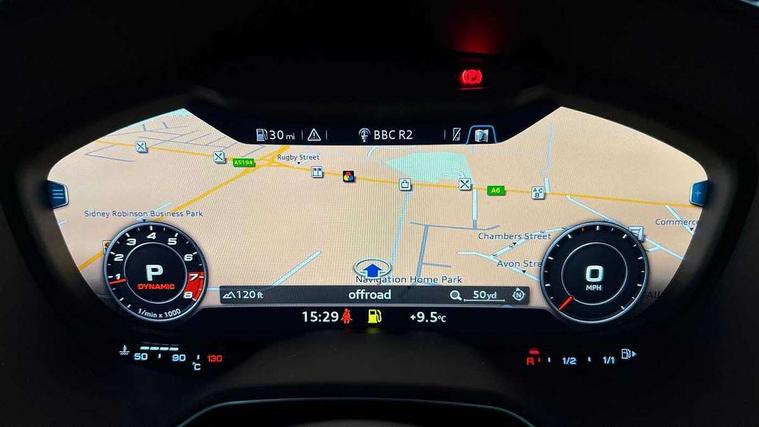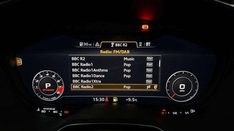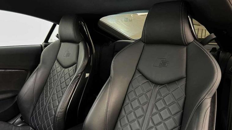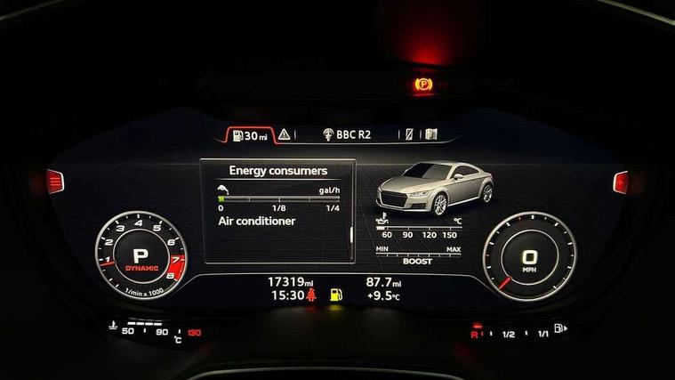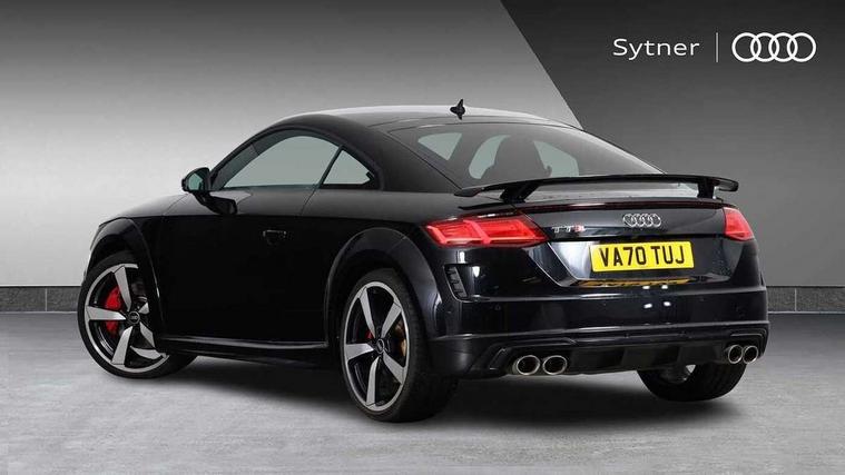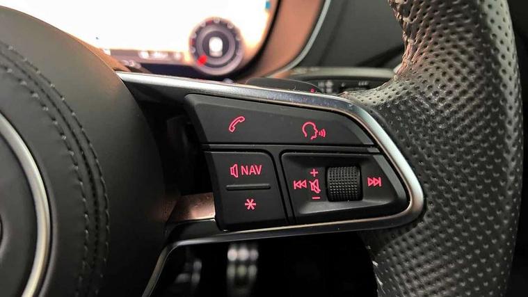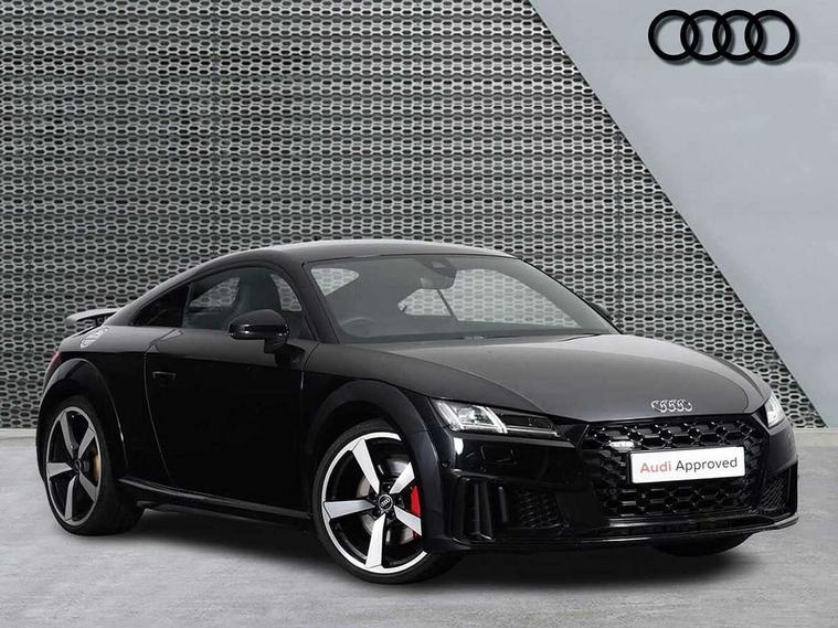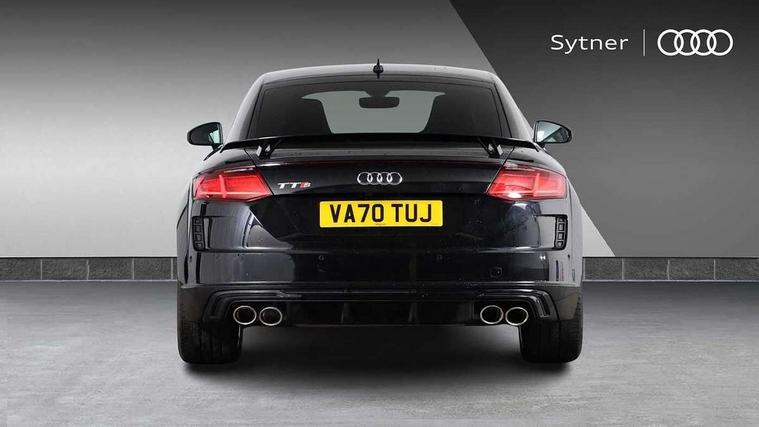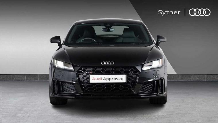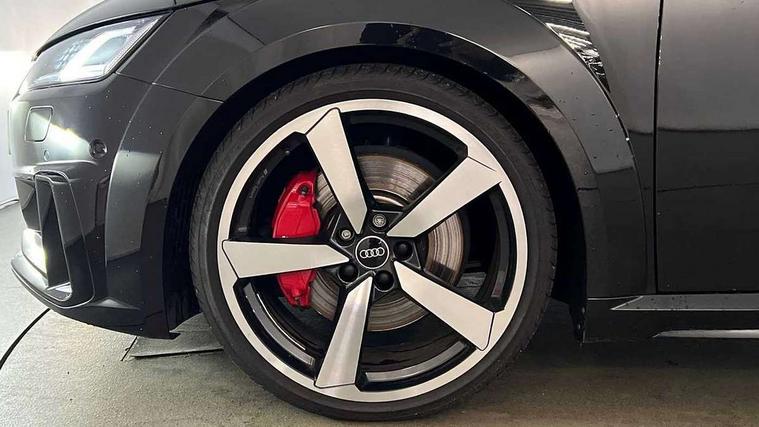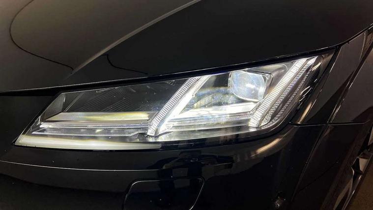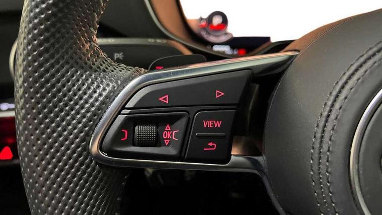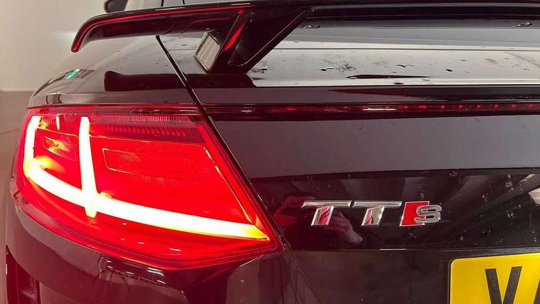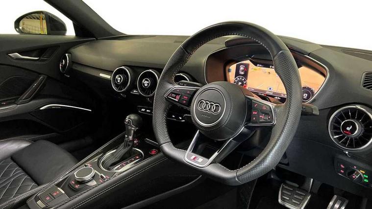 Audi drive select with 4 Pre configured modes, Audi side assist, Audi smartphone interface, Audi Virtual Cockpit with sport gauge, Camera based traffic sign recognition, Cruise control + speed limiter, MMI touch panel, Mobile phone preparation with bluetooth interface, Progressive power assisted steering, Service interval indicator, Start/Stop system with energy recuperation, TP memo, Audi magnetic ride, AM/FM radio, Bluetooth audio streaming, DAB Digital radio, MMI Radio with CD player and SD/XC card slot, Audi Beam uses LEDs to project the Audi Sport logo, Auto dimming rear view mirror, Black door mirrors, Dark privacy glass from B-pillar backwards, Electric front windows, Electrically adjustable, foldable and heated auto dimming on driver side and automatic kerb view dipping function on the passenger side, Green tinted heat insulating glass, High beam assist, Light and rain sensors, Matrix LED light+LED daytime running light, LED Indicator, Headlightclean, auto dynm headlight range+dynamic cornering light, Motorwaybeam/Manoeuvre light, Platinum grey rear diffuser, Sunband for windscreen, 12V socket, 3 spoke flat bottomed contour leather multi-function TTS sport steering wheel and TTS badging, 4 way electric lumbar support for driver and front passenger, Black headlining, Black roll bar, Deluxe auto air conditioning with integrated digital display, Door sill trims with aluminium inlay and TTS logo, Electrically adjustable front seats with pneumatic backrest side bolster adjustment, Fine Nappa leather upholstery with Super Sport seats + "S" embossing, Front centre armrest, Heated front seats, Height adjustable front head restraints, Height/reach adjust steering wheel, ISOFIX child seat mounting for front passenger seat with airbag deactivation, Perforated leather gearknob in black, Rear head restraints, Rear top tether child seat ISOFIX attachment, Split folding rear seat, Stainless steel pedals, Tool kit, Black styling pack - TT, Comfort and sound pack - TT with park assist, Driver assistance - TTS Vorsprung, Leather pack - TTS, LED interior light pack - TT/TT RS, Non smoking pack - TT/TT RS, Technology pack - TT with MMI Navigation, 3 point front seat belts, ABS, ASR traction control, Brake energy regeneration, Curtain airbags, Driver and front passenger airbag with front passenger airbag deactivation, EDL traction control, Electromechanical parking brake, ESP, First aid kit, Front side airbags, Head airbags, Hill hold assist, Seatbelt warning, Tyre pressure warning, Warning triangle, Anti theft alarm, Anti theft wheel bolts, Immobiliser, Keyless Go, Remote central locking, Carbon inlays, 20" 5 arm cutter style Audi sport in anthracite black diamond cut alloy wheels, Tyre repair kit,
