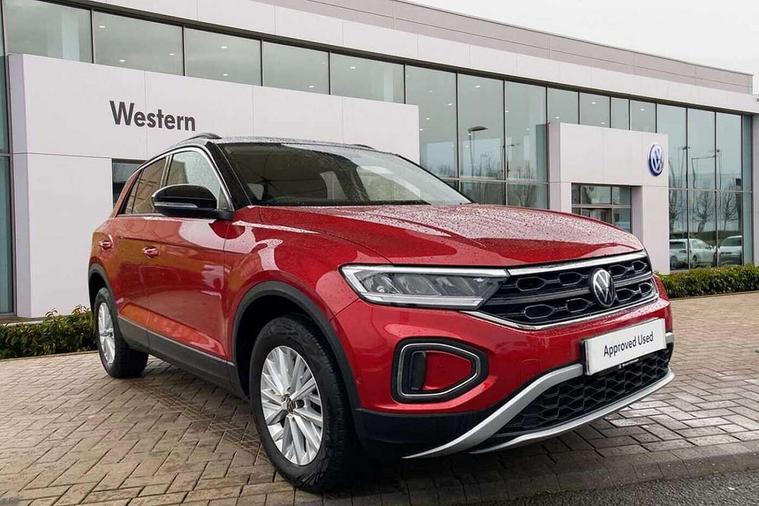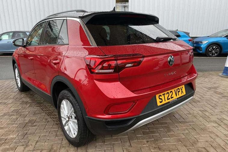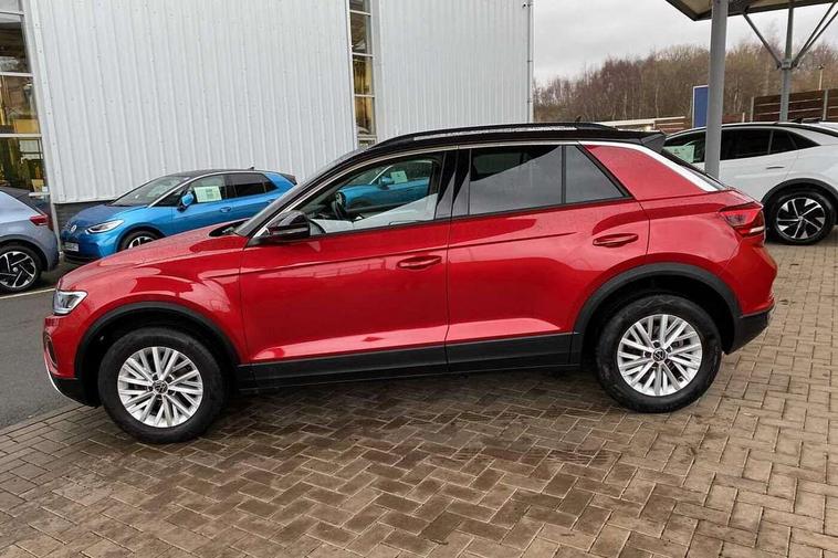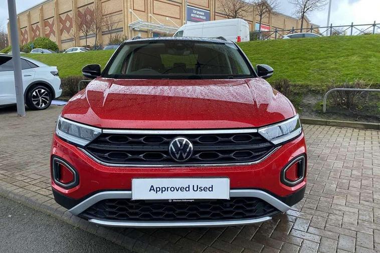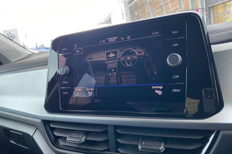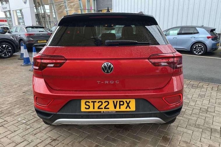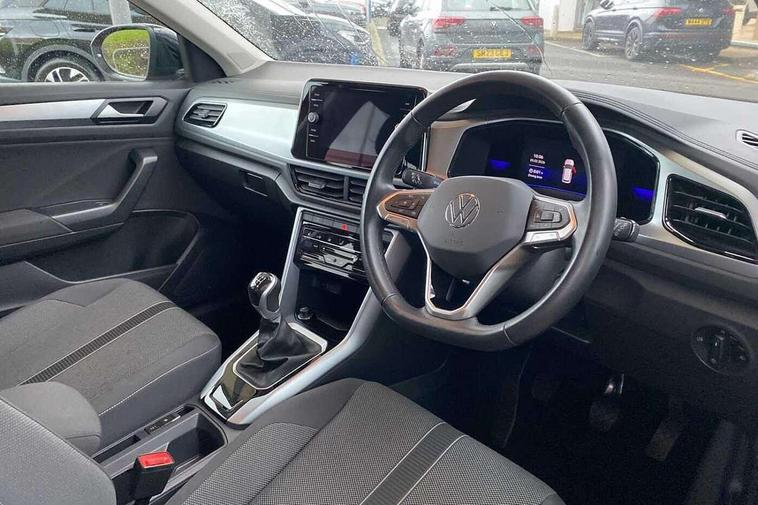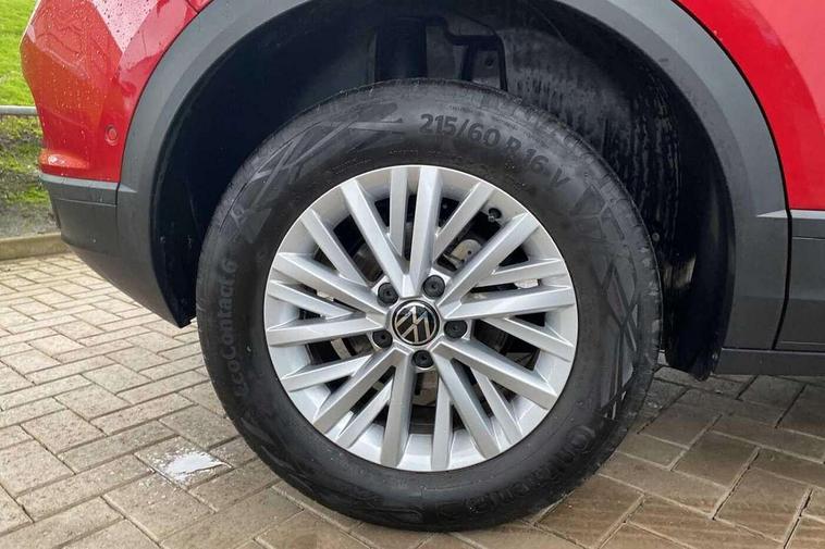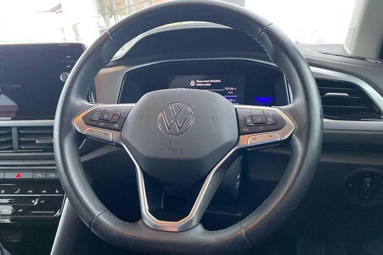 Bluetooth mobile phone interface, Driver alert system with fatigue detection, Driver tips and journey analysis, Emergency call service, Lane keeping system Lane Assist, Modified key software - reduce switch off time for key status change to Long no motion, Online services, Park assist including front and rear parking sensors, Power assisted speed sensitive steering, Service interval indicator, Tailgate/trunk lid release from outside, Think blue trainer driver tips and journey analysis, Warning sound and light for front seatbelts unfastened, Wireless app connect, Battery regeneration during braking, Front shock absorption, Rear shock absorption chassis with increased ride height, Start/stop function with battery regeneration, DAB Digital radio, Diversity antenna for FM reception, Front and rear 6 speakers, Music playback - MP3, WMA and AAC files, Premium USB cable in choice of either Apple or Android smartphone compatibility, SD card slot, Simultaneous pairing of 2 compatible mobile devices, Title and cover art display, We Connect and We Connect Plus functionality, 3rd brake light, Auto dimming interior rear view mirror, Automatic hazard lights activation under emergency braking, Automatic headlight control with LED separate daytime running lights with coming/leaving home function, Black roof rails, Body coloured bumpers and radiator grille with chrome trim and front fog lamps with chrome bezel, Body coloured exterior mirror housings and door handles, Extended roof spoiler, Exterior mirrors aspherical on driver side, convex on front passenger side, External USB type C socket and charging sockets, Front windscreen wiper with intermittent wipe and 4 position delay, Heated rear window, LED Headlights, LED rear combination lamps, LED rear number plate lights, LED tail lamp rear comination lamps, Power windows with comfort operation and circuit breaker, Rain sensor, Rear exhaust tailpipe, Rear fog light on one side and reversing lights on both sides, Rear side wing doors, Rear wash/wipe with intermittent wipe setting, Remote electrically foldable door mirrors, puddle lights and reverse activated passenger's door mirror, 12V power socket in centre console, 3 rear head restraints, 3 seat bench in 2nd row, 4 load lashing points in luggage compartment, Air care climatronic air conditoning system with active combination filter and 2-zone temperature control, Ambient lighting with mirror logo projection, Cloth upholstery, Door and side trim panel in cloth, Drawer under drivers seat, Driver/front passenger seat height adjustment, Front centre armrest, Front comfort sports seats, Front cupholders x 2, Front reading light, Instrument lighting, white adjustable panel illumination, Interior light delay, Isofix child seat preparation, Leather gearshift handle, Load-through provision with cup holder when folded down ('Unsplit rear seat bench, split folding backrest, with centre armrest), Luggage compartment lighting, Lumbar support for driver's and front passengers seat, Non-folding front passenger seat backrest, Single front passenger seat, Storage compartment in left and right luggage area, Storage compartment in rear doors, Storage compartments in driver and front passenger doors, Sunvisors with illuminated vanity mirrors, Variable boot floor, height adjustable and removable, Driver assistance pack without proactive passenger protection - T-Roc, 3 point height adj front seatbelts + pretensioners, 3 point seatbelts in outer rear with ECE label, ABS, Child locks on rear doors, Driver and front passenger airbag with front passenger airbag deactivation, Driver and front passenger safety-optimised head restraints, Drivers seatbelt reminder, Electronic parking brake, Electronic Stability Control (ESC) inc EDL (Electronic Differential Lock) and ASR (Traction Control), Front and rear passengers curtain airbag system including front side airbags, Front assist with city emergency braking and pedestrian monitoring, Front disc brakes, Front seat side impact airbags, Hill start assist, Predictive pedestrian protection, Rear disc brakes, Single tone horn, Tyre pressure loss indicator, Volkswagen roadside assistance, Alarm with interior protection, Anti-theft alarm system with interior monitoring, backup horn, and towing protection, Remote central locking with SAFELOCK, radio remote control with 2 remote control folding keys, Pewter matt decorative inserts for intrument panel, centre console and door panels at the front, Trims for alloy wheels,