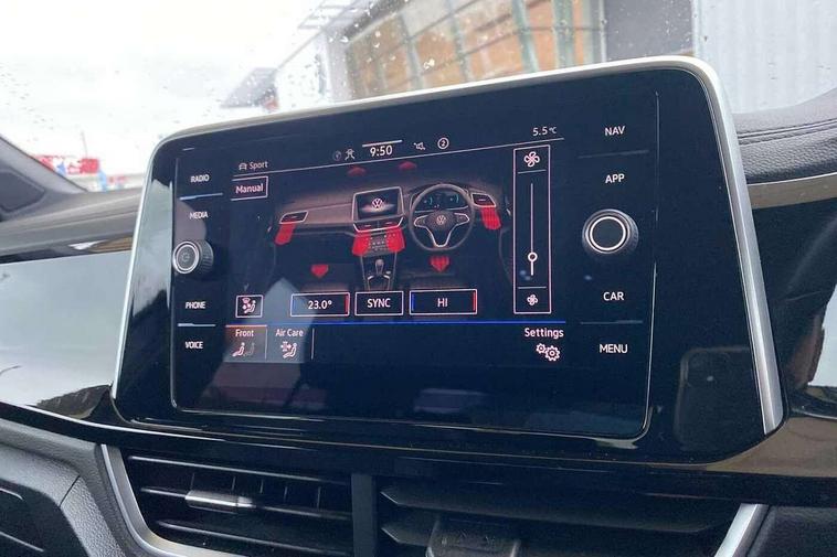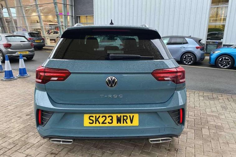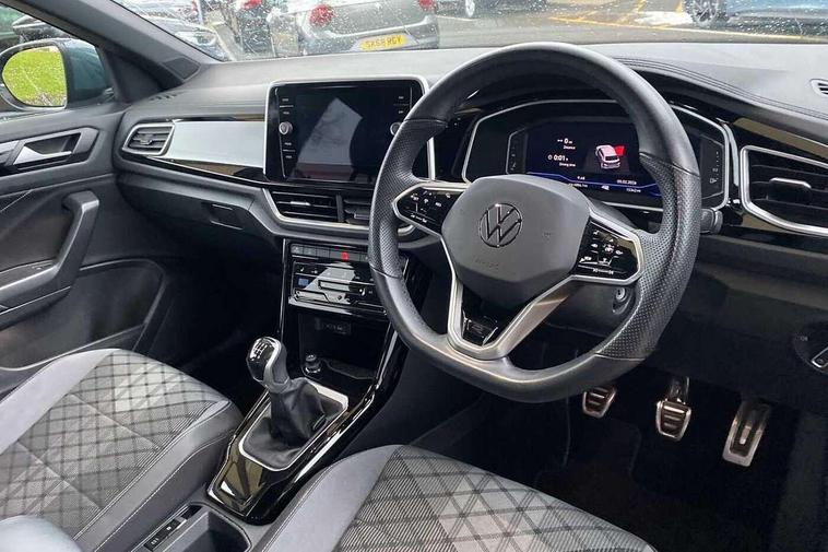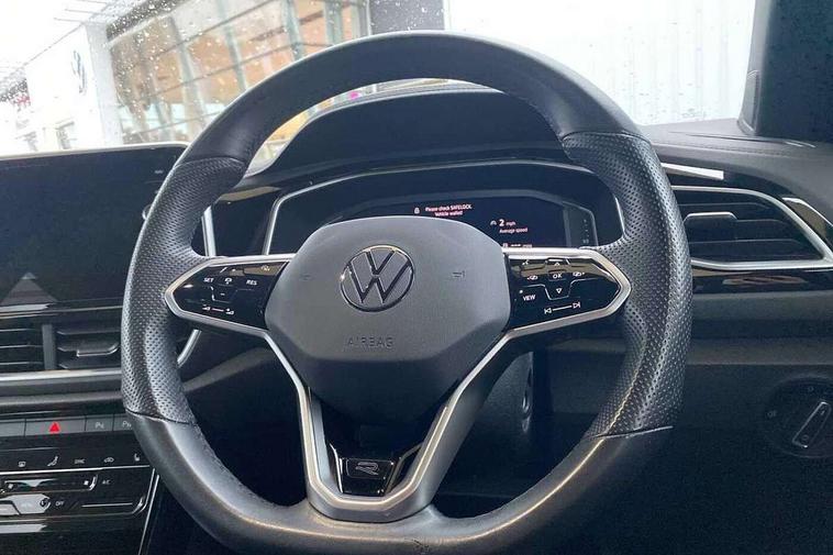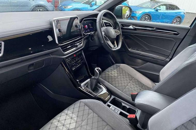 10.25" Digital cockpit pro, Bluetooth mobile phone interface, Driver alert system with fatigue detection, Driver tips and journey analysis, Emergency call service, Lane keeping system Lane Assist, Modified key software - reduce switch off time for key status change to Long no motion, Online services, Park assist including front and rear parking sensors, Service interval indicator, Tailgate/trunk lid release from outside, Think blue trainer driver tips and journey analysis, Warning sound and light for front seatbelts unfastened, Wireless app connect, Battery regeneration during braking, Start/stop function with battery regeneration, Diversity antenna for FM reception, Front and rear 6 speakers, Music playback - MP3, WMA and AAC files, Premium USB cable in choice of either Apple or Android smartphone compatibility, SD card slot, Simultaneous pairing of 2 compatible mobile devices, Title and cover art display, We Connect and We Connect Plus functionality, 3rd brake light, Auto dimming interior rear view mirror, Automatic hazard lights activation under emergency braking, Automatic headlight control with LED separate daytime running lights with coming/leaving home function, Extended roof spoiler, Exterior mirrors aspherical on driver side, convex on front passenger side, External USB type C socket and charging sockets, Front windscreen wiper with intermittent wipe and 4 position delay, Heated rear window, LED Plus headlamps, LED rear combination lamps, LED rear number plate lights, LED tail lamp rear comination lamps, Power windows with comfort operation and circuit breaker, R-Line design body coloured bumpers, Rain sensor, Rear exhaust tailpipe, Rear fog light on one side and reversing lights on both sides, Rear side wing doors, Rear wash/wipe with intermittent wipe setting, Remote electrically foldable door mirrors, puddle lights and reverse activated passenger's door mirror, 12V power socket in centre console, 3 rear head restraints, 3 seat bench in 2nd row, 4 load lashing points in luggage compartment, Air care climatronic air conditoning system with active combination filter and 2-zone temperature control, Black roof lining, Chrome plated radiator grille inserts, air vent surrounds and light switch surrounds, Door and side trim panel with leatherette insert, Drawer under drivers seat, Front + rear carpet mats, Front centre armrest, Front cupholders x 2, Front footwell illumination, Front reading light, Front scuff plates with R logo, Instrument lighting, white adjustable panel illumination, Interior ambient lighting and surround lighting, Interior light delay, Isofix child seat preparation, Leather gearshift handle, Load-through provision with cup holder when folded down ('Unsplit rear seat bench, split folding backrest, with centre armrest), Luggage compartment lighting, Single front passenger seat, Stainless steel pedals, Storage compartment in left and right luggage area, Storage compartment in rear doors, Storage compartments in driver and front passenger doors, Sunvisors with illuminated vanity mirrors, Variable boot floor, height adjustable and removable, Driver assistance pack without proactive passenger protection - T-Roc, 3 point height adj front seatbelts + pretensioners, 3 point seatbelts in outer rear with ECE label, ABS, Child locks on rear doors, Driver and front passenger airbag with front passenger airbag deactivation, Driver and front passenger safety-optimised head restraints, Drivers seatbelt reminder, Electronic parking brake, Electronic Stability Control (ESC) inc EDL (Electronic Differential Lock) and ASR (Traction Control), Front and rear passengers curtain airbag system including front side airbags, Front assist with city emergency braking and pedestrian monitoring, Front seat side impact airbags, Hill start assist, Predictive pedestrian protection, Rear disc brakes, Single tone horn, Tyre pressure loss indicator, Volkswagen roadside assistance, Alarm with interior protection, Anti-theft alarm system with interior monitoring, backup horn, and towing protection, Remote central locking with SAFELOCK, radio remote control with 2 remote control folding keys, Trims for alloy wheels,