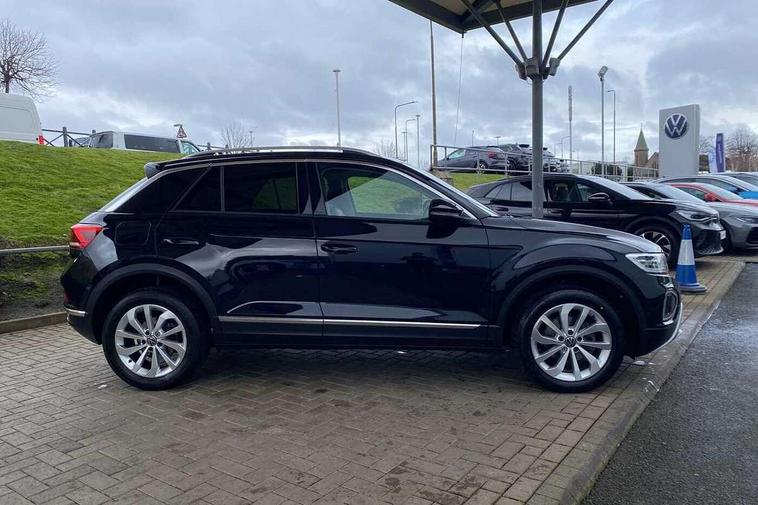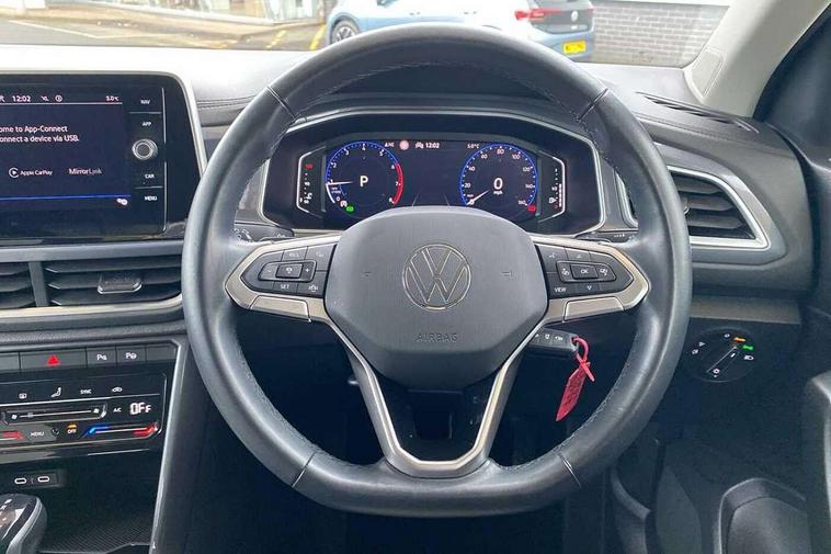 10.25" Digital cockpit pro, Bluetooth mobile phone interface, Driver alert system with fatigue detection, Driver tips and journey analysis, Emergency call service, Lane keeping system Lane Assist, Modified key software - reduce switch off time for key status change to Long no motion, Online services, Park assist including front and rear parking sensors, Service interval indicator, Tailgate/trunk lid release from outside, Think blue trainer driver tips and journey analysis, Warning sound and light for front seatbelts unfastened, Wireless app connect, Battery regeneration during braking, Start/stop function with battery regeneration, Diversity antenna for FM reception, Music playback - MP3, WMA and AAC files, Premium USB cable in choice of either Apple or Android smartphone compatibility, SD card slot, Simultaneous pairing of 2 compatible mobile devices, Title and cover art display, We Connect and We Connect Plus functionality, 3rd brake light, Auto dimming interior rear view mirror, Automatic hazard lights activation under emergency braking, Automatic headlight control with LED separate daytime running lights with coming/leaving home function, Body colour sports bumpers with silver metallic underbody fascia, Dynamic headlight range control with self adjusting whilst driving, Extended roof spoiler, Exterior mirrors aspherical on driver side, convex on front passenger side, External USB type C socket and charging sockets, Front windscreen wiper with intermittent wipe and 4 position delay, Heated rear window, LED rear combination lamps, LED rear number plate lights, LED tail lamp rear comination lamps, Light mode for poor weather, rain, fog or snow, Power windows with comfort operation and circuit breaker, Rain sensor, Rear exhaust tailpipe, Rear fog light on one side and reversing lights on both sides, Rear side wing doors, Rear wash/wipe with intermittent wipe setting, Remote electrically foldable door mirrors, puddle lights and reverse activated passenger's door mirror, 12V power socket in centre console, 3 rear head restraints, 3 seat bench in 2nd row, 4 load lashing points in luggage compartment, Air care climatronic air conditoning system with active combination filter and 2-zone temperature control, Chrome plated radiator grille inserts, air vent surrounds and light switch surrounds, Door and side trim panel with leatherette insert, Drawer under drivers seat, Front + rear carpet mats, Front centre armrest, Front comfort sports seats, Front cupholders x 2, Front footwell illumination, Instrument lighting, white adjustable panel illumination, Interior ambient lighting and surround lighting, Interior light delay, Isofix child seat preparation, Leather gearshift handle, LED interior light with switch off delay/dimmer and 2 front/rear LED reading lights, Load-through provision with cup holder when folded down ('Unsplit rear seat bench, split folding backrest, with centre armrest), Luggage compartment lighting, Non-folding front passenger seat backrest, Single front passenger seat, Storage compartment in left and right luggage area, Storage compartment in rear doors, Storage compartments in driver and front passenger doors, Sunvisors with illuminated vanity mirrors, Variable boot floor, height adjustable and removable, Driver assistance pack without proactive passenger protection - T-Roc, 3 point height adj front seatbelts + pretensioners, 3 point seatbelts in outer rear with ECE label, ABS, Child locks on rear doors, Driver and front passenger airbag with front passenger airbag deactivation, Driver and front passenger safety-optimised head restraints, Drivers seatbelt reminder, Electronic parking brake, Electronic Stability Control (ESC) inc EDL (Electronic Differential Lock) and ASR (Traction Control), Front and rear passengers curtain airbag system including front side airbags, Front assist with city emergency braking and pedestrian monitoring, Front seat side impact airbags, Predictive pedestrian protection, Rear disc brakes, Single tone horn, Tyre pressure loss indicator, Volkswagen roadside assistance, Anti-theft alarm system with interior monitoring, backup horn, and towing protection, Remote central locking with SAFELOCK, radio remote control with 2 remote control folding keys, Trims for alloy wheels,