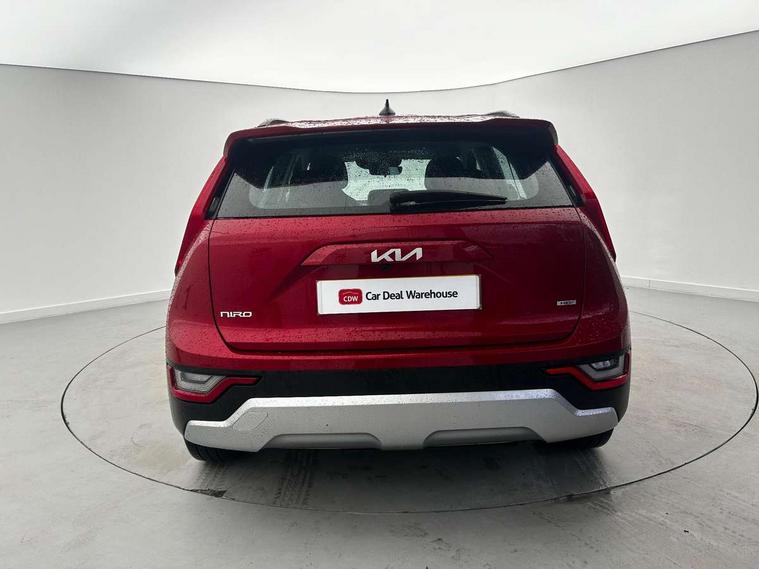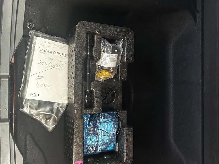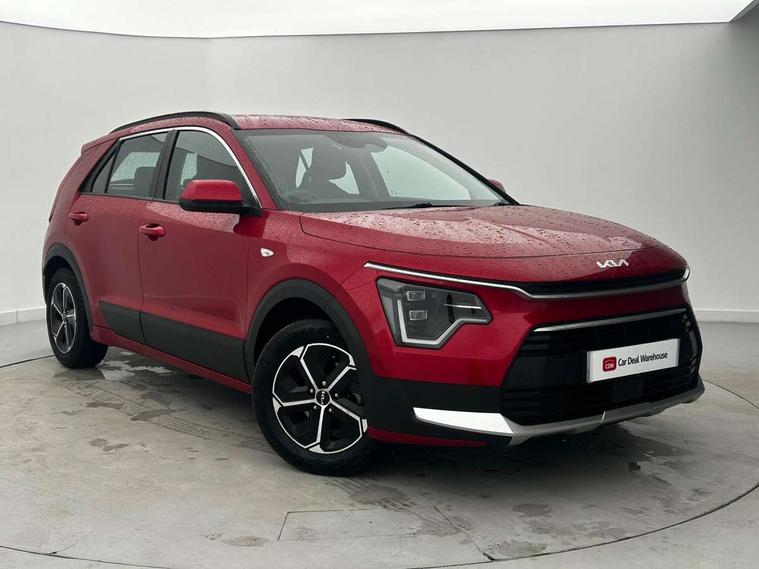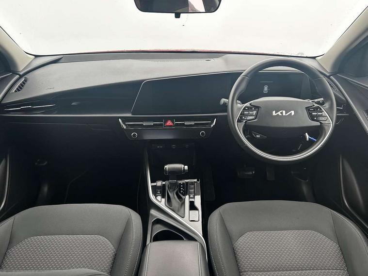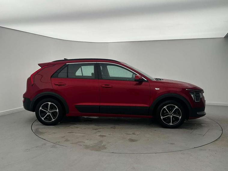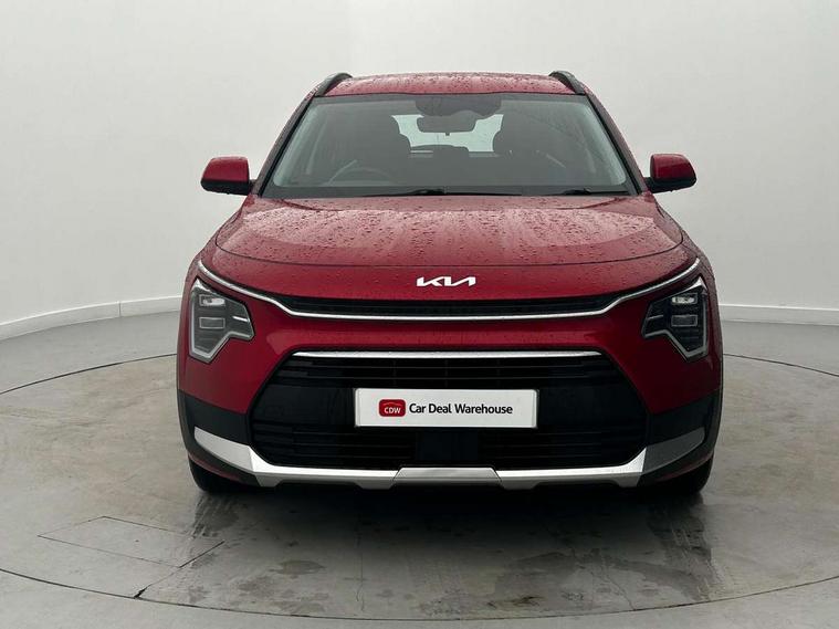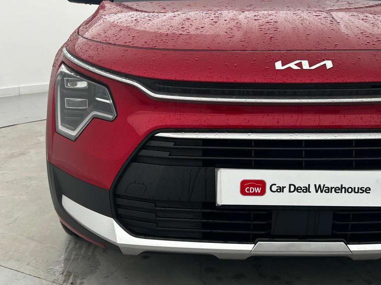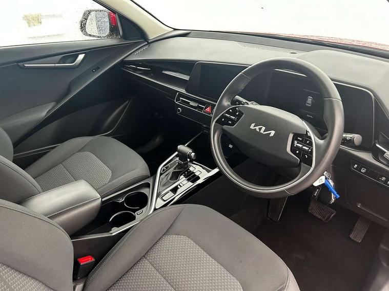 4.2" supervision colour cluster display, 8" touch screen, Adaptive smart cruise control function (SCC) with stop and go, Apple car play/Android Auto with voice control, Drive mode select (Eco, sport), E-call, Emergency stop signalling system, Forward Collision-Avoidance Assist (FCA) 1.5 - City/Pedestrian/Cyclist/Junction turning, Lane Following Assist (LFA), Lane keep assist, Motor driven power steering, Rear parking sensors, Reversing camera with dynamic guide lines, Speed limit assist, Tailgate, Trip computer with distance/fuel consumption/average speed, Sports H-Matic Automatic, 'Shark fin' mobile antenna, 2 type C USB ports on front seats, 2 USB ports in centre console including 1 type C, 6 speakers, Bluetooth with music streaming, DAB Digital radio, Steering wheel mounted controls, Acoustic windshield, All round electric windows with drivers auto up/down function, Auto dimming rear view mirror, Automatic defog system, Automatic headlight control system, Black beltline mouldings, Black embossed cladding, Body colour bumpers, Body colour door mirrors, Body colour exterior door handles, Dual LED headlights (low and high projection), Electric heated door mirrors, Front and rear silver skid plates, Heated rear window with timer, LED daytime running lights, LED rear combination lights, LED third brake light, Manual folding door mirrors, Rain sensor, Rear fog lights, Rear side wing doors, Rear spoiler, Rear wiper, Roof rails, Solar glass rear windows and tailgate, Solar glass windscreen, Welcome and follow-me home light functionality, Windscreen Washer Level Warning, 12V socket in front, 12V socket in luggage compartment, 3 seat bench in 2nd row, 60/40 split/folding 2nd row of seats, All-round height adjustable headrests, Artificial leather centre console storage box, Artificial leather steering wheel, Bulb type overhead console lamp with sunglasses case, Centre console cupholder, Cloth upholstery, Driver seat manual adjustment, Driver/passenger sunvisors with illuminated vanity mirrors, Dual zone automatic air conditioning, Front and rear door storage, H-Matic gear selection, Illuminated glovebox, Interior door lock/unlock function, ISOFIX Child seat top tethers and anchor fixings, Luggage area lamp, Luggage area load cover, Luggage board, Metal paint interior door handles, Passenger seat height adjuster, Rear armrest, Seatback pocket - driver, Single front passenger seat, Tilt/telescopic adjustable steering wheel, Towing pack - Niro, 3 point seatbelts on all seats, ABS, Automatic unlocking of doors in case of impact, Centre side front airbags, Curtain and side airbags, Drivers knee airbag, Dual shell horn, Electric parking brake with auto hold function, Electronic stability control, Front passenger airbag deactivation, Height adjustable front seatbelts, Hill start assist control (HAC), Manual rear child locks, Rear seat alert system, Traction control, Tyre pressure monitoring system, Alarm system and engine immobiliser, Deadlocks, Locking wheel nuts, Remote central door locking with fold away key, Visible vehicle identification number, Warranty - 7 Years/ 100, 000 miles, Graphite paint centre fascia, 16" alloy wheels, Tyre mobility kit,