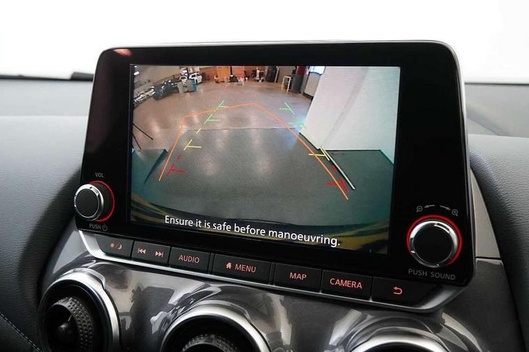 7" full colour TFT screen combimeter, 8" infotainment colour display with touch screen, Apple CarPlay and Google Android auto, Drive modes select (Eco, normal and sport), Emergency and breakdown call, Front parking sensor, Idle start/stop system, Intelligent lane intervention, Lane departure warning system, Nissan connect nav with TomTom traffic, Nissan connect services and Wifi connection, Outside temperature sensor, Power Steering, Rear parking sensor, Traffic sign recognition, Trip computer, Gasoline particulate filter, 6 speakers, Bluetooth system, USB, Aux-in and 12V socket, DAB Digital radio, Rear console USB port, Auto dimming interior rear view mirror, Automatic hazard signal with emergency stop signal, Body colour bumpers, Body colour door handles, Electrically adjustable door mirrors with integrated indicators, Follow me home headlights, Front and rear electric window with one touch driver window, Heated and auto folding door mirrors, High beam assist, LED daytime running lights, LED headlamps, LED rear fog lamp, LED rear lamps, Rain sensor windscreen wipers, Rear privacy glass, Rear wiper, Three blink turn signal, 3 height adjustable rear headrests, 60/40 split folding rear seat, Automatic climate control, Card holder on driver sunvisor, Cloth upholstery, Driver and passenger sliding and reclining seats, Driver side rear coat hanger, Driver/passenger sunvisors and vanity mirrors, Front and rear cabin lights, Front armrest, Front door pockets with bottle holders, Front head restraints, Front/rear passenger grab handles, Grey synthetic leather kneepad, Height adjustable driver's seat, Internal chrome door handles, Leather gearshift knob, Leather steering wheel, Luggage board, Luggage space lighting, Monoform sporty seats, Multifunction steering wheel, Rear door bottle holders, Telescopic steering wheel adjustment, Two cupholders in front centre console, Two rear isofix child seat anchorage points with top tether, Voice recognition switch on steering wheel, Welcome light and console tray ambient lighting, ABS with EBD and brake assist, Active ride control, Active Trace Control, Driver and passenger airbags, Driver and passenger side airbags, Electric handbrake with auto hold function, Electronic Stability Programme (ESP), Front and rear curtain airbags, Height adjustable seatbelts, Hill start assist, Intelligent emergency braking with pedestrian and cyclist recognition, Seatbelt reminder for driver/front passenger and rear seats, Single tone horn, Three 3 point rear seatbelts, Traction control, Tyre pressure monitoring system, VDC Dynamic Vehicle Control, Ventilated rear brake discs, Alarm, Immobiliser, Intelligent Key with push button starter, Remote central locking,