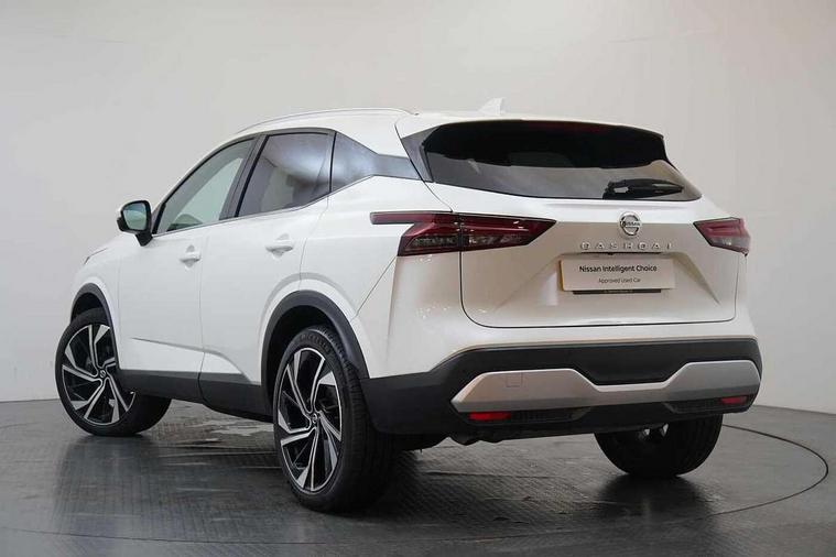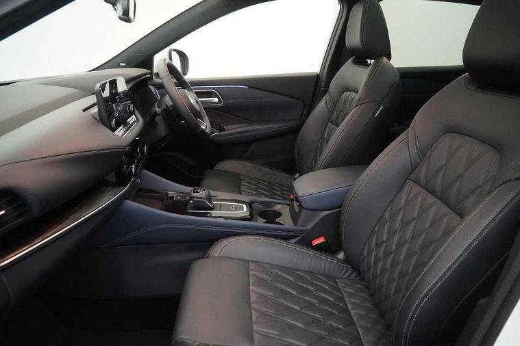 Blind spot warning, Drive modes (sport, normal, eco), Electric speed sensitive power steering, Emergency and breakdown call, Front and rear parking sensors, Full Digital 12.3" TFT Digital Combimeter, Google maps services - search, weather, 3D maps and Google street view, Hands free power tailgate, Idle stop/start system, Intelligent around view monitor, Intelligent Cruise control (ICC), Intelligent driver alert system, Intelligent forward collision warning, Intelligent lane intervention, Lane departure prevention, Lane departure warning system, Moving object detection, Nissan connect 9" touchscreen infotainment system, Nissan connect navigation, Push button starter, Rear cross traffic alert, Remote control services - door locks, lights, horn and car locator, Telematics - notifications and connectivity services, TomTom live traffic services, Traffic sign recognition with legal speed adjustment, Trip computer, Virtual personal assistant and firmware over the air capability, Wireless Apple CarPlay and wired Android Auto, Wireless charging pad, 10 Bose speakers - 2 tweeters, 6 high and medium frequency door speakers and 2 in subwoofer, AM/FM audio system with DAB, Bluetooth audio streaming, Bose acoustimass bass box, Digital amplifier, Front USB connections (Type-A and Type-C), Rear USB charging only ports (Type-A and Type-C), Auto dimming rear view mirror, Auto rear wiper when reversing, Body colour mirror caps, Body coloured door handles, Bodyside mouldings, Chrome side window finisher, Door handle with button, Door mirror memory, Dusk sensor, Electric auto folding door mirrors, Electrically adjustable and heated door mirrors with LED turn indicator, Fixed panoramic glass roof with electric sunshade, Follow me home headlights, Front and rear LED turning signals, Intelligent auto headlights, LED daytime running lights, LED rear lights, One touch front and rear electric windows with remote opening and closing, Privacy glass, Rear roof spoiler, Rear side wing doors, Rear styling plate, Reverse tilting door mirrors, Roof rails, Shark fin antenna, Splash free rain sensing wipers, Super UV and infrared cut glass, Three blink turn signal, 12v power socket in dashboard and luggage, 2x Rear coat hooks, 3 bench rear seats in 2nd row, 3 rear headrests, 4 folding assist grip, 6 Luggage hooks - 4 on floor, 2 on side, 60/40 split folding rear seat bench, 8 way electric adjustable driver seat with massage and memory function, 8 way electric adjustable passenger seat with massage and memory function, Ambient lighting around centre console, Ambient lighting in front doors, Centre console storage tray, Chrome interior door handles, Dark headlining, Driver and front passenger sunvisors with illuminated vanity mirrors, Driver seat back pocket, Dual zone automatic climate control with pollen filter, Electric 4-way lumbar support for drivers seat, Electric adjustable 4 way lumbar support for passenger seat, Front and rear door storage, Front cupholders x 2, Front door with bottle holders, Glovebox with light, Hard trunk cover, Height adjustable front headrests, Leather steering wheel, Luggage board system, Luggage space lighting, Multifunction steering wheel, Passenger seat back pocket, PVC front centre console and armrest, Quilted premium leather upholstery, Rear armrest with 2 cupholders, Rear door bottle holders, Single front passenger seat, Soft PVC kneepad, Steering wheel gearshift paddles, Steering wheel switches, Tilt/telescopic adjustable steering wheel, Two rear isofix child seat anchorage points with top tether, Welcome light and doors with console tray ambient lighting, Heat pack - Qashqai, Tech Pack (ProPILOT + HUD), 3x3 point rear seatbelt pretensioners + load limiters, ABS, ESP, EBD and brake assist, Active brake limited slip, Auto hold function, Child locks on rear doors, Curtain and front side, far side airbags, Driver and passenger airbags, Driver, passenger and 2nd row rear seat belt reminder, Electronic parking brake, Front seatbelt pretensioners + load limiters, Height adjustable front seatbelts, Hill start assist, Intelligent blind spot intervention, Intelligent front emergency braking with pedestrian, cyclist recognition and junction assist, Intelligent rear automatic braking, Tyre pressure monitoring system, Vehicle dynamic control, Advance intelligent key with driver memory storage (seats, mirrors, audio), Capless fuel filler, Engine immobiliser, Rear bumper with silver insert, Remote central door locking with deadlocking, Thatcham Cat.1 alarm, 20" Alloy wheels,