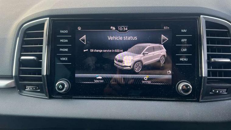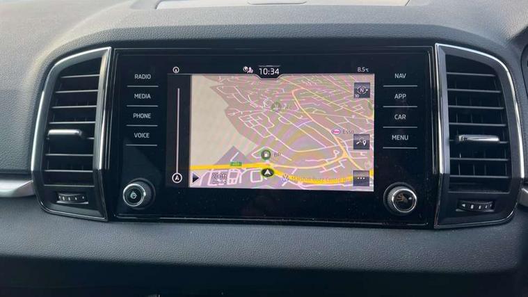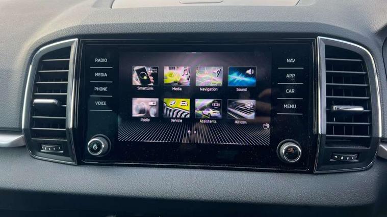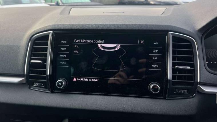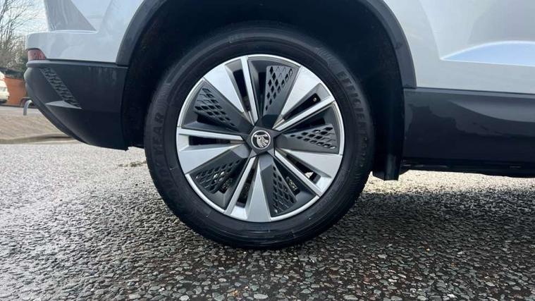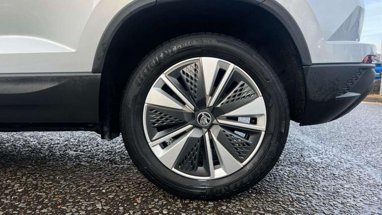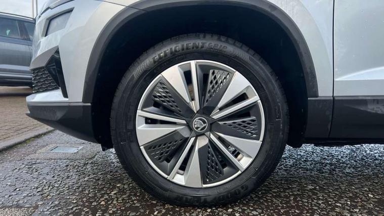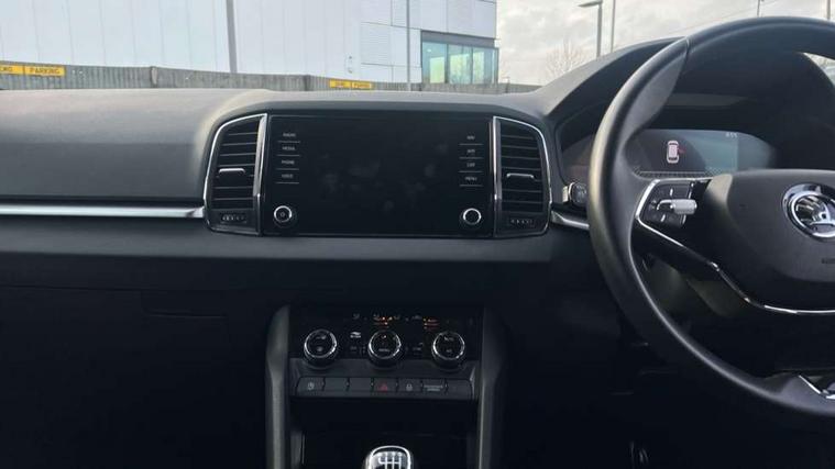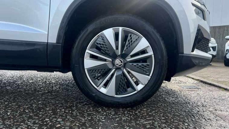 8" Digital display, Amundsen satellite navigation with 8" touchscreen display with maps Europe, WLAN and web radio, Care connect, Driver fatigue sensor, Electro-mechanical PAS, Emergency services call system, Outside temperature gauge, Service interval indicator, SmartLink wireless for Apple and wired for Android, Start/stop system with regenerative braking, USB C Port x 2 in front centre console, Diesel particulate filter, 8 speakers, DAB radio with Bluetooth, USB connection, Acoustic glass, Aero front windscreen wipers with intermittent function, Auto dimming rear view mirror with light and rain sensors, Black electric window control buttons, Body colour door mirrors and handles, Dynamic headlight range control with cornering light function, Electric front and rear windows with child proof lock, Electrically adjustable heated folding and auto dimming door mirrors, Front fog lights, Heated rear windscreen, LED daytime running lights, LED Headlights, LED rear lights with high functionality welcome effect and dynamic indicators, Light assistant (coming/leaving home/tunnel light), Plastic scuff plates, Privacy glass, Rear side wing doors, Rear window wiper with washer system and intermittent control, Safety reflectors on front doors, Third brake light, 1.5 litre bottle holders in driver and front passenger door panels, 12V socket in boot, 12v socket in front centre armrest with storage compartment and rear air vents, 2 x Tablet holder, 3 rear height adjustable headrests, 3 seat bench in 2nd row, 4 foldable roof handles with rear coat hooks, Black floor carpet, Chrome inner door handles, Double sided boot floor, Driver/front passenger reading lights, Foldable hooks in the boot, Folding tables on the front seat backrests, Front head restraints, Height adjustable driver and passenger seat, Height adjustable front three point seats belts with tensioners, Height/reach adjust steering wheel, Ice scraper, Illuminated glovebox, Illuminated luggage compartment, Interior noise suppression, Isofix child seat preparation for front passenger seat, Isofix child seat preparation outer rear, Manual lumbar support for front seats, Pearl grey interior ceiling, Pen holder, Pollen filter, Rear boot cover, Rear reading lights, Rubbish bin door, Safety vest holder, Single front passenger seat, Storage box in upper central dashboard closed, Sunvisors with illuminated vanity mirrors, Textile floor mats, Ticket holder, Tool kit, Umbrella under passenger seat, Boot pack - Karoq, Automatic door unlocking in case of crash, Automatic fuel cut off in case of crash, Child locks on rear doors, Driver airbag, Electronic parking brake with auto hold function, Emergency rear braking signal, ESC including ABS, MSR, ASR, EDS, HBA, DSR, RBS, MKB and traction control, Front side airbags, Hill hold control, Knee airbags, Passenger airbag with switch-off function, Pedestrian monitor, Seatbelt reminder signalisation and pretensioner for all seats, Three point seatbelts rear, Two tone horn, Tyre pressure display, Tyre pressure monitor, Alarm with interior monitoring, back up horn and tilt sensor with safe function, Electronic engine immobiliser, Remote central locking with 2 remote folding keys, Black centre console, Chrome framed air vents, Satin black dashboard, Satin black door trim, Anti-theft wheel bolts protection, Storage on wheel cover,