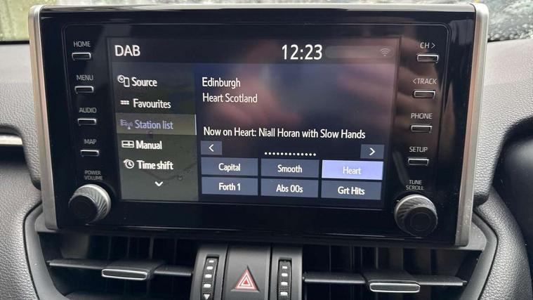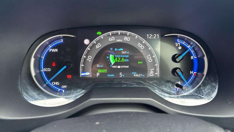 7" TFT multi information display, Analog tachometer, Apple car play and Android auto, Blind spot monitoring with rear cross traffic alert, Bluetooth system, Cyclist Detection, Drive mode selector, eCall emergency call system, ECO-driving indicator, Electric power steering, EV audible alert, Front parking sensors, Full range intelligent adaptive cruise control, Hybrid system indicator, Lane departure warning system, Lane trace assist, Lights on warning, Memory on adjustable speed limiter, My T Connected services, Night Time Pedestrian Detection, Power boot opening and closing, Push button start, Rear parking camera, Rear parking sensors, Remote boot door release in cabin, Remote boot door release in key, Road sign assist - RSA, Touch 2 Go navigation system including 3D maps and voice control, Traffic sign recognition, Trip computer, Voice control system, Vehicle Stability Control (VSC), 6 speakers, 8" Multimedia display touch screen, Auxiliary socket for external MP3 player, DAB audio, Toyota touch media system, USB connection, Adaptive automatic high beam, Automatic headlamp levelling, Automatic headlights, Automatic wipers, Automatically retractable door mirrors, Black rear spoiler, Black roof rails, Black Shark-fin antenna, Body colour door handles, Door mirror puddle lights, Dual exhaust pipes, Electric adjustable door mirrors, Electrochromatic rear view mirror, Emergency brake-light signal (EBS), Follow me home headlights, Front fog lights, Glass black protection moulding on side doors, Gloss black door mirrors, Gloss black front and rear bumper, Heated door mirrors, LED daytime running lights, LED High mounted stop lamp, LED rear combination lights, Meshed shape upper front grille, Power front windows, Power rear windows, Privacy glass, Projector LED headlights, Rear screen wiper - intermittent, Rear windscreen defogger, Silver front under-run, Silver rear under-run, Trailer sway control, Turning signal integrated indicators in door mirrors, 3 rear headrests, 60/40 split fold rear seat back, Black roof lining, Boot light, Clean air filter, Driver and front passenger personal light, Driver and front passenger Whiplash Injury Lessening seats, Driver and passenger sunvisors with illuminated vanity mirrors, Dual sided deck board in boot, Dual zone automatic air conditioning, Dynamic sports seats, Floor mats, Folding rear centre armrest, Front and rear bottle holders, Front centre armrest, Front footwell lights, Front headrests, Front seat and rear pockets, Front/rear roof mounted assist grips, Heated driver and front passenger seats, Illuminated entry system, Isofix child seat preparation, Leather gear shift with chrome surround, Light blue ambient lighting on front cupholders and open tray, Manual telescopic and tilt 3-spoke leather steering wheel with Chrome insert, Manually reclining and sliding front passenger seat, Multimedia switches on steering wheel, Pollen filter, Power height-adjustable sliding reclining and lumbar support for driver seat, Rear coat hooks, Rear door armrests, Rear passenger air vents, Rear view display in display audio screen with dynamic guide lines, Reclining rear seats, Satin chrome interior door handles, Sunglasses holder, Synthetic leather upholstery, Telephone and voice recognition switches on steering wheel, 3x3 point rear seatbelts, ABS/EBD, Acoustic vehicle alerting system, Adjustable front driver and passenger seat belt extender, Brake assist function, Brake hold function, Child proof door locks, Collision mitigation braking system, Driver/Front Passenger airbags, Driver/front passenger side airbags, Drivers knee airbag, Electronic parking brake, Electronic Stability Programme (ESP), Front and rear curtain airbags, Front and rear seatbelt reminder, Front passenger airbag detector, Hill start assist, Passenger airbag cut-off device, Pedestrian detection, Pre collision system, Seatbelt pretensioners with load limiters, Toyota safety sense, Traction control, Tyre pressure warning, Glass-breaking alarm sensors, Immobiliser, Intrusion alarm, Light - on and Key in reminder, Motion sensor alarm, Remote central locking, Smart entry + Smart start, Speed sensitive auto door locking, Tilt detection sensors, Piano black centre console with silver insert, Soft-touch black lower dashboard, Soft-touch black upper dashboard with silver insert, 19" 5 Spoke black alloy wheels, Full size spare wheel,