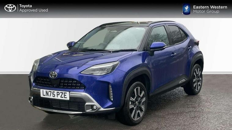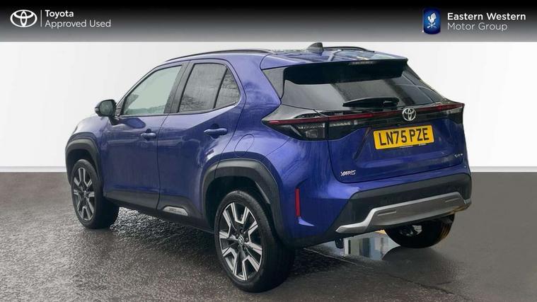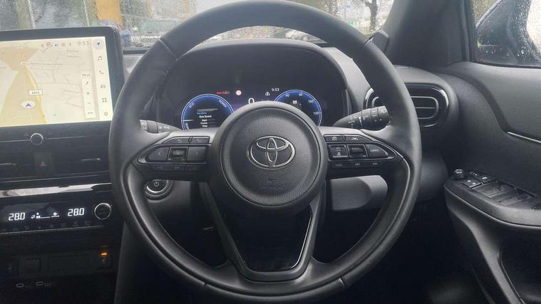 10.5" Multimedia display screen, 10.5" Toyota smart connect+ with navi multimedia system with wireless Smartphone integration incl Apple CarPlay, 360 degree panoramic view monitor, 7" Multi information display screen, Adaptive cruise control, multi info switches on steering wheel, Adjustable speed limiter, Advanced parking assist, Blind spot monitoring, Bluetooth connectivity, Color multi-information display, Digital speedometer, Digital tachometer, Drive mode selector, Driver attention alert system, Dynamic guide lines on reversing camera, eCall emergency system, Electric power steering, Emergency driving stop system, Full range intelligent adaptive cruise control, Hybrid system indicator, Intelligent front and rear parking sensors with clearance sonar and automatic braking, Intersection turn assist, Key reminder warning, Lane change assist, Lane trace assist, My T Connected services, Power tailgate, Pre-collision system enhanced with emergency steering assist, Rear cross traffic alert, Remote boot door release in cabin, Road sign assist - RSA, Safe exit assist, Tailgate, Telephone switch on steering wheel, Wireless Mobile Phone Charger, Steering assisted vehicle stability control, 6 speakers, DAB Digital radio, Front USB Type-C connector, Front USB-C device charger, Acoustic windscreen glass, Anti-jam protection on power windows, Auto dimming rear view mirror, Auto high beam [AHB] with on/off switch, Auto intermittent windscreen wipers, Automatic headlights, Automatic headlights cut-off, Automatically retractable door mirrors, Black door moulding, Black lower front grille, Black protection moulding on side doors, Black roof rails, Black wheel arch mouldings, Body colour door handles, Body colour front bumper, Body colour rear bumper, Electric adjustable heated door mirrors, Follow me home headlights, Front and rear electric windows with auto up/down function, Gloss black upper front grille, Headlight cut off reminder, Indicators integrated on door mirrors, Intermittent rear wiper, Kick activated power back door, LED 3rd brake light, LED daytime running lights guide, LED front fog lights, LED front light guide, LED Indicators, LED projector headlights, LED rear lights with sequential indicators, Manual headlight levelling, Meshed shape upper front grille, Noise reduction layer on windscreen, Pre wiring for towing hook, Privacy glass, Rain sensor, Rear roof spoiler, Rear side wing doors, Rear window defogger, Shark fin antenna, 12v power outlet - front, 12V power point in boot, 2x Rear coat hooks, 3 seat bench in 2nd row, 3 spoke leather steering wheel, 40/60 split deckboard, 40:20:40 split folding rear bench seat, Adjustable rear headrests, Adjustable speed limiter switch on steering wheel, Boot light, Central armrest, Driver and front passenger personal lights, Driver and front passenger Whiplash injury Lesseing seats, Driver and passenger seatback pockets, Dual zone automatic air conditioning, Fabric door trim, Front console box, Front cup holders, Front door pockets, Front head restraints, Front sport seats, Front/rear assist grips, Gear shift indicator, Grey roof lining, Heated driver and passenger seats, Heated steering wheel, Height adjustable driver's seat, Height adjustable front passenger seat, Hooks for luggage holding belts, ISOFIX child restraint system, Lane departure alert switch on steering control, Leather gearshift, LED centre room light, Light on driver and passenger sun visor, Manual telescopic and tilting steering wheel, Mirror on driver and passenger sun visor, Nanoe-X air purifier, Partial synthetic leather upholstery, Pollen air filter, Power adjustable lumbar support on driver seat, Rear cup holders, Rear door pockets, Rear head restraints, Remote air-conditioning system, Single compartment glovebox, Single front passenger seat, Soft tonneau cover, Storage box under boot floor, Voice recognition switch on steering wheel, White ambient lighting in centre console, White ambient lighting in footwell, White ambient lighting on front doors, Yaris cross floor mats, 3x3 point rear seat belts, ABS+EBD+Brake assist, Downhill Assist Control (DAC), Driver and passenger central airbags, Driver and passenger front airbags, Driver and passenger side airbags, Electronic parking brake, Emergency brake light system (EBS), Front seat belt reminder, Hill start assist control (HAC), Passenger airbag on/off switch, Pre-collision system with pedestrian and cyclist detection, Rear door child safety locks, Rear passenger side airbags, Rear seat belt reminder, Traction control, Tyre pressure warning system, Immobiliser, Intrusion alarm, Keyless smart entry with push button start, Power door locks, Power passenger window lock, Remote door lock, Gloss black side air vent surrounds, Tyre repair kit,