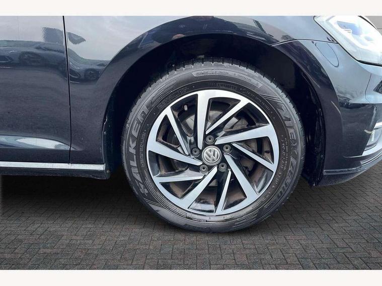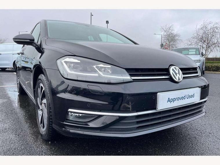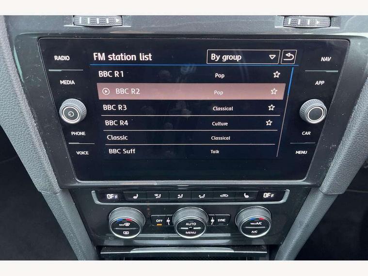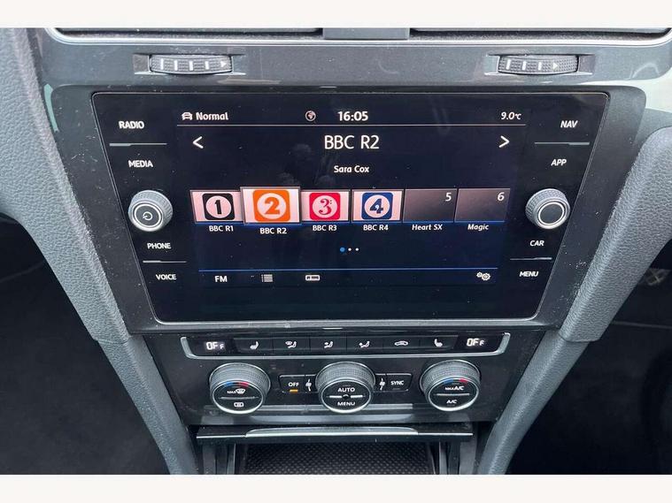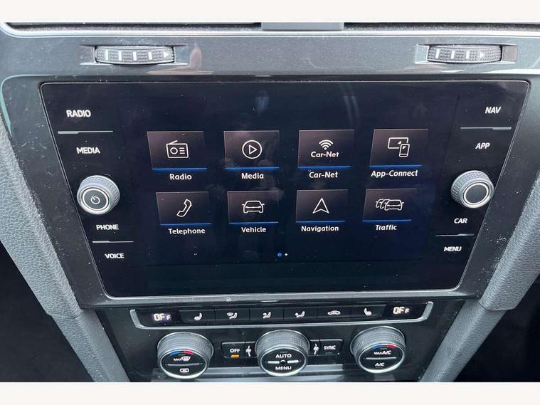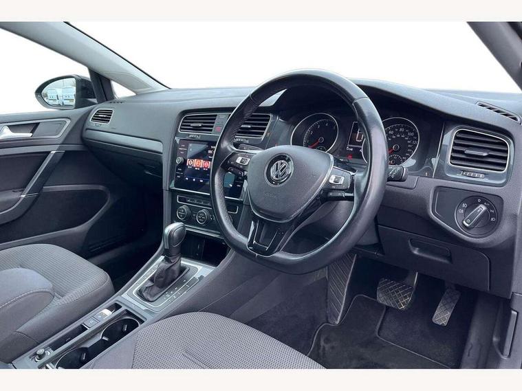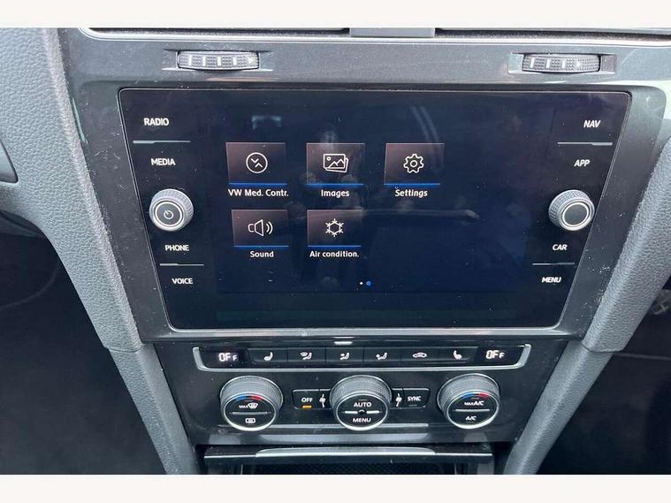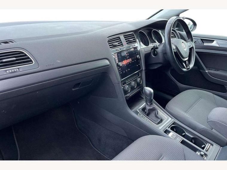'Lights On' Reminder warning buzzer, ACC - Adaptive cruise control with front assist, forward collision warning, distance monitoring, city emergency brake and speed limiter, Bluetooth telephone and audio connection for compatible devices, Brake pad wear indicator warning light, Driver alert system, Driving Mode Selection with four preset modes - Eco, normal, sport or individual modes, Multifunction computer with visual gear change recommendation for fuel consumption, Power assisted speed sensitive electro-mechanical steering, Push tank flap, Speed limit display, Speedo, rev counter, electronic odometer, trip, service interval display, exterior temperature and fuel gauge, Stop/start system, Think blue trainer driver tips and journey analysis, Warning buzzer and light for front seatbelts unfastened, Battery regeneration during braking, XDS electronic differential lock, Composition media system, DAB Digital radio receiver, Driver Personalisation profile selection, MP3/WMA compatability, Multi device interface (MDI) via USB connection, Premium USB cable in choice of either Apple or Android smartphone compatibility, SMS Functionality, Title and cover art display, USB and SD card connectivity, Volkswagen media control, Black front air intake and radiator grille with chrome insert, Black rear diffuser, Body colour bumpers, Body colour door handles, Body colour door mirrors with integrated indicators, Dusk sensor + automatic driving lights, Electric front windows, Electric rear windows, Electrically adjustable and heated door mirrors, Fully galvanised body, Heated rear windscreen, High level 3rd brake light incorporating LED Technology, LED front fog lights with static cornering light function, Range adjustable headlights via infotainment system with LED daytime running lights, Rear fog lamp, Rear number plate lights incorporating LED technology, Rear tinted glass 65% light absorbing from B pillar backwards, Rear window aerial, Rear window wash/wipe with intermittent wipe, Reflectors in all doors, Tailgate with integrated rear roof spoiler, Windscreen wipers/ intermittent wipe + 4 position delay, 12V socket in luggage compartment, 3 rear headrests, 4 load lashing points in luggage compartment, 60/40 split folding rear seat backrest, Bag hook in luggage compartment x 2, Climate control - 2 zone electronic air conditioning with automatic air recirculation and allergy filter, Cooled glovebox, Cover for storage compartment in centre, Dust/pollen filter, Front and rear reading lights X 2, Front centre armrest with storage compartment and two rear air vents, Front seat back storage pockets, Grab handles front x 2, rear x 2 with integrated coat hooks, Height and reach adjustable steering wheel, Illuminated vanity mirrors, Instrument lighting white adjustable panel illumination, Interior light delay, Isofix preparation for 2 rear child seats, Load through provision with rear centre armrest and cupholders x2, Luggage compartment lighting, Overhead storage box, Pearl grey headlining, Storage box in luggage compartment, Storage compartment in roof console with cover, Storage compartments in centre console, Storage compartments in front doors, Storage compartments in rear doors, Stowable luggage compartment cover, Sun visors, Variable boot floor, height adjustable and removable, Convenience Pack - Golf, Mirror pack - Golf, Winter pack - Golf, 3 rear three point seatbelts, Airbags - Driver's and front passenger's, curtain airbag, Driver's knee, front side impact and passenger's airbag deactivation switch, Anti-lock Braking System (ABS) with Hydraulic Brake Assist (HBA), Automatic post collision braking system, Child locks on rear doors, Driver/Passenger optimised head restraints, Electronic parking brake with auto hold, Electronic stability control (ESC) including Electronic differential lock (EDL) and ASR (Traction control) with deactivation via infotainment system, Front ventilated disc brakes and rear disc brakes, Pre crash preventive occupant protection, Three point height adjustable front seatbelts with tensioners, Tyre pressure loss indicator, Alarm with interior protection and deactivation via infotainment system, Electronic engine immobiliser, Brushed dark silver decorative inserts in dash and door panels, Chrome plated air vent surround, Chrome-plated light switch surround, Polar night black decorative inserts in centre console, Steel space saver spare wheel,