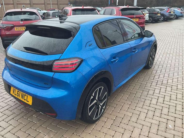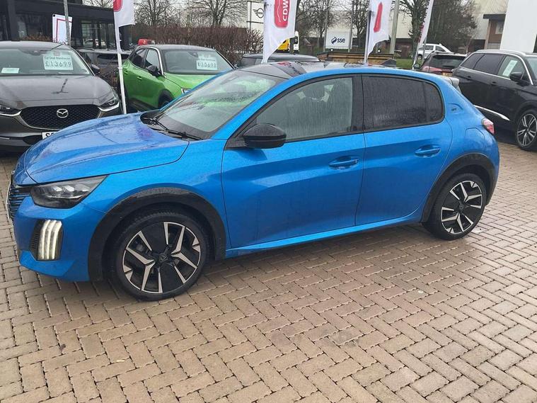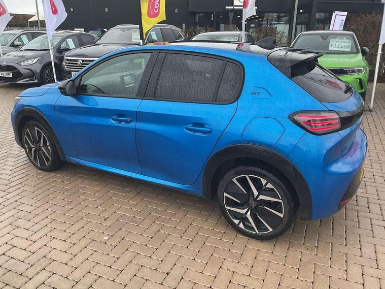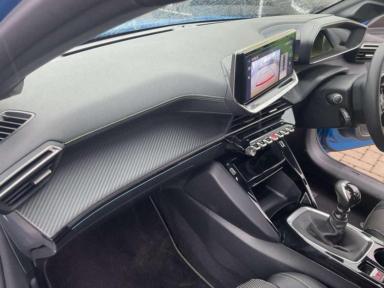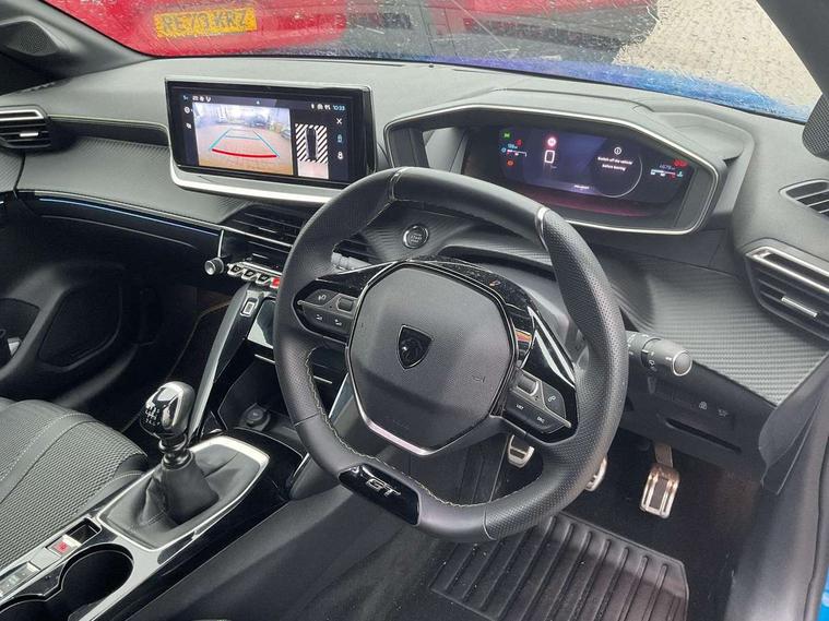 Bluetooth telephone facility, Drive mode select (Eco/Normal/Sport), Driver attention warning, Emergency call service, Exterior temperature indicator with ice warning, Front and rear parking sensors, Multi function trip computer, PEUGEOT i-Cockpit with 10" configurable 3D colour head up instrument panel, PEUGEOT i-Cockpit with 10" HD capacitive colour touchscreen, PEUGEOT i-Cockpit with compact steering wheel, PEUGEOT SOS and assistance, Push button start, Smart phone docking station, Smartphone 15W wireless charging plate, Speed limit recognition and recommendation, Start/stop system, Wireless mirror screen with apple carplay and android auto, 6 Speakers - 2 tweeters and 4 door speakers, DAB Digital radio, Peugeot i-connect infotainment system - 10in HD touchscreen, AM/FM/DAB digital radio, Wifi Mirroring, Bluetooth & 2 USB connection, USB-A socket (x1) and USB-C socket (x1) - rear, USB-C data and charge socket and USB-C charge socket in front, Voice recognition for radio, navigation and telephony features, 2 X Rear number plate lights, Acoustic windscreen, Antenna - Gloss Black 'fin' design, Automatic hazard light activation upon heavy brake application, Body coloured exterior door handles, Dark tinted rear side and tailgate windows, Diamond black rear spoiler (roof), Door sills protection with PEUGEOT signature lettering, Electric heated and power folding door mirrors with courtesy floor lighting, Frameless electrochrome interior rear view mirror, Full LED headlights with automatic height adjustment and PEUGEOT smartbeam assist, Gloss black B pillar, Gloss black door mirror shells, Gloss black front bumper grille with body colour accents, Gloss black rear cluster connecting strip, Gloss black wheel arch extensions, Gloss black window weatherstrips, GT model designation badging on C pillar, GT model designation badging on tailgate, Headlights left on audible warning, LED 3 claw horizontal rear lighting signature (with daylight function) and LED brake lights, indicators and reversing lights, LED daytime running lights with distinctive 3 claw signature, LED front indicators, LED third brake light, Model designation badges front and rear in basalt grey, One touch electric front/rear windows with pinch protection, Rear bumper with gloss black finish, Rear reversing lights, Rear side wing doors, Rear windscreen wiper triggered automatically in reverse gear, Roof spoiler, Tailgate with heated rear windscreen and wiper blade, Variable front intermittent wipers, 1/3 to 2/3 split folding rear seats, 12V socket, 3 seat bench in 2nd row, 8 Colour personalisable ambient lighting, Adamite green contrast stitching to front and rear armrest, front centre console, dashboard facia, Aluminium pedals, Automatic mono zone climate control air condition, Boot lighting, Driver and front passenger dynamic seats, Driver and front passenger seat manual adjustment in longitudinal and back rest angle, Driver and front passenger seat mechanical height adjustment, Driver and passenger sun visors, front footwells and central storage with LED lighting, Electric power steering with reach and rake adjustable steering column, Front centre armrest with storage compartment, Front LED interior light, front LED reading spotlights(x2), rear LED reading spotlight(x2), Gear shift indicator, High centre console with 2 cup holders, Luxury carpet mats, Map pockets on the backs of the front seats, Multi function full grain perforated leather steering wheel with adamite green stitch detail and 'GT' emblem, Passenger seat height adjuster, Piano keys gloss black plated toggle switches to access main functions of the vehicle, Rear centre headrest, Roof lining - Mistral black, Seatbelt unfastened on the move audible and visual alert for front and rear seats, Single front passenger seat, Visibility pack - 208, 2x Isofix child seat fitting on outer rear seats, 3 rear 3 point seatbelts, ABS (Anti-lock Braking System) with EBD (Electronic Brakeforce Distribution) and EBA (Emergency Braking Assistance), Active safety brake with night function/cyclists/pedestrians, Child locking functionality on rear doors, Driver and front passenger airbag with passenger airbag deactivation, Driver/front passenger side airbags, Electric parking brake, ESP with Hill Assist, Front and rear curtain airbags, Front and rear disc brakes, Front optimised safety headrests and 3 x rear retractable headrests with height adjustable, Front three point retractable seatbelts with force limiters, Remote plip(x2) for locking, unlocking, includes emergency key blade, Tyre pressure monitoring system, Acoustic vehicle alert system (AVAS), Alarm - Connected, volumetric , perimetric, anti lift sensor, Automatic door locking when moving off, Deadlock, Electronic code immobiliser, Peugeot Open and Go System, Remote central locking, Carbon effect Dashboard, front and rear door panel finish, 17" Yanaka two tone diamond cut alloy wheels wheels includes gloss black inserts, Space saver spare wheel,