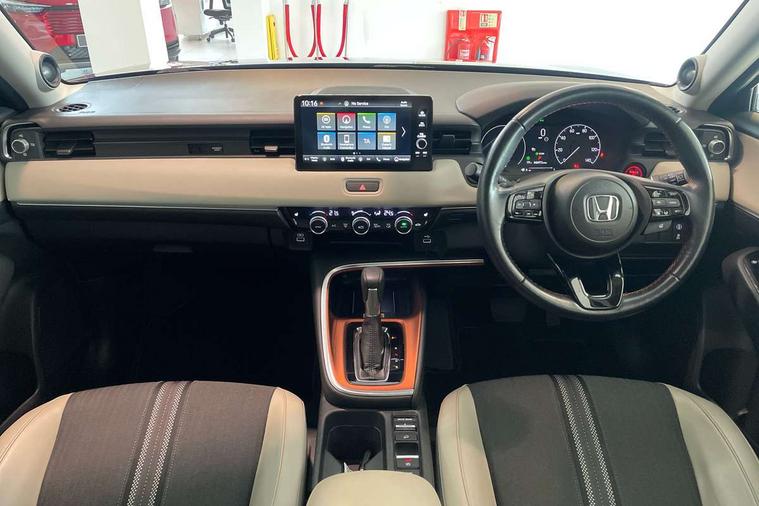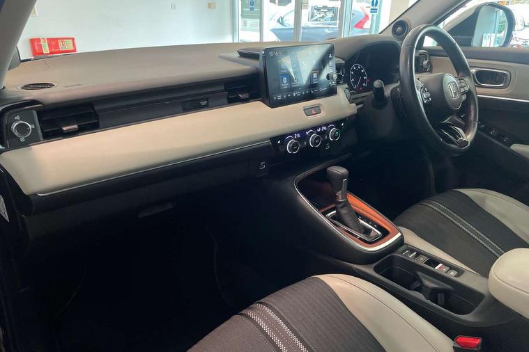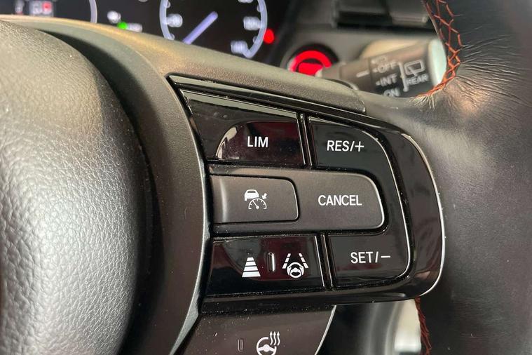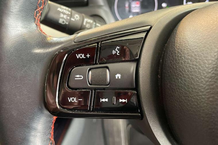 7" TFT instrument cluster, Adjustable speed limiter, Agile handling assist, BLIS (Blind Spot Information System) with Cross Traffic Monitor, Bluetooth hands free telephone connection, Drive modes select (Eco, normal and sport), eCall emergency system, Electric power steering, Emergency stop signalling system, Forward collision warning, Handsfree power tailgate with walkaway close, Honda CONNECT with navigation, 9" touchscreen, AM/FM/DAB/Apple Carplay and android auto, Honda sensing with blind spot information, adaptive cruise control and lane keep assist, Idle stop, Intelligent speed limiter, Low speed following, Rear parking sensors and rear view camera, Tachometer, Traffic sign recognition, WiFi connectivity, Wireless charger, Vehicle stability assist, 'Shark fin' mobile antenna, 2 USB sockets in rear, 2x USB Front socket (1 data & 1 charge), Premium audio system, Steering wheel mounted remote controls, Auto dimming rear view mirror, Auto headlight levelling, Auto high beam, Automatic coming home lighting, Automatic headlights, Automatic rain sensing wipers, Body colour bumpers, Body colour tailgate spoiler, Body coloured door handles, Electric front and rear windows, Electrically adjustable and heated door mirrors, Exterior and interior unique colour scheme (orange, white & blue accents), Front sequential turn, Front wiper de-icer, Headlight washers, Heated front windscreen, Heated rear window, High gloss side window surrounds, High level third brake light, LED cornering lights, LED daytime running lights, LED front fog lights, LED headlamps, Rear side wing doors, Rear wiper, Retractable/reverse auto tilt door mirrors, Roof rails, Smoked tail lights, Two tone roof, Variable front intermittent wipers, Windscreen shadeband, 3 rear headrests, 3 seat bench in 2nd row, 60/40 split folding rear seat, Ambient interior lighting, Cargo net hooks, Courtesy lights, Driver seat back pocket, Driver's seat height adjustment, Driver/passenger sunvisors with illuminated vanity mirrors, Dual automatic air conditioning, Front and rear map reading lights, Front head restraints, Front seat armrests, Heated front seats, Heated steering wheel, Isofix points, Luggage area under floor storage box, Magic seat flexibility system, Manual height/reach adjust steering wheel, Paddle shift controls, Passenger seat back pocket, Rear centre armrest, Rear ventilation, Single front passenger seat, Smooth leather steering wheel, Tonneau cover, Trunk cargo band, Trunk light, 3x3 point rear seatbelts, ABS+EBD+Brake assist, Anti-whiplash front headrests, Collision mitigation braking system, Collision mitigation throttle control, Deflation detection system, Dual front SRS airbags, Electric child locks, Electronic parking brake, Front and rear curtain airbags, Front and rear safety belts with Emergency Locking Retractor, Front side airbags, Hill descent control, Hill start assist, Low speed safety system, Passenger SRS airbag cut-off device, Regenerative braking system, Door deadlocks, Immobiliser, Keyless smart entry with push button start, Mirrors and windows key fob operation, Remote central locking with 2 remote folding keys, Security alarm, 18" Black cut alloy wheels, Tyre repair kit,