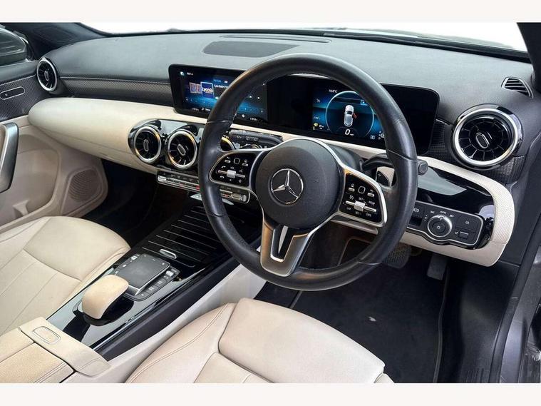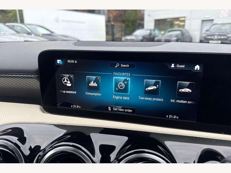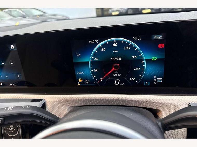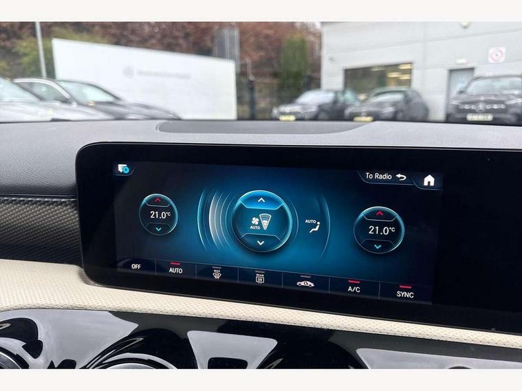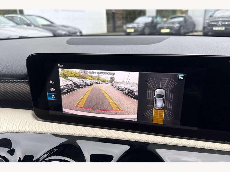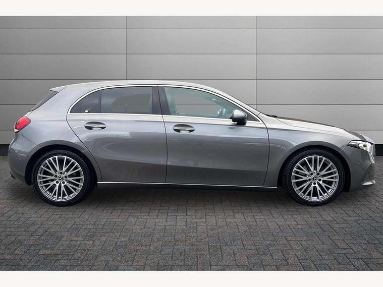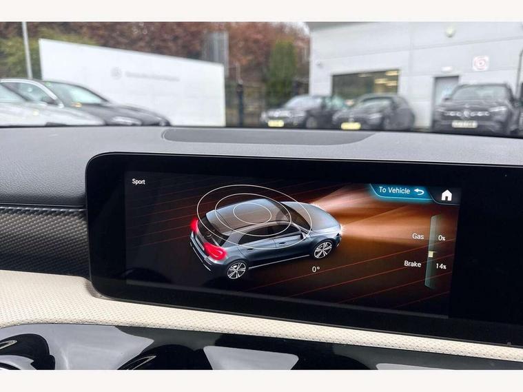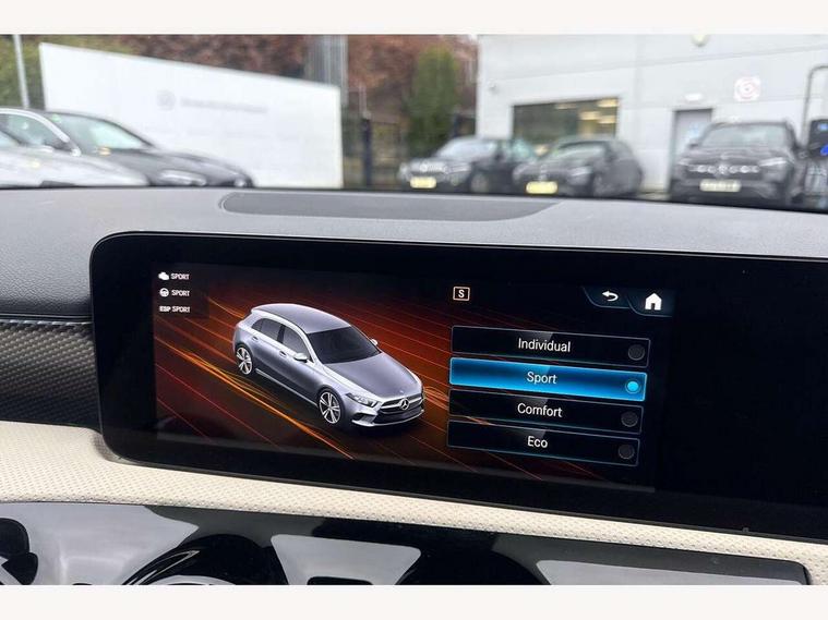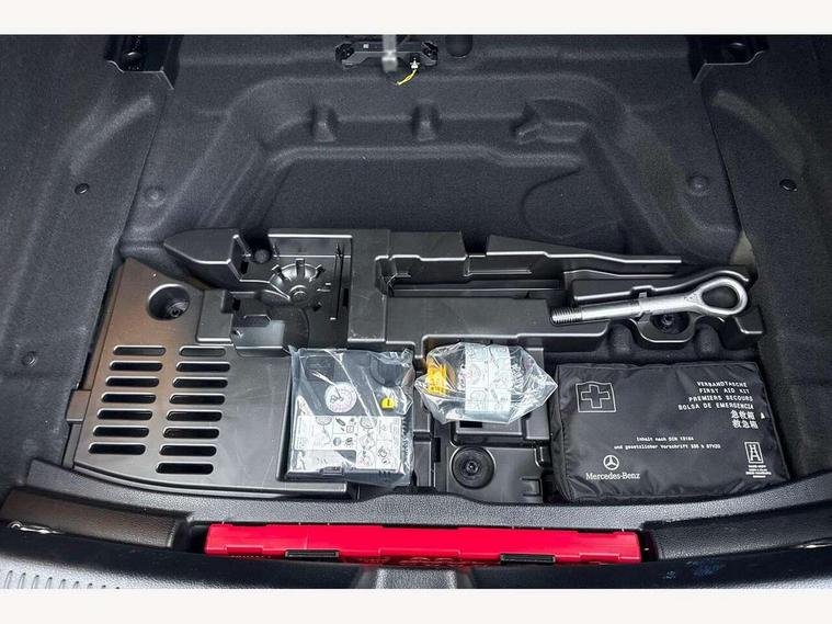 10.25" media display, 180 degree rear view camera with parking guidelines, 7" colour screen in instrument panel, Active parking assist with visual and audible warning of detected obstacles, Attention assist, Brake pad wear indicator warning light, Car wash mode, Cruise control + speed limiter, Direct steering, Dual bluetooth interfaces, DYNAMIC SELECT with a choice of driving modes (ECO, Comfort, Sport and Individual), ECO start/stop function, Fluid level warning indicator for fuel, oil, coolant and washer fluid, Hard-disk navigation, Hey Mercedes Voice activation, Lamp failure indicator, Lane keeping system, Mercedes me connect including emergency call system, accident recovery, breakdown and maintenance management, Mercedes me remote services, Outside temperature gauge, Owners manual in English, Pre-installation for private car sharing, Preinstallation for Mercedes Benz link, Service indicator (ASSYST), Smartphone integration with Apple CarPlay and Android auto, Speed sensitive power steering, Trip computer, Ultrasonic sensors positioned in the front and rear bumpers, Lowered comfort suspension, Rear axle torsion beam, 2 USB ports (type C) in rear stowage compartment and one in front of center console, 6 speakers, DAB Digital radio, MBUX multimedia system with DAB digital radio and touchpad including satellite navigation, Mercedes-Benz sound system - 100W, 4 Electric Front and Rear windows, Adaptive brake lights, Automatic headlights, Black weather strip, Body colour bumpers, Body colour door handles, Body colour side skirt, Body coloured door mirrors, Chrome beltline trim, Diamond radiator grille with black pins with one louvre in silver + chrome insert, Electric adjustable and heated door mirrors with integrated LED side indicators, Exhaust system - Twin visible tailpipes in polished stainless steel, Headlamp assist automatic headlamp activation, Heated glass rear windscreen + timer control, LED High level third brake light, LED high performance headlamps with integrated LED daytime running lights, LED tail lamp, Privacy glass, Radio aerial, Rain sensing windscreen wipers with two sensitivity settings, Rear fog lights, Rear side wing doors, Rear wiper, Window line trim strip in chrome, 3 seat bench in 2nd row, 3 Spoke leather multi function steering wheel, 40:20:40 split folding rear seats, Artico man-made leather upholstery, Auto Mercedes-Benz child seat recognition sensor, Black air vents with surround in silver chrome, Black roof lining, Controller on centre console with chrome surround, Front centre armrest with storage compartment, Front comfort seats with adjustable head restraints, Front door sills with Mercedes Benz lettering, Front seat backs luggage nets, Front seat cushion length adjustment, Gearshift paddles on steering wheel, Heated front seats, Height/reach adjustable steering column, Interior mirror with reading lamps in black and frameless, Manual height adjustable front seats, Rear head restraints, Seat occupancy sensor for front passenger seat, Single front passenger seat, Stowage compartment in centre console with retractable cover, Sunvisors with illuminated vanity mirrors, Touchpad on center console, Twin front cupholders, Two zone thermotronic luxury automatic climate control, Velour floor mats, Light and sight pack - A Class, Mirror package - A Class, Seat comfort pack - A Class, 3 rear 3 point seatbelts, ABS with Brake Assist, Active bonnet, Active brake assist includes forward collision warning system with autonomous braking, Adaptive brake assist with hold function and hill start assist, Black seatbelts, Childproof locks manually operated for rear doors and electrically operated for rear power windows, Crash responsive emergency lighting, Driver and passenger head and side airbags, Drivers knee airbag, Dual stage driver/passenger airbags, Electronic parking brake, ESP curve dynamic assist, ESP with ASR, Front and rear seatbelt reminder, ISOFIX and top tether child seat fixing points in two outer rear seats, Tyre pressure monitoring system, Warning triangle and first aid kit, Window airbags, Alarm system/interior protection/immobiliser, Keyless Go, Remote central locking and crash sensor with emergency opening function, Urban guard vehicle protection system with immobiliser and interior protection, Dark carbon fibre interior trim, 18" multi spoke light alloy wheels painted in himalayas grey with a high sheen finish, Summer tyres, Tirefit sealant kit,