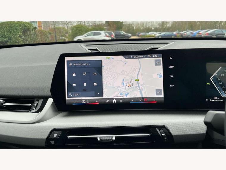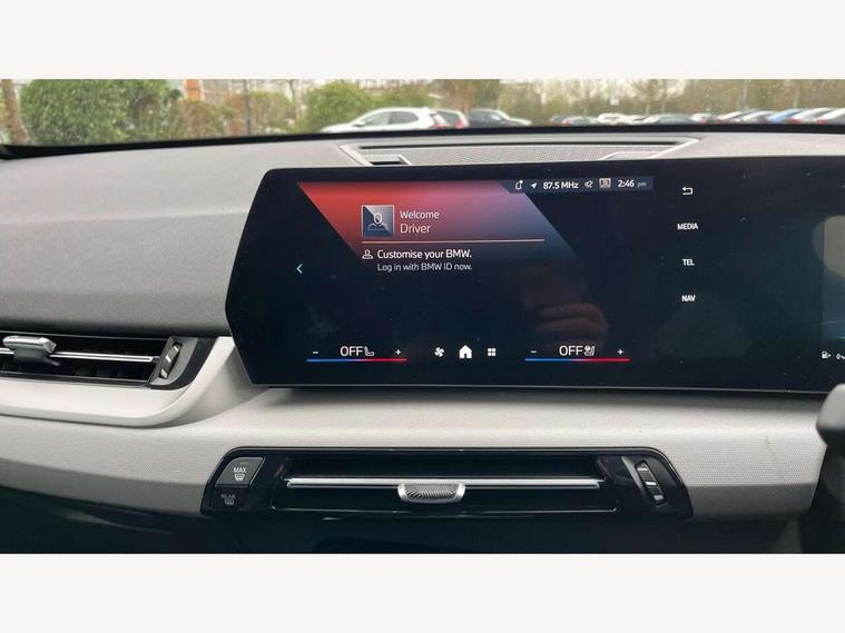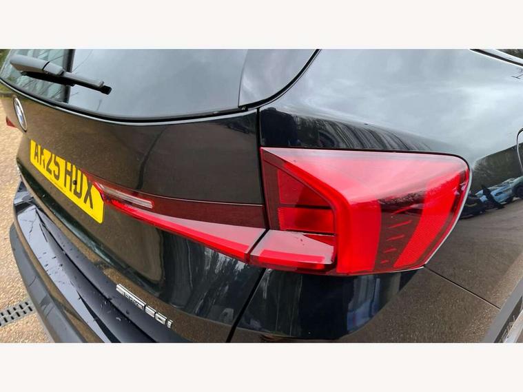 Attentiveness assist, Automatic start/stop function, BMW Operating system 9 with BMW Maps, real-time traffic information, in-car experiences, remote services and smartphone integration, BMW Teleservices, Brake pad wear indicator, Condition based service, Connected eDrive Services, Drive off assistant, Electrically opening/closing tailgate with opening/closing with remote control and contactless opening and closing, iDrive controller, Language version English, My Modes, Personal Profile - automatic lock when driving away selectable, Servotronic PAS, Tyre puncture warning system, Widescreen display, EU6 emissions management, Larger Fuel Tank, Performance Control, Petrol Particulate Filter, Standard suspension, Steptronic transmission with double clutch, BMW Personal eSim, DAB Digital radio, Badge on engine compartment lid and tailgate, BMW radiator grille with grille struts, end face black high-gloss, radiator grille frame chrome high-gloss, Body colour door mirrors, Contoured rear roof spoiler in vehicle colour with side aeroblades in black high-gloss, Dynamic brake lights, Electric adjustable heated door mirrors, Electric windows - front and rear, with open/close fingertip control, anti-trap facility and comfort closing, Folding door handles integrated flush with surface, Follow me home headlights, Front bumper panel with air inlet in matt black, Front door exit lights, Heated rear window, High gloss shadowline, Invisible exhaust tailpipe, LED 3rd brake light integrated in rear spoiler, LED daytime running lights, LED number plate light, M roof rails high gloss shadow line, Matt black roof strips, Model inscription on right tailgate, Rain sensor including auto headlights activation, Rear bumper panel with two L-shaped trims In pearl chrome, Rear side wing doors, Rear wiper, Sill cover in body colour, Trailer stabilisation logic, Window washer nozzle for rear view camera, Windscreen wipers front with heated washer nozzles, 12V - Power sockets with front centre console and luggage compartment, 2 bag hooks in luggage compartment, 2 cup holders in front, 2 x USB Type C ports for charging in front centre console + 2 x USB Type C ports for charging in rear centre console, 3 rear headrests, 3 seat bench in 2nd row, 3 upper retaining strap clips integrated into rear panels of seat backrests, 4 grab handles, 40:20:40 split folding rear seats, Ambient interior lighting, Anthracite Velour front and rear floormats, Bottle trays in all doors, Child seat ISOFIX attachment for two outer rear seats and front passenger seat with anchorage points, Clothes hook rear, Driver and front passenger heated seats, Dual zone automatic air conditioning, Front and rear door pockets, Front and rear footwell lighting, Front centre console storage compartment, Front/rear adjustable head restraints, Glove compartment, Interior door handle recess light on all doors, Light on right in luggage compartment, Manual steering column height and depth adjustment, Middle centre console storage compartment, One piece parcel shelf opens together with tailgate and removable, Rear armrest in door trim panel, Single front passenger seat, Sport leather multifunction steering wheel with thumbrests and operation of instrument display, audio, telephone and driver assistance, Storage compartment net in left side trim panel, Storage compartment with folding cover under centre console armrest cushion, Storage tray in right side trim panel, Tilt adjustment incl. cargo function of 2nd row of seats, Trim elements on steering wheel spokes in pearl chrome, Vanity mirror lights, ABS/EBD, Automatic hold function, Automatic Stability Control (ASC), BMW emergency call, Braking readiness, Cornering brake control (CBC), Crash Sensor - activates hazard/interior lighting + unlocks doors, Driver/Front Passenger airbags, Driver/front passenger side airbags, Dry braking, Dynamic brake control, Dynamic stability control + (DSC+), Electromechanical parking brake, Energy recovery system, First aid kit, Front and rear brake discs, Front and rear head airbags, Front passenger airbag deactivation, Integrated brake system, PC iBrake PostCrash approach control warning with light braking function, Rear door child safety locks, Three point seat belts in all seats, Tyre pressure monitor, Warning triangle, Alarm system with tilt sensor, monitoring doors, bonnet interior and tailgate, Closing system with central locking, Locking wheel bolts, Tyre repair kit plus,