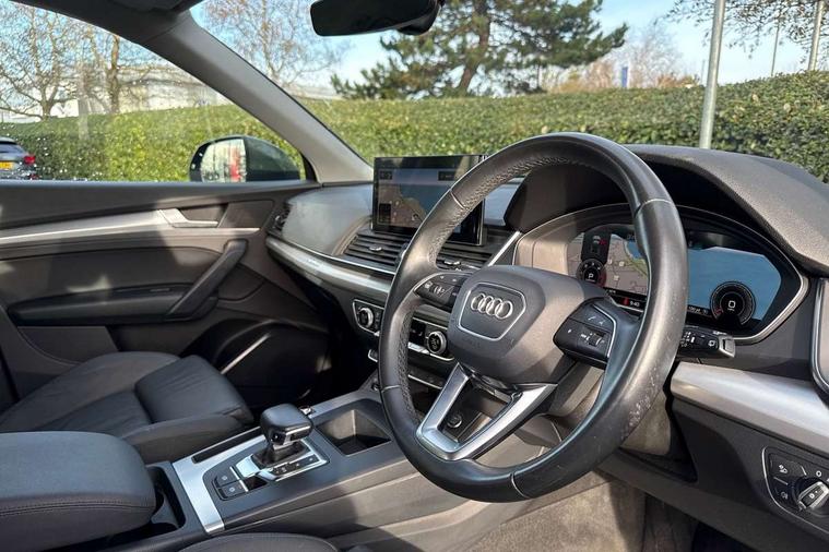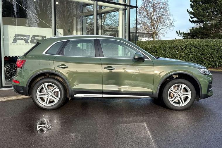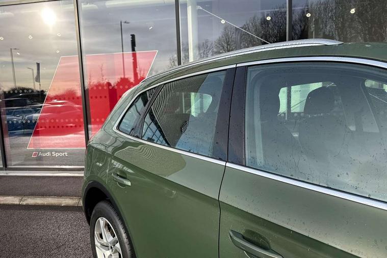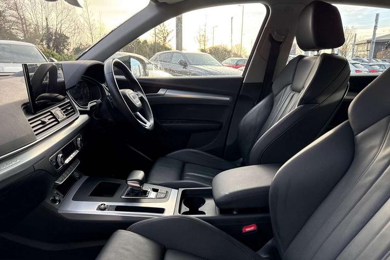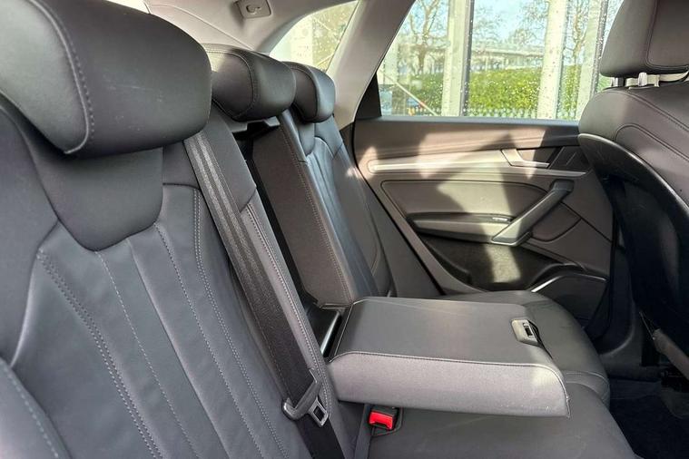 Audi connect safety and service (e-call), Audi connect with Amazon Alexa Integration, Audi drive select, Audi virtual cockpit plus with 12.3" screen and three different layout designs, Audi wireless smartphone interface, Automatic start-stop system with coasting functionality and efficiency programme, Bluetooth interface, Cruise control + speed limiter, Electro - mechanical power assisted steering, MMI navigation plus with 10.1" touch screen, Power tailgate, Reversing camera, Service interval indicator, Voice control system with Audi hotword activation "Hey Audi", Diesel particulate filter, Dynamic suspension, Quattro on demand, 2 x USB charging port with aux input socket, DAB Digital radio, Acoustic windscreen, Air inlets in matt titanium black with blades in matt aluminium silver, Aluminium roof rails, Auto dimming door mirrors, Auto dimming rear view mirror, Automatic headlight adjustment, Automatic headlights and windscreen wipers, Body colour bumpers, Body colour door mirrors, Chrome plated exhaust trims, Daytime running lights, Door sills in Selenite silver, Electric adjustable/heated/folding door mirrors, Front and rear electric windows, High level LED brake light, LED headlights and LED tail lights, Lower bumpers painted in contrast Manhattan grey, Matt selenite silver underbody protection, Matt twilight grey radiator grille with chrome vertical struts, Rear chrome trim strip below lights, Rear diffuser strip in selenite silver, Rear side wing doors, Rear spoiler, Rear wiper, Roof bars, 3 rear headrests, 3 spoke multifunction leather steering wheel with shift paddles, 40:20:40 split folding 3 rear bench seat in 2nd row with rear centre armrest, Comfort front centre armrest, Deluxe 3 zone electronic climate control, Door sills trims with aluminium inlays, Front/rear floor mats, Heated front seats, Height adjustable front head restraints, Height/reach adjustable steering column, ISOFIX child seat mounting and top tether, Luggage compartment cover, Manual seat adjustment with 4-way electric lumbar support, Removable luggage compartment floor, Silver cloth headlining, Single front passenger seat, Sunvisors with vanity mirrors, Twin leather upholstery + front sports seats, High gloss pack - Q5, LED interior light pack - Q5, 3 point seatbelts on all seats, 6 airbags - Driver, front passenger, curtain and side airbags, Electrically operated child locks on rear doors, Electromechanical parking brake, Electronic stabilisation control including ABS, ASR and EDL, Front passenger airbag deactivation, Hill descent control, Hill hold assist, Multi collision brake assist, Pop-up bonnet for pedestrian protection, Pre sense city, Seat belt force limiter, Seatbelt monitoring, Tyre pressure warning, Warning triangle and first aid kit, Anti theft alarm, Anti-theft wheel bolts, Keyless Go access/ignition system, Remote central locking, Aluminium rhombus inlay,