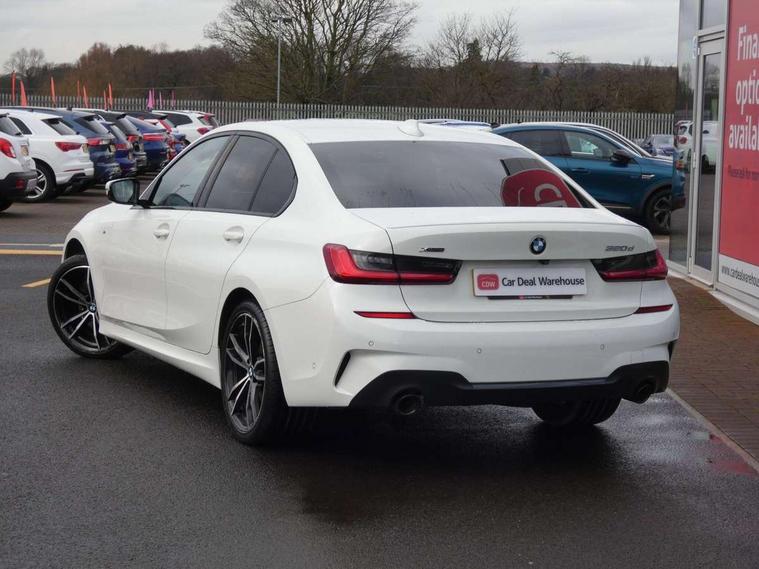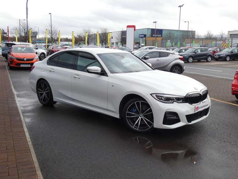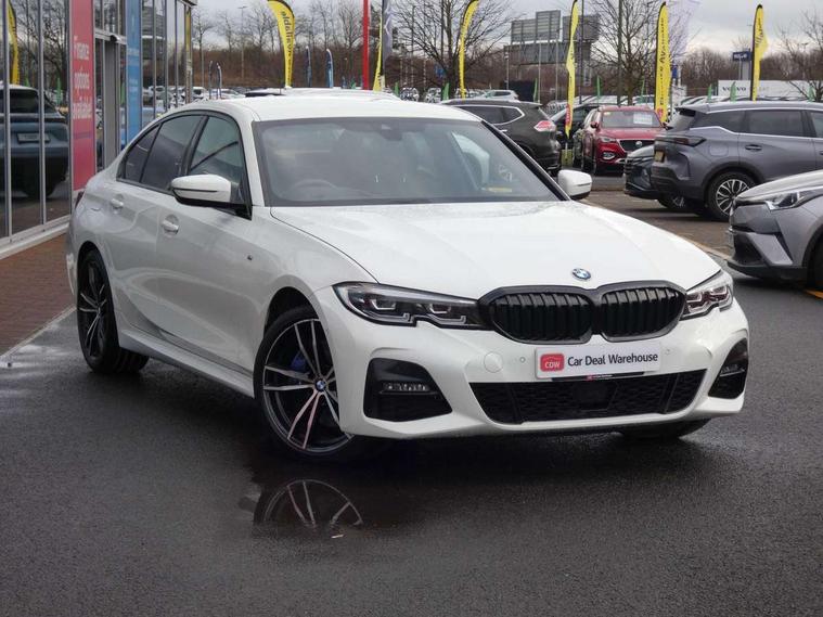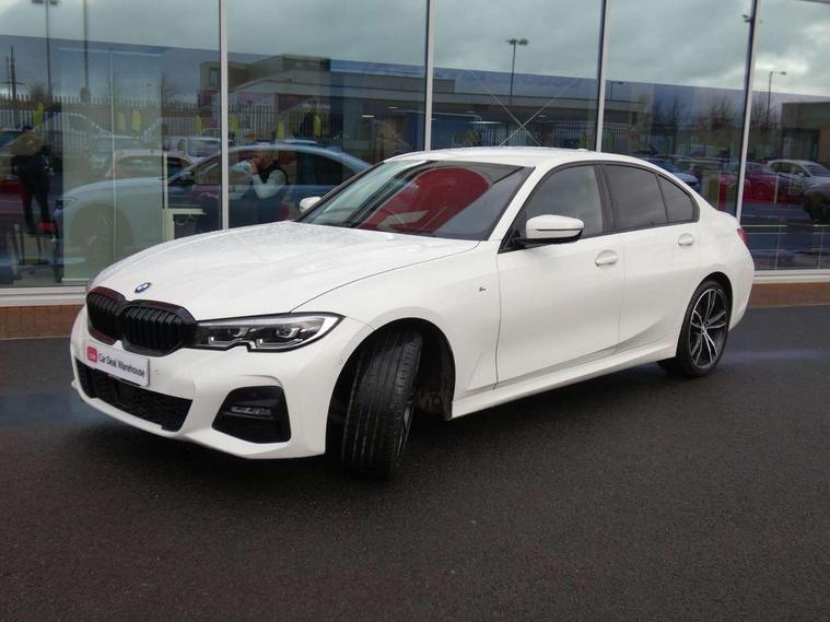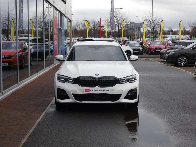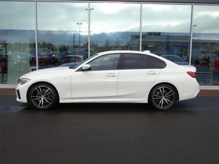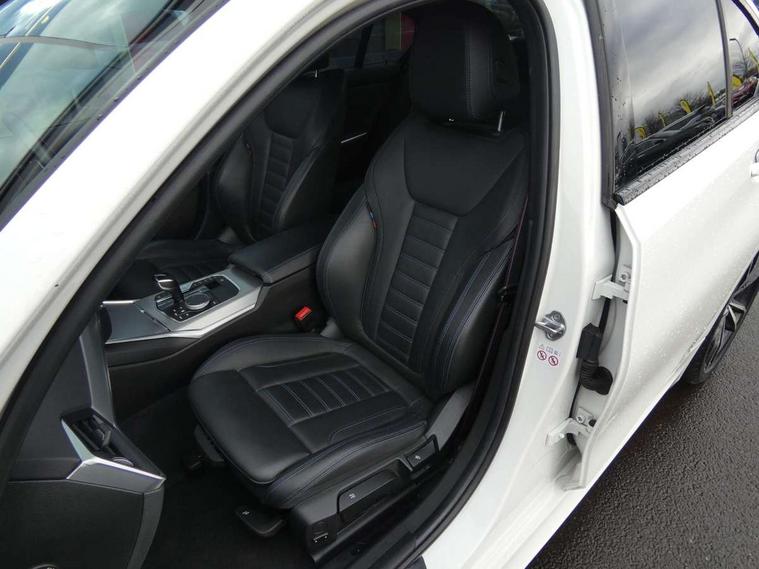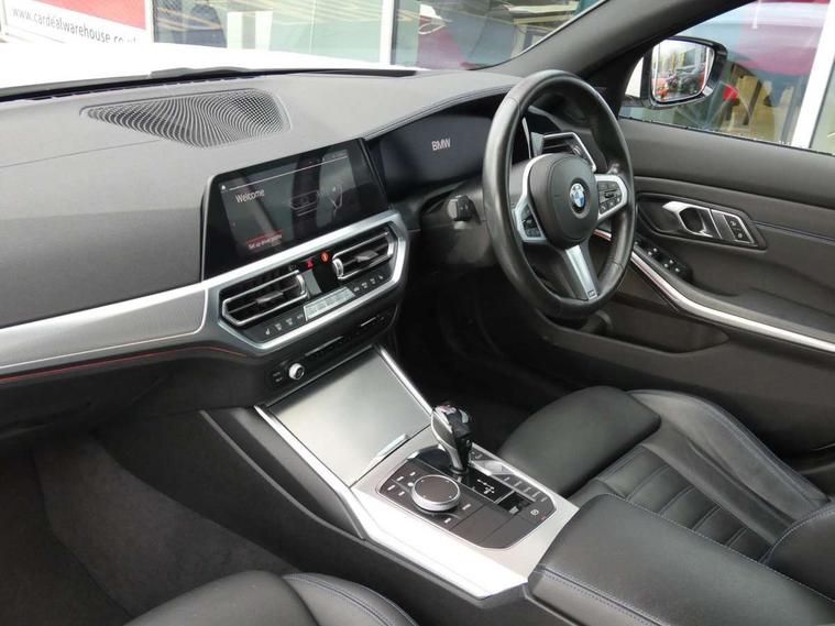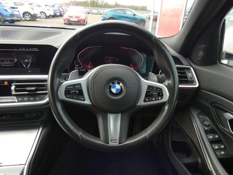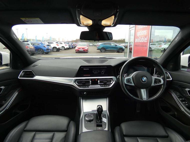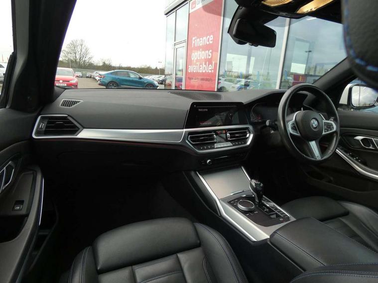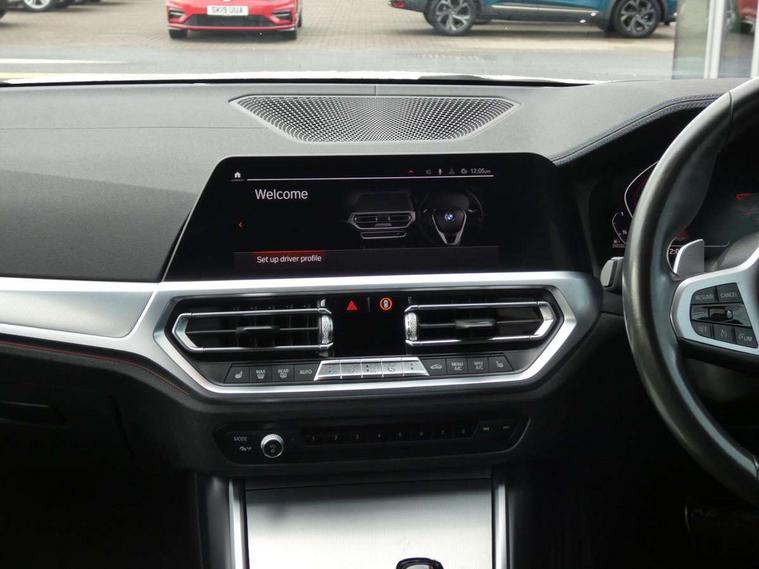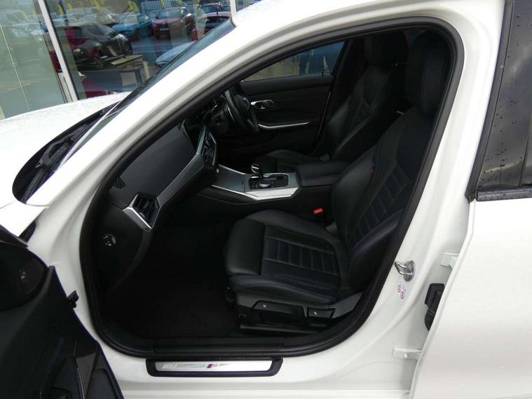 Active guard plus, Attentiveness assist, Auto start-stop, BMW iDrive controller on centre console, BMW Live Cockpit Professional sat nav system including 10.25" high resolution display and Intelligent Voice Assistant, BMW Online services, BMW Teleservices, Brake pad wear indicator in front and rear, Check Control warning system for monitoring of lights and door/luggage compartment open warning, Condition based service, Front/rear park distance control, Instrument cluster with speedometer with mph readout, tachometer, fuel gauge and oil temperature gauge, Oil sensor for level and grade, On board computer - average speed+fuel consumption, service interval, clock/date, odometer/trip meter, outside temperature display and ice warning, Optimum shift indicator, Pesonal profile, Variable sport steering, Battery cut-out switch, Diesel particulate filter, Drive performance control with ECO PRO comfort + sport mode, Electronic differential lock, Incorrect fuelling protection, Larger capacity fuel tank, Sport automatic transmission with steering-wheel mounted gearshift paddles and launch control, DAB tuner, Acoustic glazing, Active airstream chrome frame kidney grille with 8 high gloss black vertical slats, Automatic headlight beam throw control with load dependent regulating reaction, dynamic compensation of braking dive and acceleration squat, Black roof mouldings, Body colour - fuel filler flap, front and rear bumpers, door handles and mirror caps with integrated turn indicator + bottom segment in matt black, Dynamic brake lights, Extended LED headlights, Exterior mirrors - electrically folding with anti-dazzle, Front and rear bumper system with replaceable deformation elements, Front and rear electric windows with open and close fingertip control, anti trap facility and comfort closing, Front black door sill finishers with BMW designation, Green tinted heat protection glazing, Interior rear view electrochromatic mirror with automatic anti dazzle function, LED front fog lights, Left and right split exhaust tailpipes, Lightweight engineering, M aerodynamic body styling, M designation on left and right front side panels, M designation side badges, Matt black exterior B pillar, Model designation on right side of tailgate, Rain sensor with automatic headlight activation, Shark fin antenna, Two part LED tailights in L-shape with components in smoked glass, brake light, LED turn indicator and rear fog light, Visible VIN plate, Welcome lights in interior and door handle area, Windscreen wipers with integrated washing jets, 12V power socket in front storage compartment, 2 front cupholder in centre console with clamping elements and matt black inlay, 3 rear seats with non folding headrests with 3 point seat belts, 3 spoke M leather steering wheel, 4 pieces lashing eyelets in luggage compartment, 40:20:40 split folding rear bench seat, Ambient lighting, Anthracite headlining, Armrest integrated in front and rear door trim + front centre console armrest, Centred top Luggage compartment lights, Four grab handles integrated in roof lining, Front and rear door pockets, Front and rear velour floor mats, Front sport seats, Heated driver and front passenger seats, Height adjustable mechanically and infinitely variable steering column, Illuminated glove compartment with separate small compartment, Interior lighting - front centre over interior mirror with soft light, rear centre and front and rear footwell lighting, Rear centre armrest with 2 cupholders, Rear centre console with storage compartment and ventilation grille, Steering column length adjustment lever, Sunvisors with vanity mirrors and ticket pocket, Three zone automatic air conditioning, Through loading system with 40/20/40 split folding rear seat, Toolkit located in luggage compartment, Vernasca leather upholstery, Connected pack professional - 3 Series Saloon/Touring, M Aerodynamics pack - 3 Series Saloon/Touring, 2 tone horn, ABS, Automatic Stability Control (ASC), BMW emergency call, Brake assist function, Brake drying, Brake energy regeneration, Braking pre-tensioning, Child proof locking system in rear door, Child seat ISOFIX attachment rear outer seats, Cornering brake control (CBC), Crash sensor activating central locking release, hazard warning lights, fuel cut off, interior lighting + activation of safety battery terminal clamp, Driver and front passenger front and side airbags with passenger deactivation and ITS front and rear head airbags, Dynamic brake control, Dynamic Traction Control - DTC, Electromechanical parking brake with automatic drive away release and auto hold function, Hill start assist, Seat belt security check for driver and front passenger, Side impact protection, Three 3 point seat belts on all seats including front belt stopper, pyrotechnic belt tensioners and belt force limiters, Tyre pressure monitoring with three level warning strategy, Variable torque distribution, Ventilated front and rear disc brakes, Warning triangle and first aid kit, Alarm system (Thatcham 1) with remote control and electronic engine immobiliser, Central locking switch for all doors, fuel filler cap and luggage compartment, Remote control with integrated key one button open/close vehicle and windows, sole opening of the luggage compartment lid and panic mode, Selectable automatic lock when driving away, Start/stop button with Comfort Go keyless engine start and auto Start/stop deactivation button, Vehicle key with M specific designation, Reduced rolling resistance tyres,