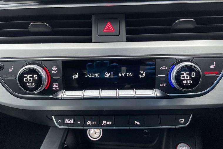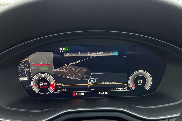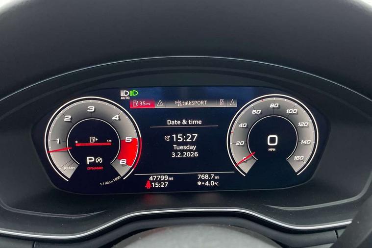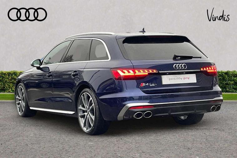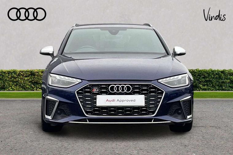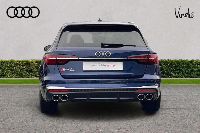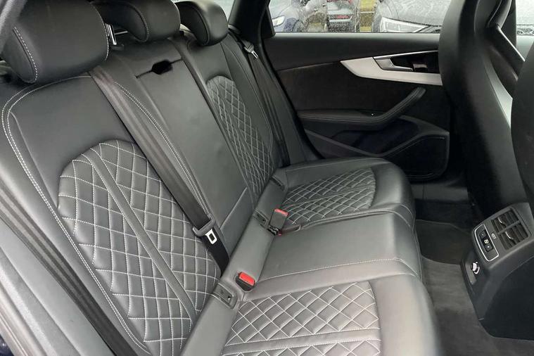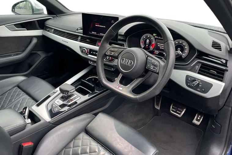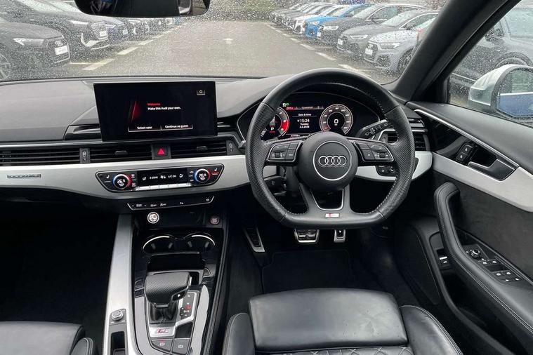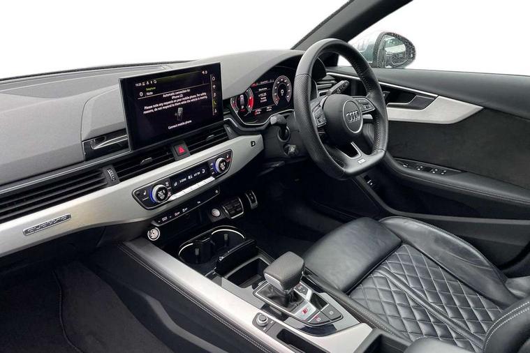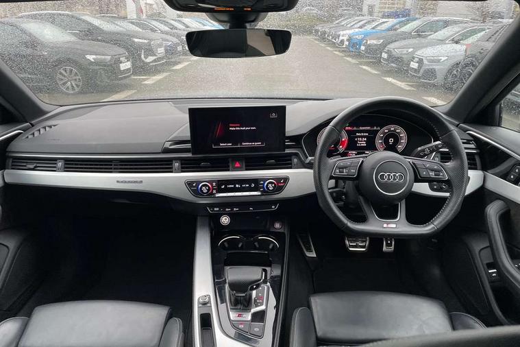 Audi connect safety and service (e-call), Audi drive select, Audi parking system plus with front and rear sensors, Audi phone box with wireless charging, Audi smartphone interface, Audi virtual cockpit, Automatic start-stop system with coasting functionality and efficiency programme, Bluetooth interface, Electromechanical power steering, MMI Navigation plus with MMI touch includes 10.1" high resolution colour MMI display, 3D map, Power operated tailgate, Rear view camera, S instrument dials, Voice control system, 58 Litre fuel tank, S sports suspension, 2 USB charging ports, Audi sound system with 10 loudspeakers, DAB digital radio reception, Aluminium effect door mirror housings, Aluminium roof rails, Audi Beam uses LEDs to project the Audi logo, Auto dimming rear view mirror, Body colour door handles, Body colour front spoiler lip, Body colour side sill trim, Electrically folding auto dimming/adjustable/heated door mirrors with LED side indicators and kerb view function for passenger side, High beam assistant, LED headlights with LED rear lights + dynamic rear indicators + headlight adjustment and high beam, turning light + LED daytime running lights, Privacy glass, Rain and light sensors, S line front and rear bumpers with side skirts, S Line roof edge spoiler, S radiator grille in twilight grey matt with dual struts in aluminium and S4 logo, S rear diffuser in twilight grey matt and honeycomb grille in black, S specific dual branch chrome tailpipes with twin oval pipes on left and right, S specific side air inlets in titan black with chrome inlays in unique S design, S Style rear spoiler, Windscreen with acoustic glazing, 40/20/40 split folding 3 rear seat bench in 3 parts with rear centre armrest, Black cloth headlining, Black leather gear lever knob, Contrast stitching on seats, steering wheel and gear lever gaiter, Deluxe 3 zone electronic climate control, Door sill trims with aluminium inlay, Electric load area cover, Fine nappa leather upholstery with S embossed logo + super sports seats, Front and rear head restraints, Front centre armrest, Gear lever with diamond S badge, Heated front seats, Illuminated door sill trims with S logo, ISOFIX child seat mounting and top tether, Key with S4 logo, Pneumatically adjustable lumbar support with massage function, Stainless steel pedals and foot rest, Extended leather pack - A4/S4, High gloss package - A4, LED Interior light pack - A4/S4, 3 rear seatbelts, 6 airbags - Driver, front passenger, curtain and side windows, Electronic Stabilisation Control (ESC) including ABS, ASR and EDL, Front brake calipers painted in black with S4 logo, Hill hold assist, Multi collision brake assist, Pop-up bonnet for pedestrian protection, Pre sense city, S model enhanced braking system, Seatbelt monitoring, Warning triangle and first aid kit, Anti theft alarm, Anti theft wheel bolts, Keyless Go, Matt brushed aluminium inlays, 19" 5 spoke V design contrasting grey partly polished alloy wheel, Tool kit, Tyre repair kit,