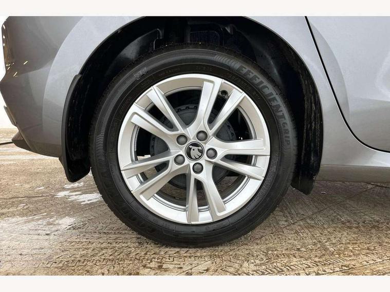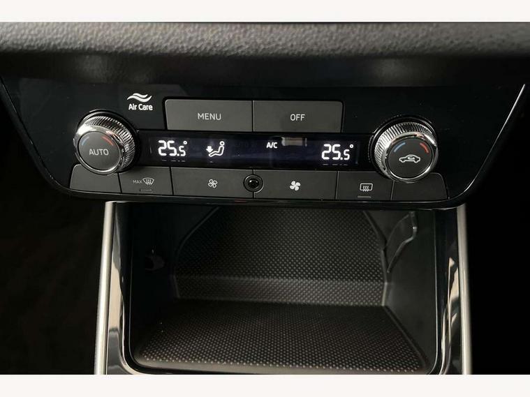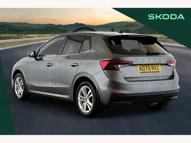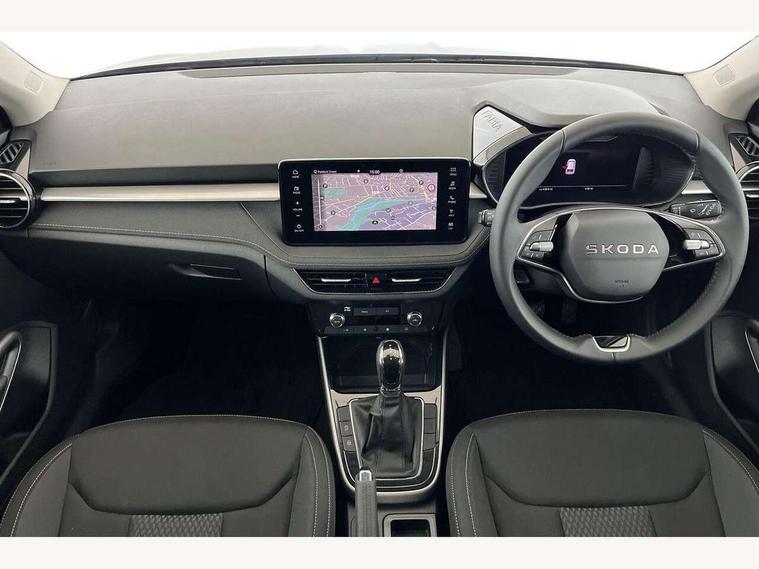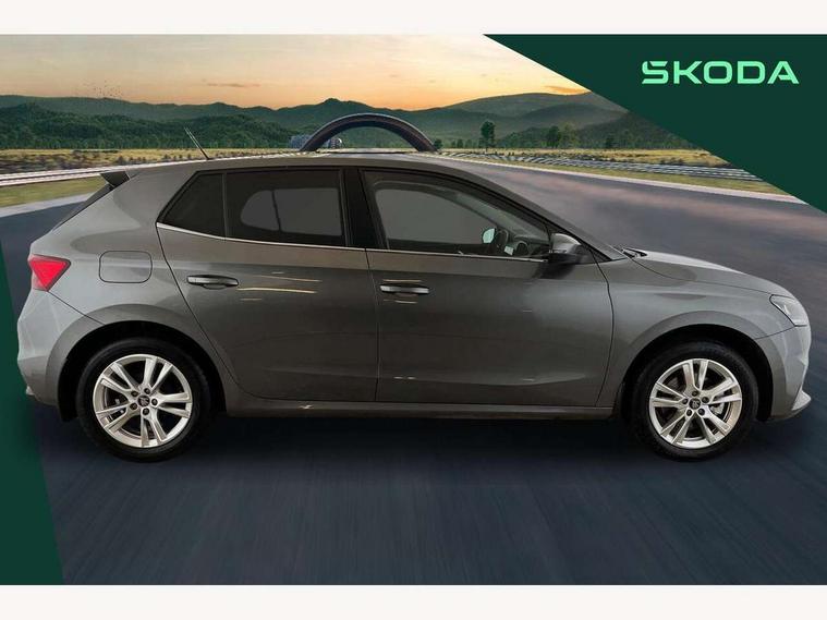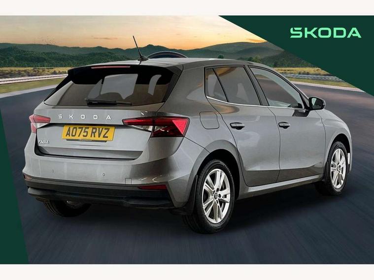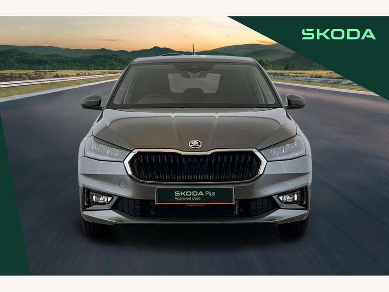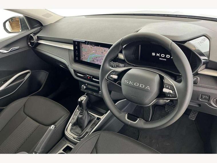 Advanced driver attention and drowsiness monitor, Bluetooth connection, Driver alert system, Electromechanical power steering, Exterior temperature gauge, Service interval indicator, Traffic sign recognition, Virtual cockpit with 10.25" colour display, Wireless SmartLink for Apple CarPlay and Android Auto, 6 Speakers (4 in front and 2 in rear), 9.2" colour display skoda navigation system with voice control and web radio, Auxiliary socket for external MP3 player, DAB digital radio reception, Auto dimming rear view mirror, Body colour door mirrors, Body coloured bumpers, Chrome window surround, Door mirror integrated indicators, Front and rear electric windows, Front window wiper intermittent control, Headlight range control - Automatic, Ice scraper in fuel cap, LED 3rd brake light, LED daytime running lights with coming and leaving home feature, LED rear lights, Privacy glass, Rear LED fog light, Rear side wing doors, Rear window wiper with washing nozzles, Roof mounted spoiler, SKODA tailgate lettering in chrome, Unique dark chrome design logo on alloy wheels, 2 LED reading lights in front and rear, 3 rear headrests, Backrest split and folding, Central console with fixed cup holder and storage box, Chrome handbrake release button, Comfort seats, Door sills with fabia badging, Dual zone air conditioning with climatronic electronic control, Fabric upholstery, Front centre armrest, Gearshift knob/handle in leather, Grain satin black interior door handles, Hand brake lever handle in leather, Height adjustable front headrests, Height adjustable front seats, Height adjustable steering wheel, ISOFIX and TopTether anchorage points to the outer rear seats, ISOFIX and TopTether on the front passenger seat, Luggage compartment lighting, Manually adjustable lumbar support in front seats, Pollen filter, Rear seat bench unsplit, Single front passenger seat, Skoda lettering on steering wheel, Storm grey headlining, Sun visors with mirror and airbag label on passenger side, Textile floor mats, Ticket holder, Ambient lighting pack - Fabia Hatchback, 3-point height adjustable front seats belts with pretensioner and force limiter, Automatic warning lights in case of crash, Driver and passengers airbag with switch off function, e-Call+, ESC including ABS, MSR, ASR, EDS, HBA and XDS, Front and rear seat belt warning, FRONT ASSIST (AEB City and AEB Inter Urban), Front side airbags, Head airbags, Hill hold control, One tone horn, Pedestrian protection, Three rear 3-points safety seat belts with pretensioner and force limiter including stop function for outer rear seat belts, Tyre pressure monitoring system, Anti-theft alarm system including immobiliser, interior monitoring, backup horn, and towing protection, Central locking with radio remote control, interior controls, SAFE function and 2 foldable keys, Chrome edged air vents, Grain satin black central console cover, Metallic grey upper decorative trim, Satin black door and side trim panel in front, Textile microsuede grey lower decorative trim with art grey stitching, Anti-theft wheel bolts protection, Super-low rolling resistance tyres,