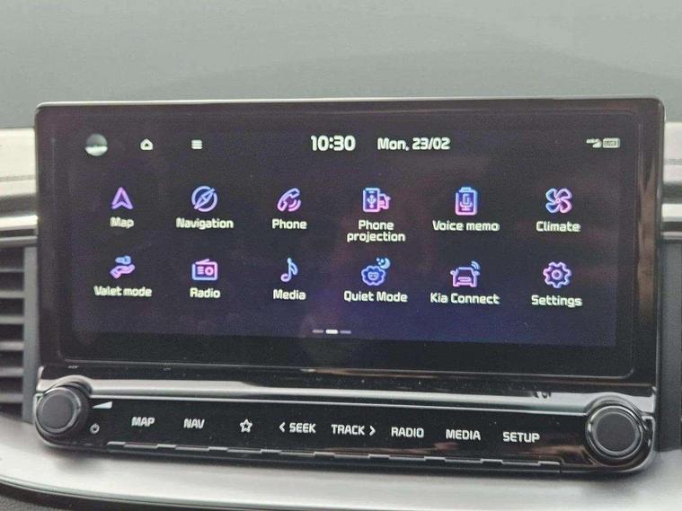 10.25" touchscreen satellite navigation, 4.2" supervision colour cluster display, Apple car play/Android Auto with voice control, Bluetooth with Voice Recognition & Music Streaming, Drive mode select (Normal and Sport), Driver attention warning + (DAW) with leading vehicle departure warning, Emergency call service, Emergency stop signalling system, Forward Collision-Avoidance Assist (FCA) - City/Pedestrian/Cyclist, Kia connect UVO, Lane Following Assist (LFA), Lane keep assist, Manual speed limit assist, Motor driven power steering, Rear parking sensor, Reversing camera system with dynamic guidelines (Integrated into centre fascia screen), Smart cruise control with stop/go functionality, Trip computer, Intelligent Stop and Go, 6 speaker audio system, DAB Radio with MP3, Illuminated USB ports, Steering wheel mounted controls, USB Fast Charger in Front Centre Console, USB type A port, All-round Electric Windows with Front Auto Up & Down Function, Auto dimming rear view mirror, Automatic defog system, Automatic headlights control, Body colour bumpers, Body colour exterior door handles, Body coloured and dark chrome rear skid plate, Body coloured side sill mouldings, Dark chrome window surround, Electric adjustable/heated/folding door mirrors with LED Indicators, Heated rear window with timer, High beam assist, High gloss black and dark chrome radiator grille, High gloss black door mirrors, High Gloss Black rear spoiler - roof, LED daytime running lights, LED front fog lights, LED Headlights, LED High-mounted Brake Light, LED honeycomb rear light, LED rear combination lights, LED rear fog light, Privacy glass (rear side windows and tailgate), Rain sensing front wipers, Rear side wing doors, Rear wash/wipe, Satin chrome dual exhaust trim, Tinted glass, Wide view drivers door mirror, Windscreen Washer Level Warning, 1 x Front 12V socket, 12V power socket in luggage compartment, 3 seat bench in 2nd row, 3 x passenger assist grips, 60/40 split folding rear seat, All-round height adjustable headrests, Aluminium pedals, Black headlining, Centre console storage box/armrest, Cloth/faux leather upholstery, Cupholders in centre console, Cupholders in rear armrest, Dash illumination dimmer switch, Door courtesy lamps, Driver & Front Passenger Sunvisors with Vanity Mirror Illumination & Ticket Holder, Driver + front passenger electric lumbar support, Driver's seat height adjuster, Dual Height Luggage Area Floor, Dual zone automatic air conditioning, Faux leather door centre trim, Front and rear door storage, Front cabin map light with sunglasses case, Front Passenger Seat Height Adjuster, Front seat back pockets, Heated front seats, Heated steering wheel, Interior door lock/unlock function, ISOFIX Child seat top tethers and anchor fixings, Leather D-Cut steering wheel, Leather handbrake, Luggage area light, Luggage area parcel shelf, Luggage hooks, Rear centre armrest, Rear coat hooks, Single front passenger seat, Tilt/telescopic adjustable steering wheel, All round 3-point seatbelts, Anti-lock braking system (ABS), Brake assist system, Dual front side airbags, Dual horn, EBD - Electronic brakeforce distribution, Electronic parking brake, Electronic stability control (ESC) and vehicle stability management (VSM), Front passenger airbag cut-off switch, Height adjustable front seatbelts, Hill start assist control (HAC), Impact sensing auto door unlocking, Rear door child safety locks, Seatbelt reminder warning, Twin curtain airbags, Twin front airbags, Tyre pressure monitoring system, Alarm system, Engine Immobiliser & Deadlocks, Locking wheel nuts, Remote central door locking with fold away key, Speed sensitive auto door locking, Satin Chrome Fascia Trim, 17" GT-Line alloy wheels, Tyre mobility kit,