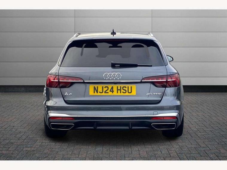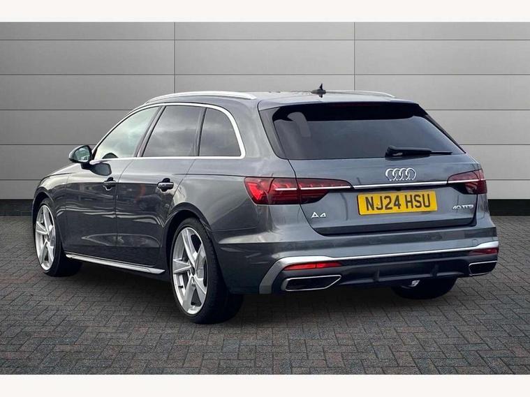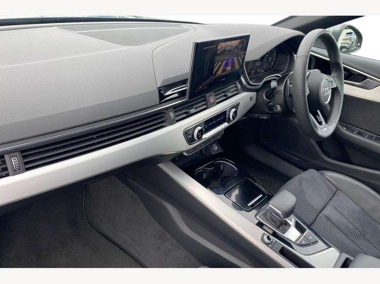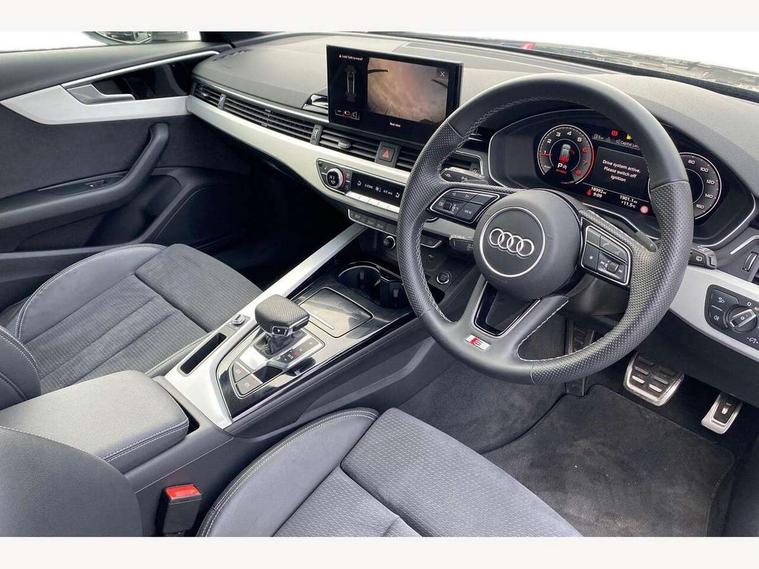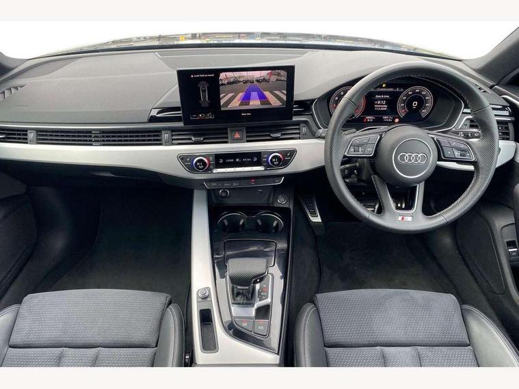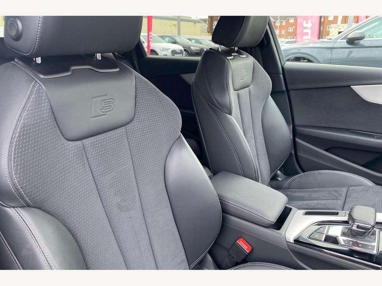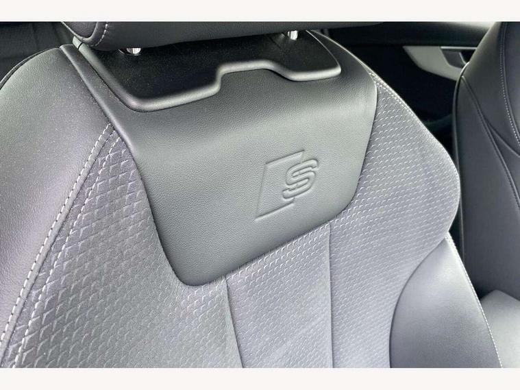 Audi connect safety and service (e-call), Audi drive select, Audi smartphone interface, Audi virtual cockpit, Automatic start-stop system with coasting functionality and efficiency programme, Bluetooth interface, Camera based traffic sign recognition, Electromechanical power steering, Email, calendar and text messages displayed via MMI, Front and rear parking sensors, Lane departure warning, MMI Navigation plus with MMI touch includes 10.1" high resolution colour MMI display, 3D map, Power operated tailgate, Rear view camera, Voice control system, 54 litre fuel tank, Sports suspension lowered by 23mm, 2 USB charging ports, 8 passive loudspeakers, DAB digital radio reception, Aluminium roof rails, Auto dimming rear view mirror, Body colour door handles, Body colour front spoiler lip, Body colour side sill trim, Body coloured door mirrors, Electric adjustable/heated/folding door mirrors with auto dimming, Grained matt black side air inlets with matt aluminium silver inlay, High beam assistant, Honeycomb structure radiator grille in grained matt black, LED headlights with LED rear lights + dynamic rear indicators + headlight adjustment and high beam, turning light + LED daytime running lights, LED third brake light, Matt aluminium silver tailpipe trim, Privacy glass, Rain and light sensors, Rear side wing doors, Rear wiper, S Line badges on the front wings, S line front and rear bumpers with side skirts, S Line rear diffuser in matt anthracite black with trim strip in matt aluminium silver, S Line roof edge spoiler, Variable intermittent front wash/wipe, Windscreen with acoustic glazing, 3 spoke high multi-function sports leather steering wheel grips in perforated leather with S badging including paddle shift, 4 way electric lumbar support for driver and front passenger, 40/20/40 split folding 3 rear seat bench in 3 parts with rear centre armrest, Black carpets, Black cloth headlining, Black perforated leather gearknob, Contrast stitching on seats, steering wheel and gear lever gaiter, Deluxe 3 zone electronic climate control, Electric load area cover, Front and rear head restraints, Front centre armrest, Heated front seats, Illuminated door sill trims with S logo, ISOFIX child seat mounting and top tether, Manual seat adjustment, Single front passenger seat, Stainless steel pedals and foot rest, High gloss package - A4, LED Interior light pack - A4/S4, 3 rear seatbelts, 6 airbags - Driver, front passenger, curtain and side windows, Attention and drowsiness assist, Electronic Stabilisation Control (ESC) including ABS, ASR and EDL, Hill hold assist, Multi collision brake assist, Pop-up bonnet for pedestrian protection, Pre sense city, Rear door child safety locks, Seatbelt monitoring, Warning triangle and first aid kit, Anti theft alarm, Anti theft wheel bolts, Central locking, Keyless Go, Matt brushed aluminium inlays, Tool kit, Tyre repair kit,