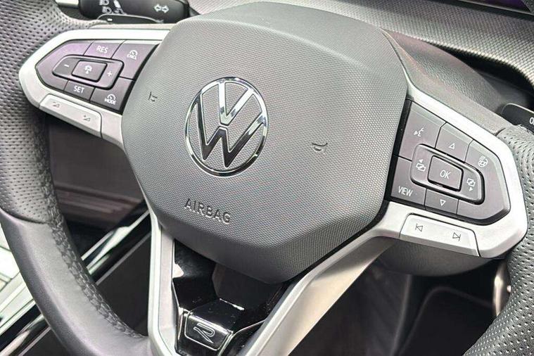 Activated carbon canister, Adaptive cruise control (ACC), Advanced driver attention and drowsiness monitor, Dynamic road sign display, Dynamic steering, E-Sim card for online connectivity, eCall emergency call system, Multi-color Digital cockpit pro, selection of different info profile possible, Multifunction front facing camera for distance control, Navigation system, Oncoming vehicle braking when turning including swerve support, Preparation for light assist system, Speed limiter, Speedo, rev counter, electronic odometer, trip, service interval display, exterior temperature and fuel gauge, Traffic jam assist, Voice enhancer and voice control, Warning signal and warning light for front and rear seatbelts not fastened, We connect plus preparation, We connect preparation, Wireless app connect, Diesel particulate filter, Hybrid propulsion system, Start-stop system with battery regeneration (recuperation - energy recovery during braking), XDS electronic differential lock for improved traction and handling, 2 USB C ports in front, 2 USB charging sockets on the centre console in the rear charging capacity upto 45W, Comfort telephony + wireless charging, without wireless aerial connection, Digital radio reception (DAB), Diversity antenna for FM reception, Gaming platform via car app, Infotainment system with 12.9" display, Mobile phone interface with inductive charging feature, 3rd brake light, Auto headlights, Automatic headlamp activation with Coming home and Leaving home feature, Body colored bumpers in R-Line style, Body colour door handles, Exterior ambient lighting with illuminated door handles, Exterior mirrors convex on the left and aspherical on the right, Front and rear electric windows, Heat insulating windshield made of laminated glass, LED daytime running lights, Rear exhaust tailpipe, Rear fog light on one side and reversing lights on both sides, Rear side wing doors, Rear windscreen washer and wiper with interval delay, Remote electrically foldable door mirrors, puddle lights and reverse activated passenger's door mirror, Welcome light with surround lighting, 12V socket in front centre console, 12V socket in luggage compartment, 3 rear head restraints, 3 seat bench in 2nd row, Ambient lighting with 30 colour including LED light unit in front footwell with selectable light colour, Brushed stainless steel pedals, Carpet mats, front and rear, Chrome plated radiator grille inserts, air vent surrounds and light switch surrounds, Front centre armrest, Integrated front head restraints, ISOFIX anchors for child seats on outer rear bench seats and on front passanger seat compatible for i-Size, Luggage compartment lighting, Plastic gear knob, Premium sports seats in front, Rear cupholder and loadthough, Single front passenger seat, Soul black instrument panel, Split folding backrest with centre armrest and unsplit rear seat bench, Storm grey roof lining, Sun visors with illuminated vanity mirrors, 3 point height adj front seatbelts + pretensioners, 3 rear three point seatbelts, ABS, Autonomous emergency braking front assist with pedestrian and cyclist monitoring, Child locks on rear doors, Driver and front passenger airbag with front passenger airbag deactivation, Electronic parking brake with auto hold, ESC (Electronic Stability Control), Extended pedestrian protection measures, Hill start assist, Rear disc brakes, Two tone horn, Tyre pressure loss indicator, Volkswagen roadside assistance, Anti theft wheel bolts, Preparation for alcohol interlock, Decorative inserts carbon grey for dashboard and front door trim panels,
