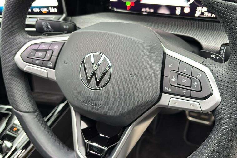 Activated carbon canister, Adaptive cruise control (ACC), Advanced driver attention and drowsiness monitor, Dynamic road sign display, Dynamic steering, E-Sim card for online connectivity, eCall emergency call system, Multi-color Digital cockpit pro, selection of different info profile possible, Multifunction front facing camera for distance control, Navigation system, Oncoming vehicle braking when turning including swerve support, Preparation for light assist system, Speed limiter, Speedo, rev counter, electronic odometer, trip, service interval display, exterior temperature and fuel gauge, Traffic jam assist, Voice enhancer and voice control, Warning signal and warning light for front and rear seatbelts not fastened, We connect plus preparation, We connect preparation, Wireless app connect, Diesel particulate filter, Hybrid propulsion system, Start-stop system with battery regeneration (recuperation - energy recovery during braking), XDS electronic differential lock for improved traction and handling, 2 USB C ports in front, 2 USB charging sockets on the centre console in the rear charging capacity upto 45W, Comfort telephony + wireless charging, without wireless aerial connection, Digital radio reception (DAB), Diversity antenna for FM reception, Gaming platform via car app, Infotainment system with 12.9" display, Mobile phone interface with inductive charging feature, 3rd brake light, Auto headlights, Automatic headlamp activation with Coming home and Leaving home feature, Body colored bumpers in R-Line style, Body colour door handles, Exterior ambient lighting with illuminated door handles, Exterior mirrors convex on the left and aspherical on the right, Front and rear electric windows, Heat insulating windshield made of laminated glass, LED daytime running lights, Rear exhaust tailpipe, Rear fog light on one side and reversing lights on both sides, Rear side wing doors, Rear windscreen washer and wiper with interval delay, Remote electrically foldable door mirrors, puddle lights and reverse activated passenger's door mirror, Welcome light with surround lighting, 12V socket in front centre console, 12V socket in luggage compartment, 3 rear head restraints, 3 seat bench in 2nd row, Ambient lighting with 30 colour including LED light unit in front footwell with selectable light colour, Brushed stainless steel pedals, Carpet mats, front and rear, Chrome plated radiator grille inserts, air vent surrounds and light switch surrounds, Front centre armrest, Integrated front head restraints, ISOFIX anchors for child seats on outer rear bench seats and on front passanger seat compatible for i-Size, Luggage compartment lighting, Plastic gear knob, Premium sports seats in front, Rear cupholder and loadthough, Single front passenger seat, Soul black instrument panel, Split folding backrest with centre armrest and unsplit rear seat bench, Storm grey roof lining, Sun visors with illuminated vanity mirrors, 3 point height adj front seatbelts + pretensioners, 3 rear three point seatbelts, ABS, Autonomous emergency braking front assist with pedestrian and cyclist monitoring, Child locks on rear doors, Driver and front passenger airbag with front passenger airbag deactivation, Electronic parking brake with auto hold, ESC (Electronic Stability Control), Extended pedestrian protection measures, Hill start assist, Rear disc brakes, Two tone horn, Tyre pressure loss indicator, Volkswagen roadside assistance, Anti theft wheel bolts, Preparation for alcohol interlock, Decorative inserts carbon grey for dashboard and front door trim panels,